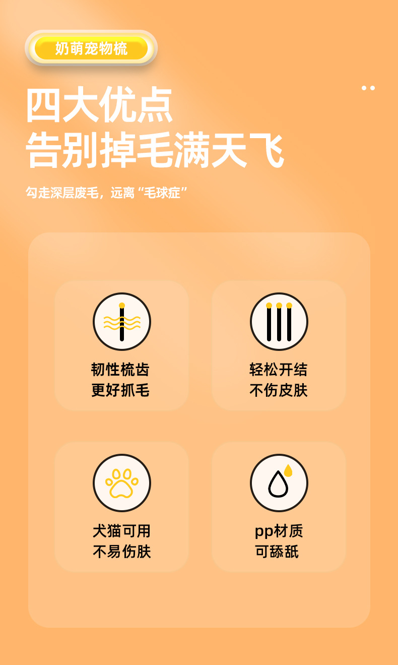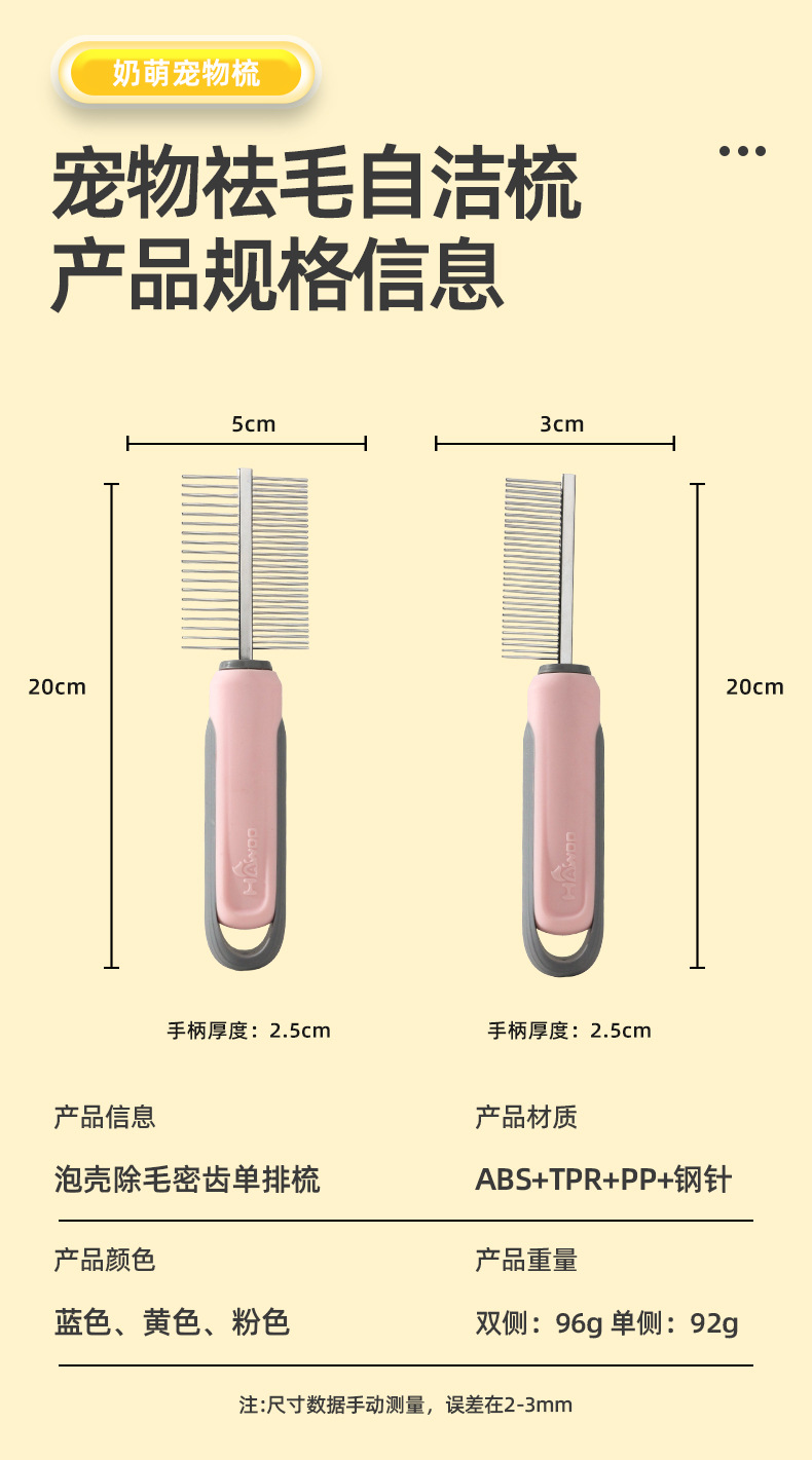 • 털과 벼룩 제거 양면 빗 - 노란색 20cm