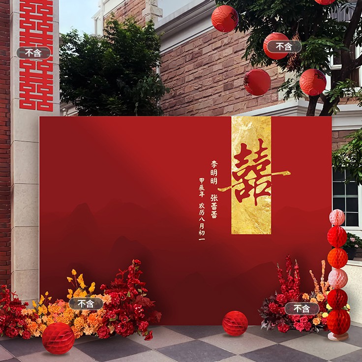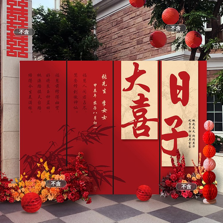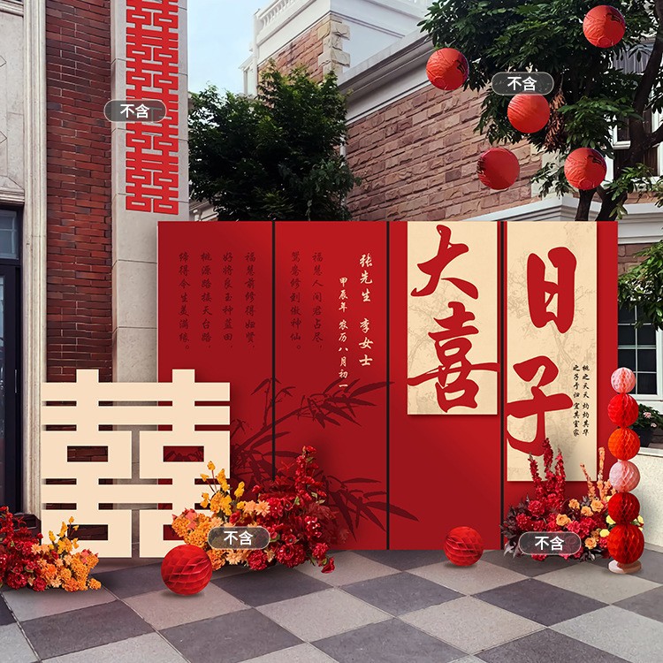 농촌 안뜰 야외 맞춤형 장면 장식 행복 단어 보드 배경 벽 결혼식 결혼식 레이아웃 세트