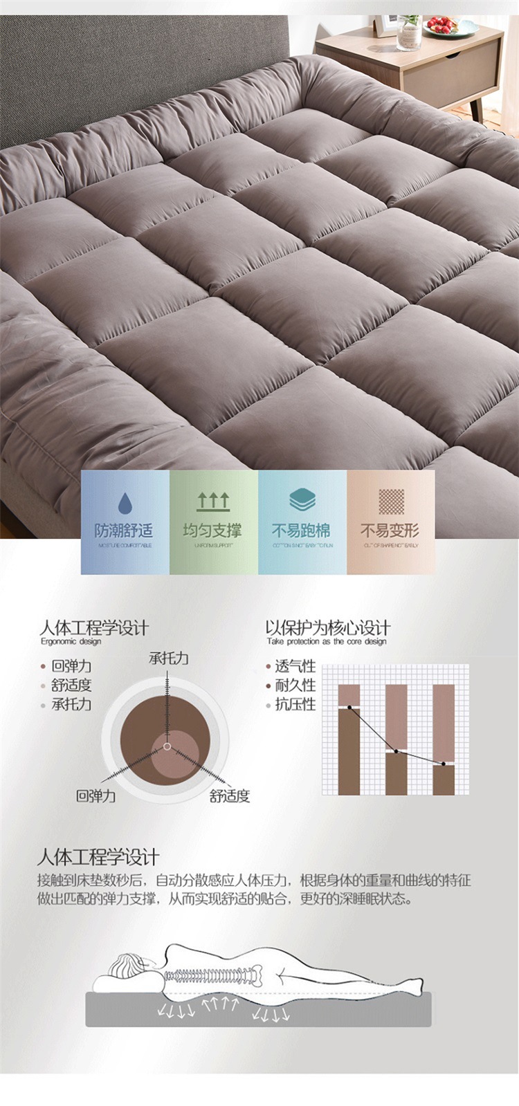 • 알몸으로 자기에 적합한 두꺼운 매트리스 - 그레이