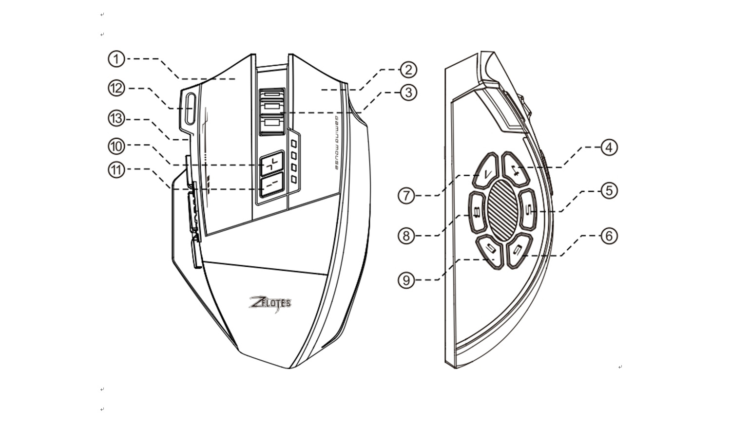 ⑩ DP+ ⑪ DP- ⑫ 三连击 ⑬ 蓝牙键