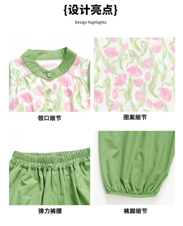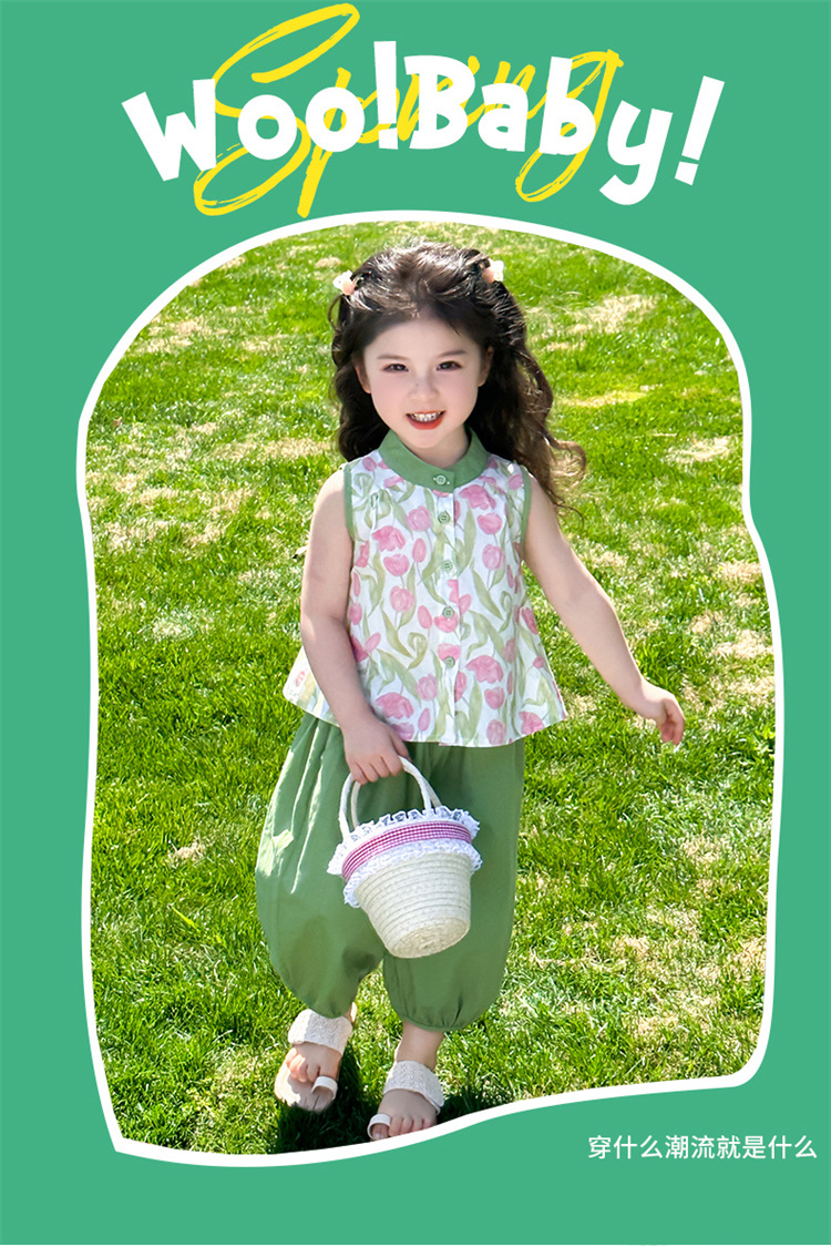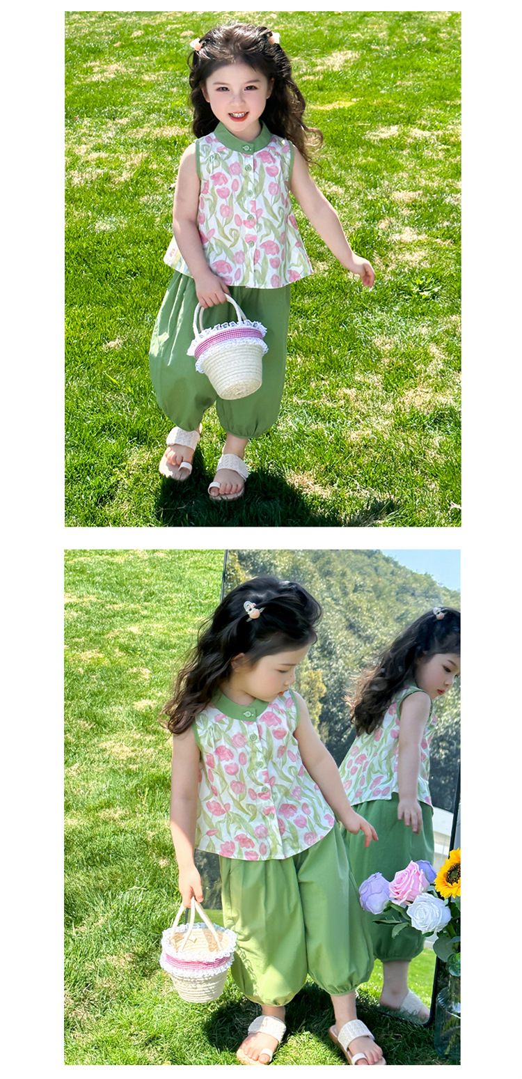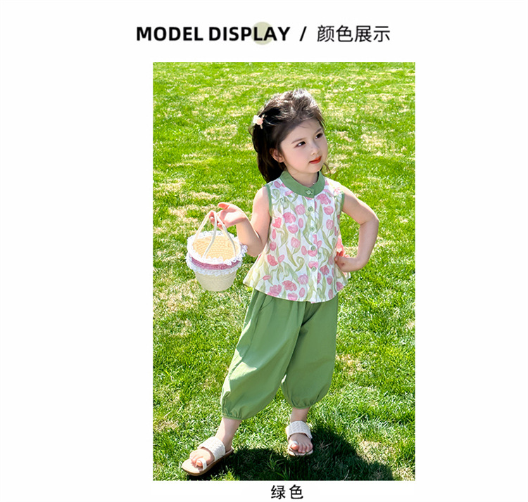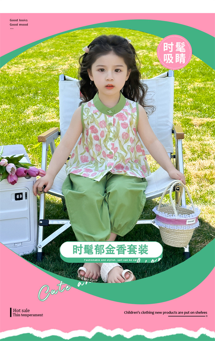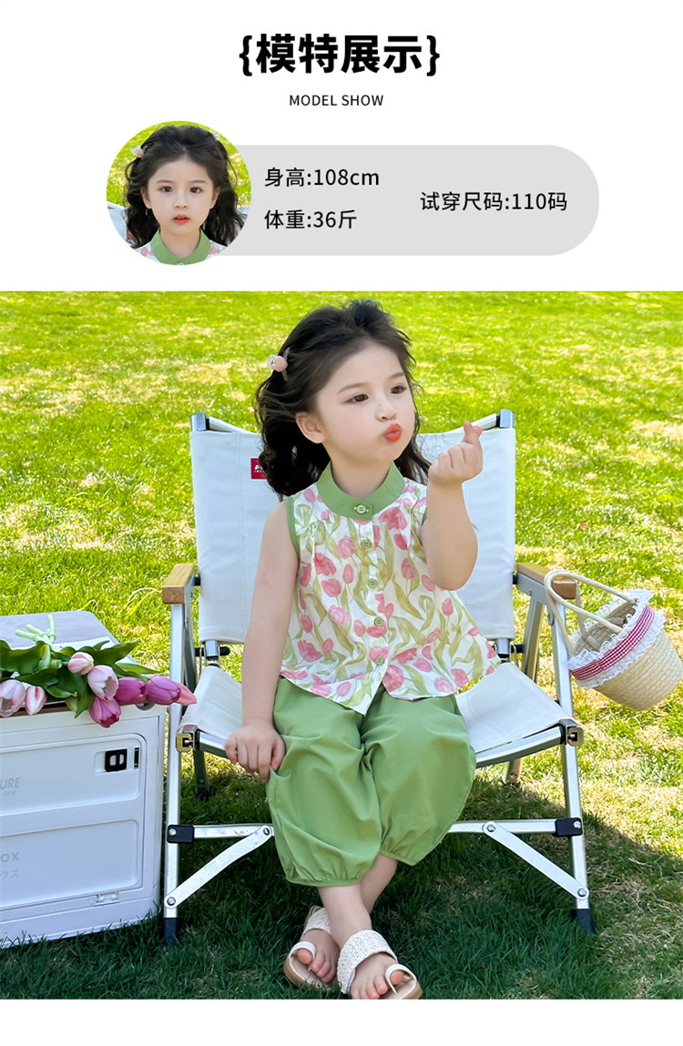 여자 여름 민소매 조끼 세트 2025 새로운 스타일 꽃 탑 레깅스 여름 옷 아동 의류 투피스 세트스토어 가기