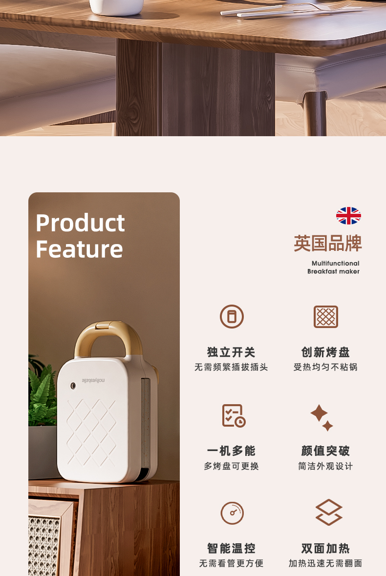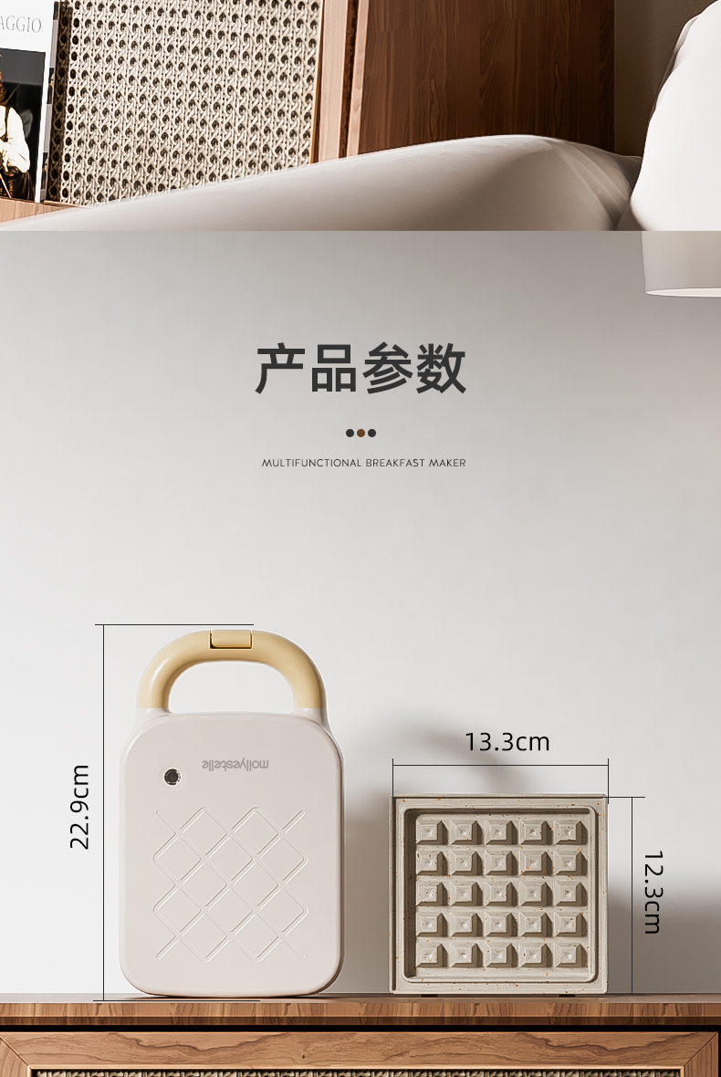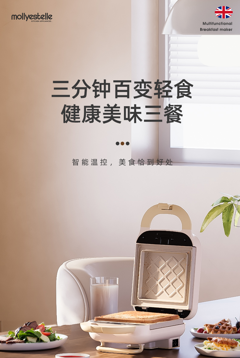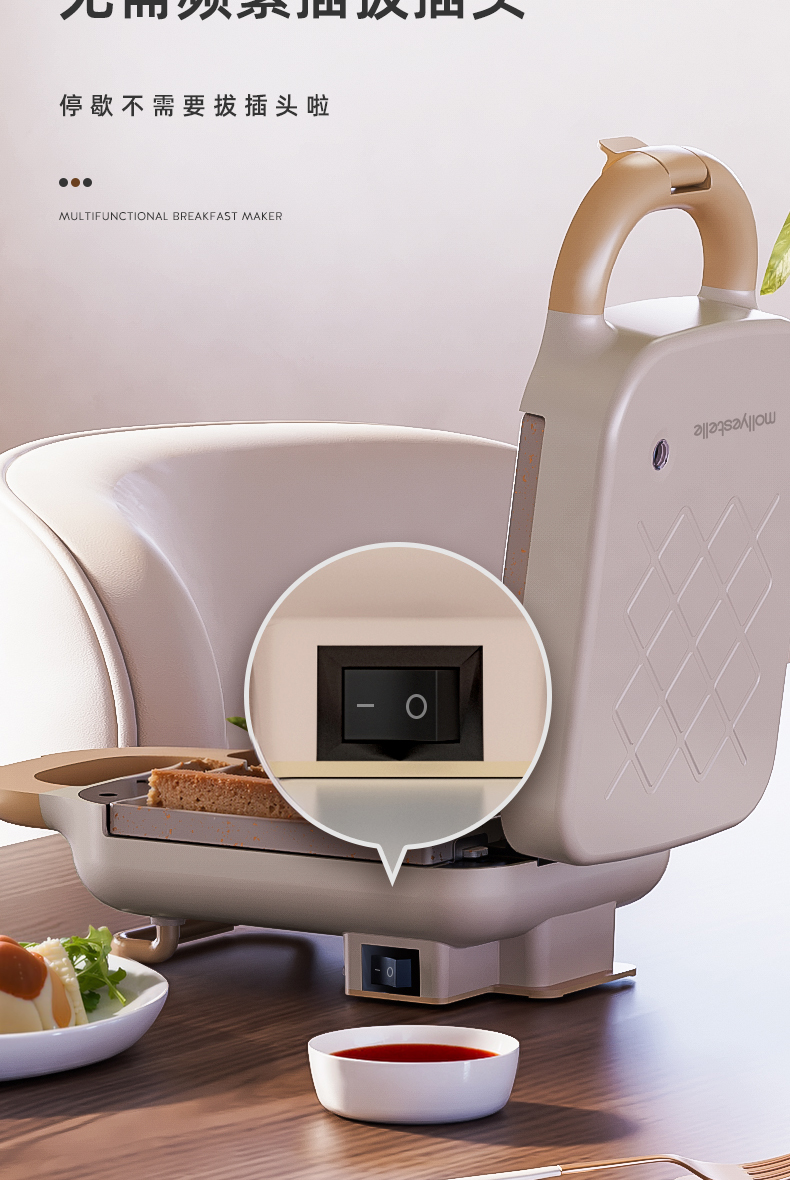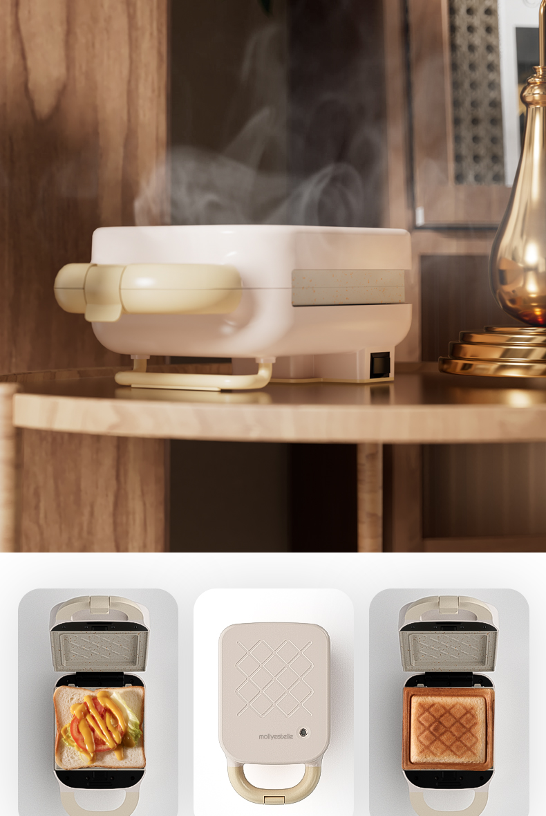 Mollyestelle 샌드위치 아침 식사 기계 프레스 가장자리 다기능 가정용 소형 토스트 와플 토스터