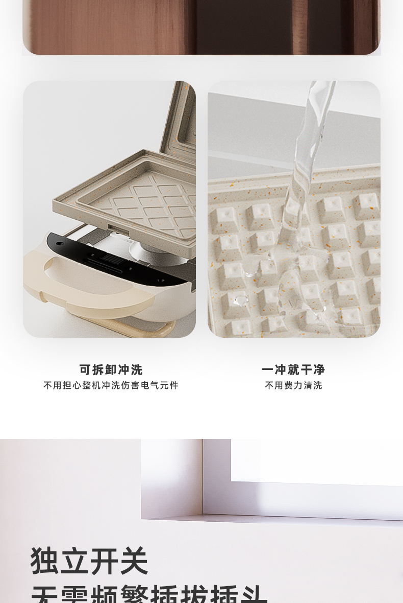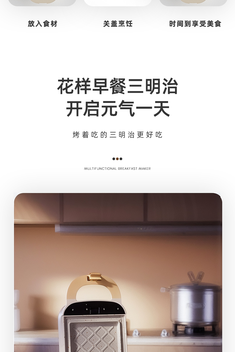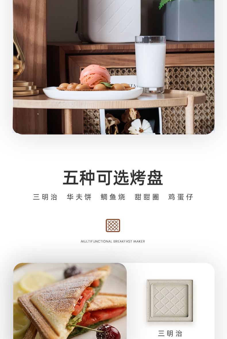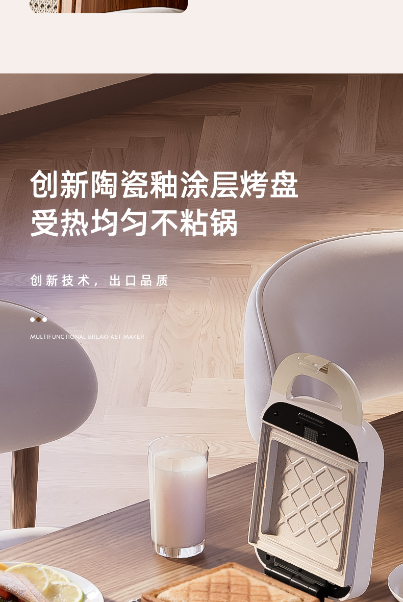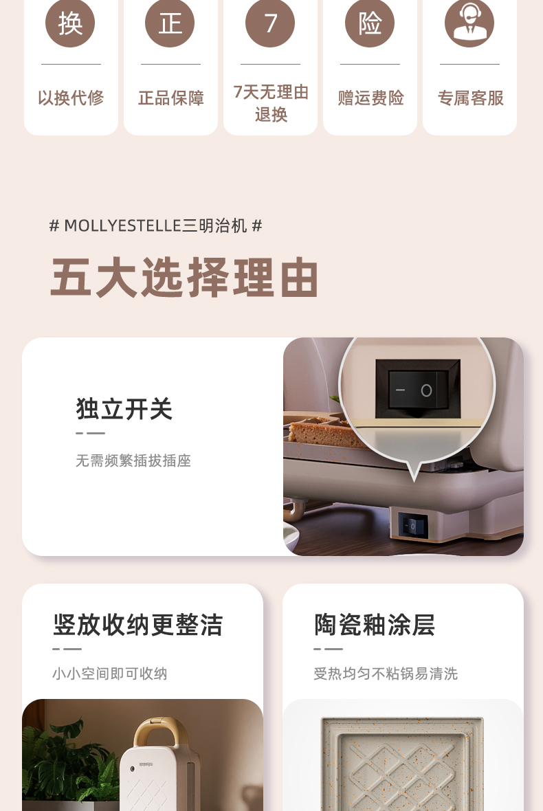 Mollyestelle 샌드위치 아침 식사 기계 프레스 가장자리 다기능 가정용 소형 토스트 와플 토스터