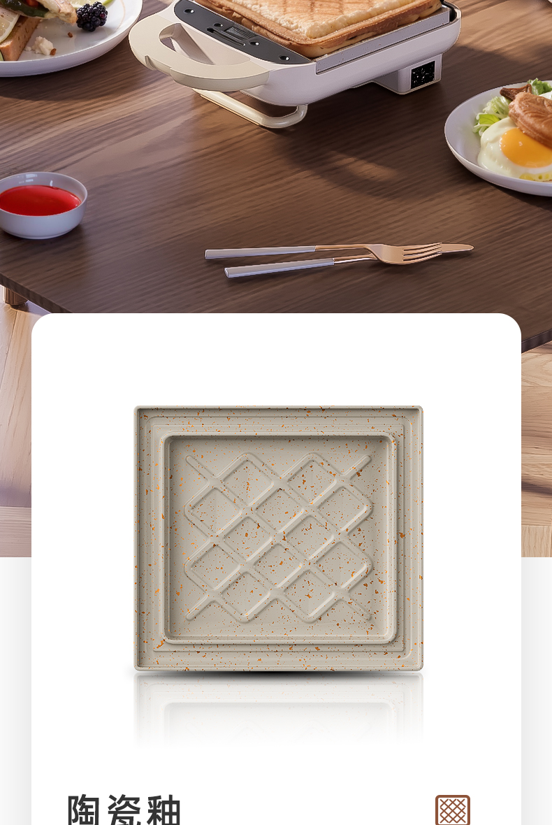 • 화이트(샌드위치 플레이트 + 와플 플레이트) 업그레이드된 세라믹 글레이즈 코팅