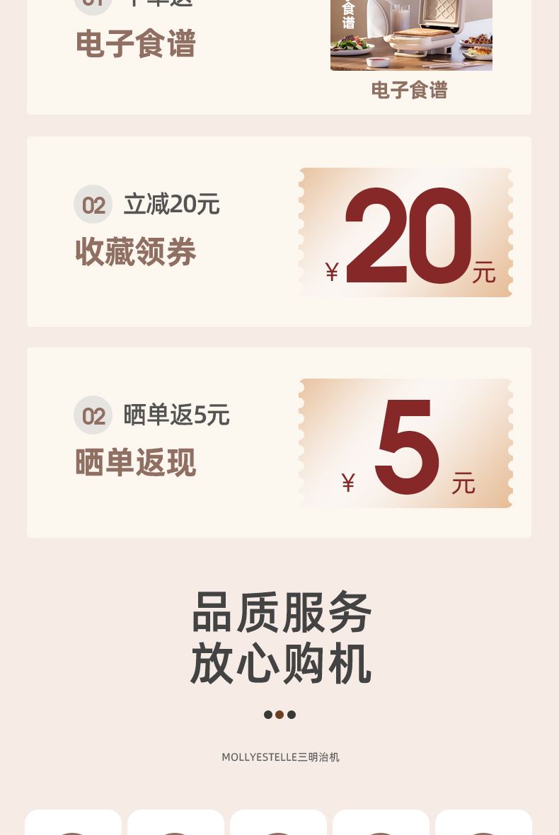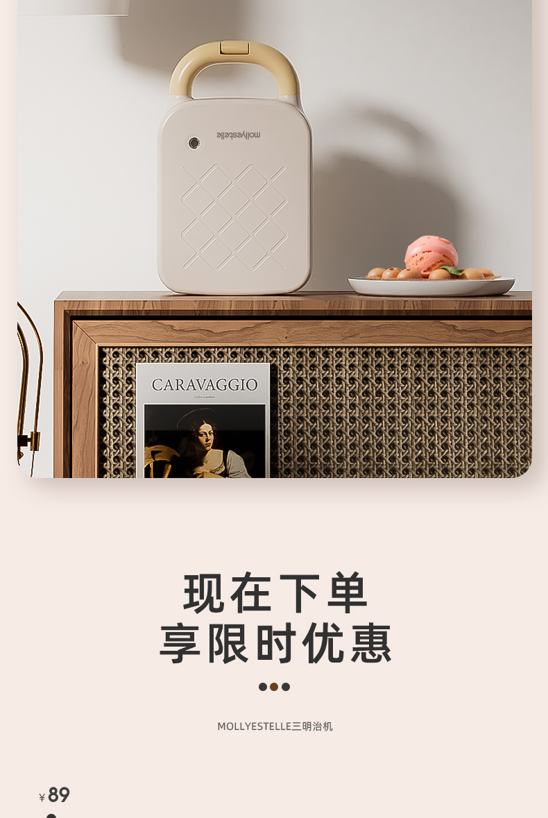 Mollyestelle 샌드위치 아침 식사 기계 프레스 가장자리 다기능 가정용 소형 토스트 와플 토스터스토어 가기
