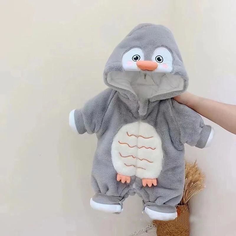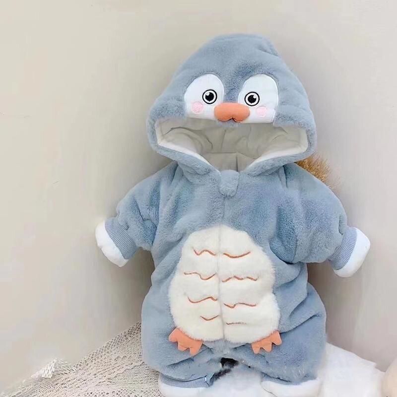 인터넷 연예인 아기 점프 슈트 가을, 겨울 귀여운 슈퍼 귀여운 펭귄 플러시 후드 크롤링 슈트 아기 플러스 벨벳 두꺼운 옷스토어 가기