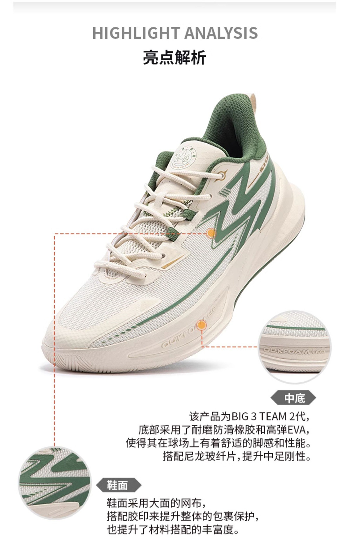 BIG3 팀 2.0 농구화 361 남성 신발 운동화 2025 봄 수비수 실용 내마모성 학생 운동화