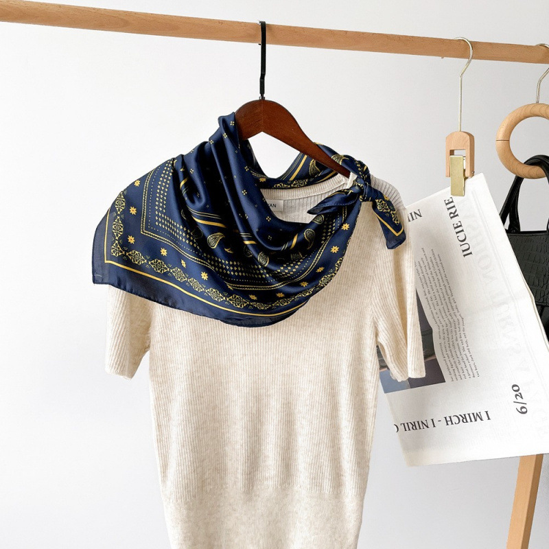 빨간 캐슈 꽃 스카프 70 모방 실크 작은 광장 스카프 여성 복고풍 예술 여름 스카프 목 스카프 도매스토어 가기