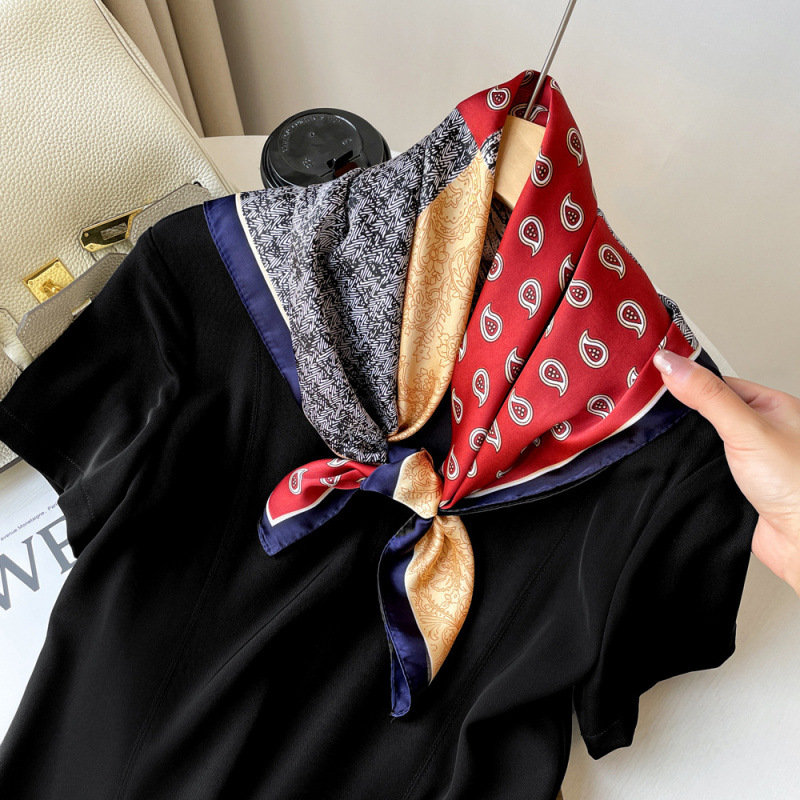 빨간 캐슈 꽃 스카프 70 모방 실크 작은 광장 스카프 여성 복고풍 예술 여름 스카프 목 스카프 도매