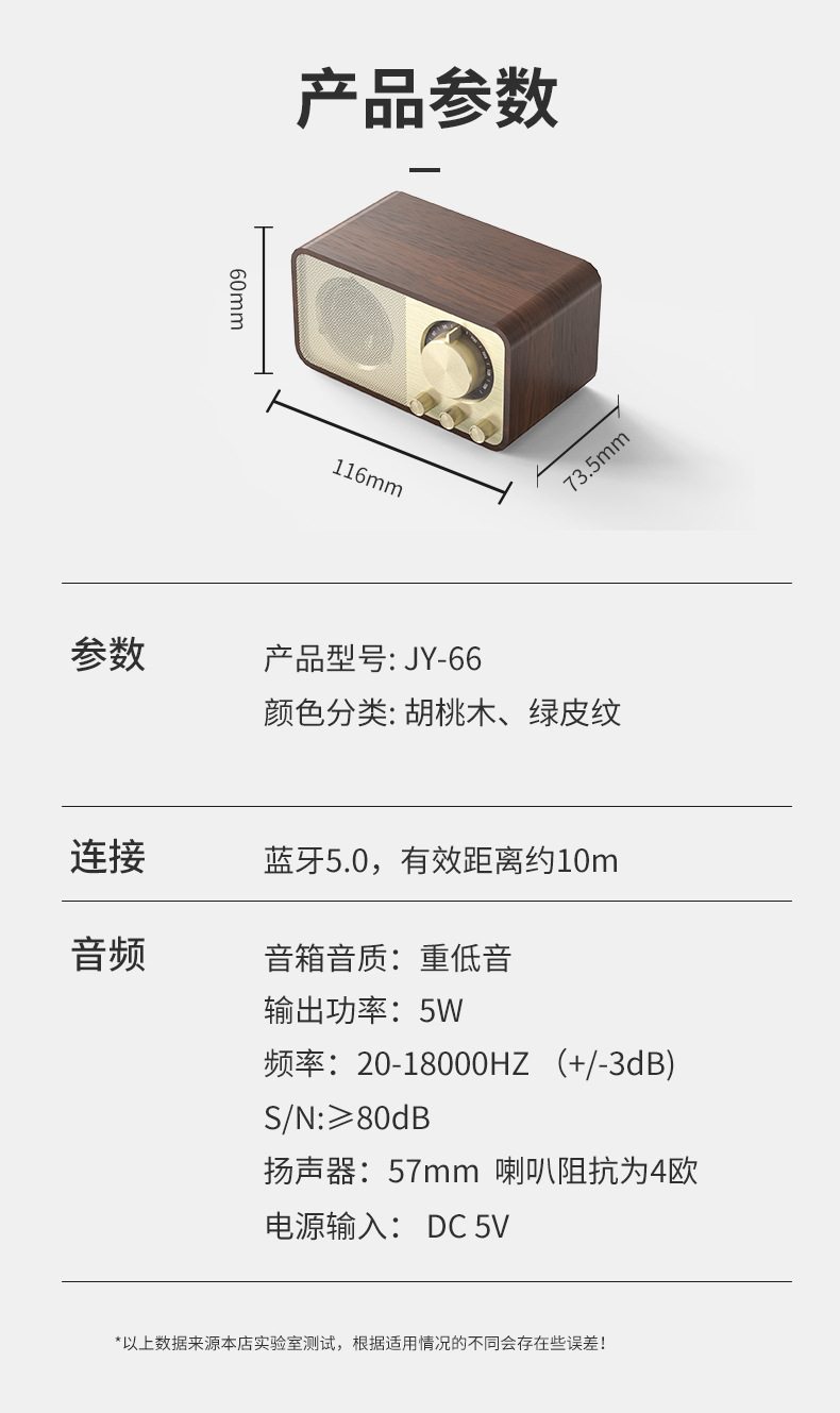 개인 모델 새로운 JY66 블루투스 스피커 나무 클래식 홈 라디오 복고풍 서브 우퍼 스테레오 작은 스테레오