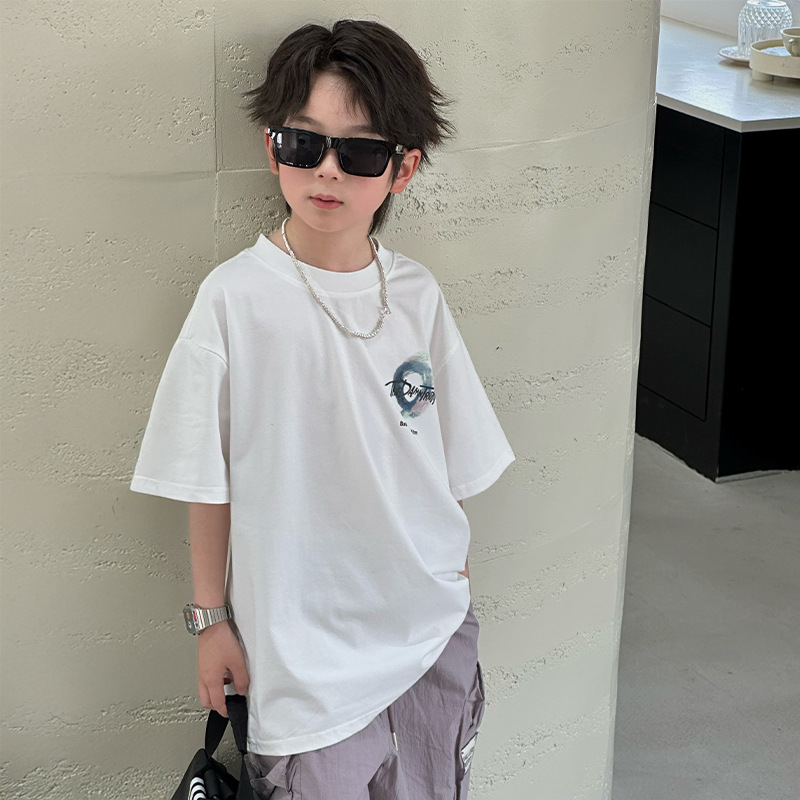 한국 스타일 아동복 소년 티셔츠 반팔 여름 2025 새로운 스타일 중대형 어린이 톱 소년 어린이 여름 여름 유행 티셔츠