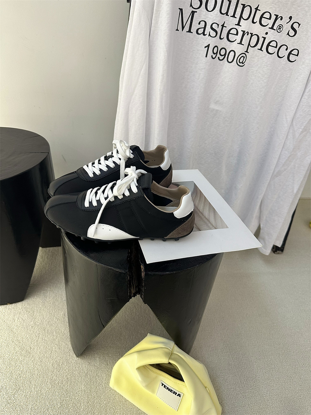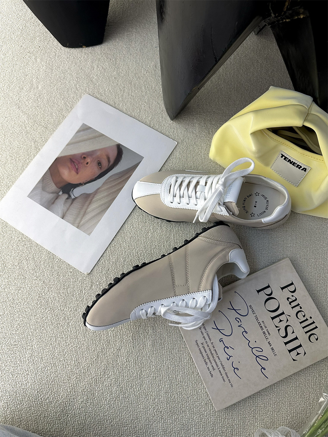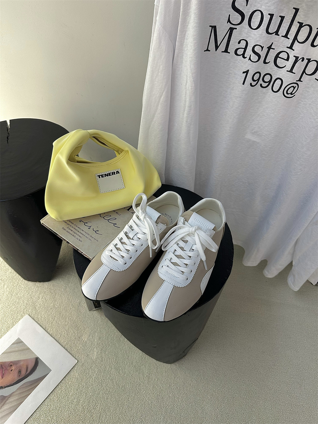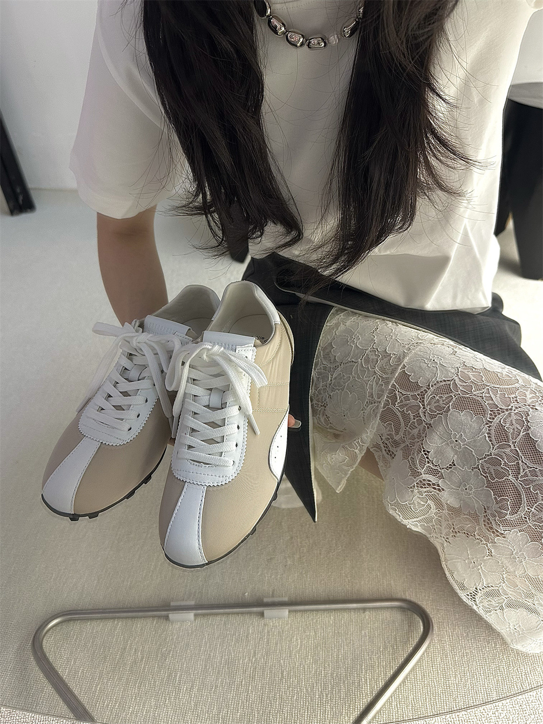 Baixiangni 2025 레트로 캐주얼 레이싱 신발 여성 레이스 업 컬러 매칭 소 가죽 포레스트 검프 신발 가볍고 통기성이 뛰어난 육군 훈련 신발스토어 가기