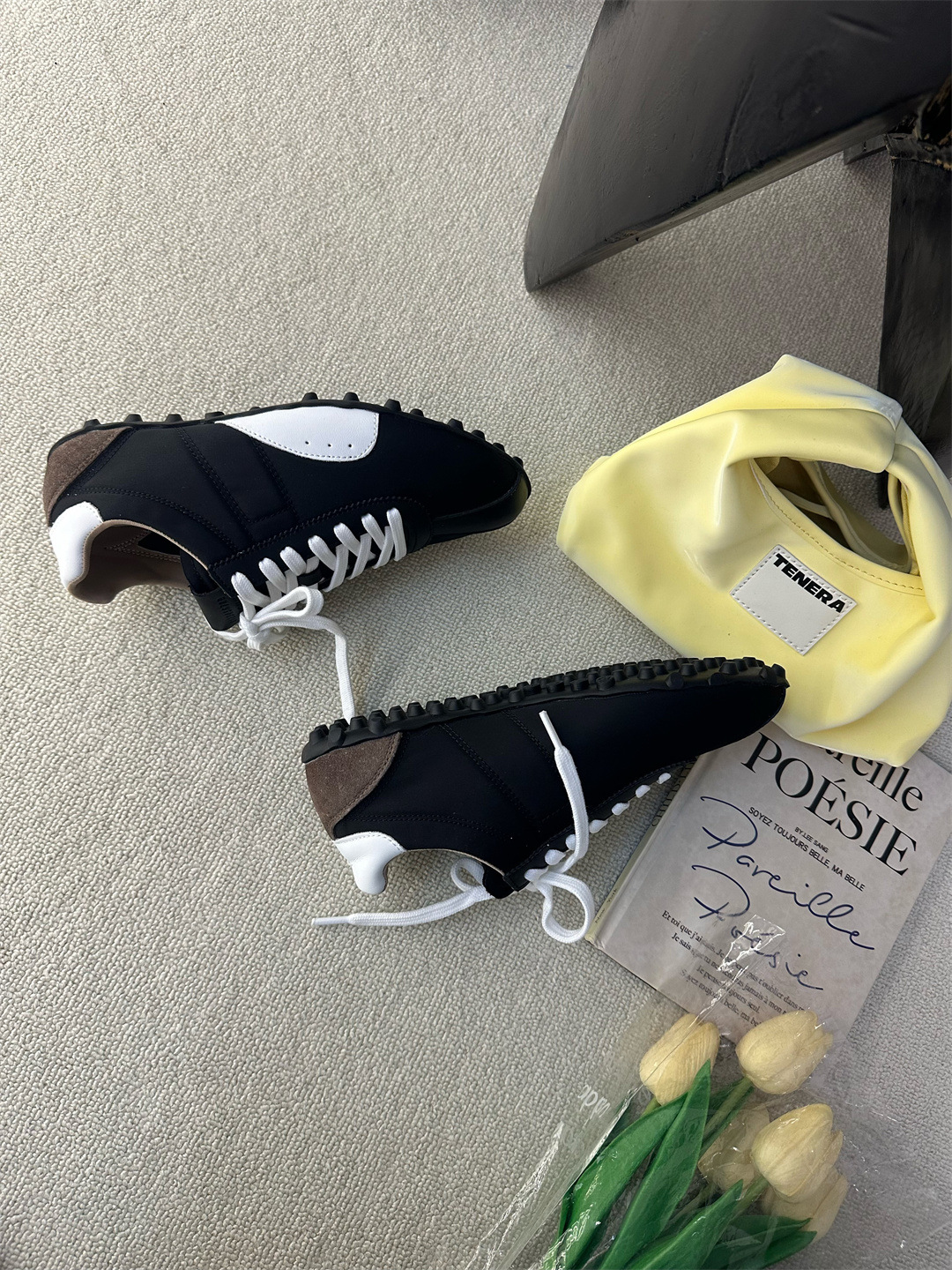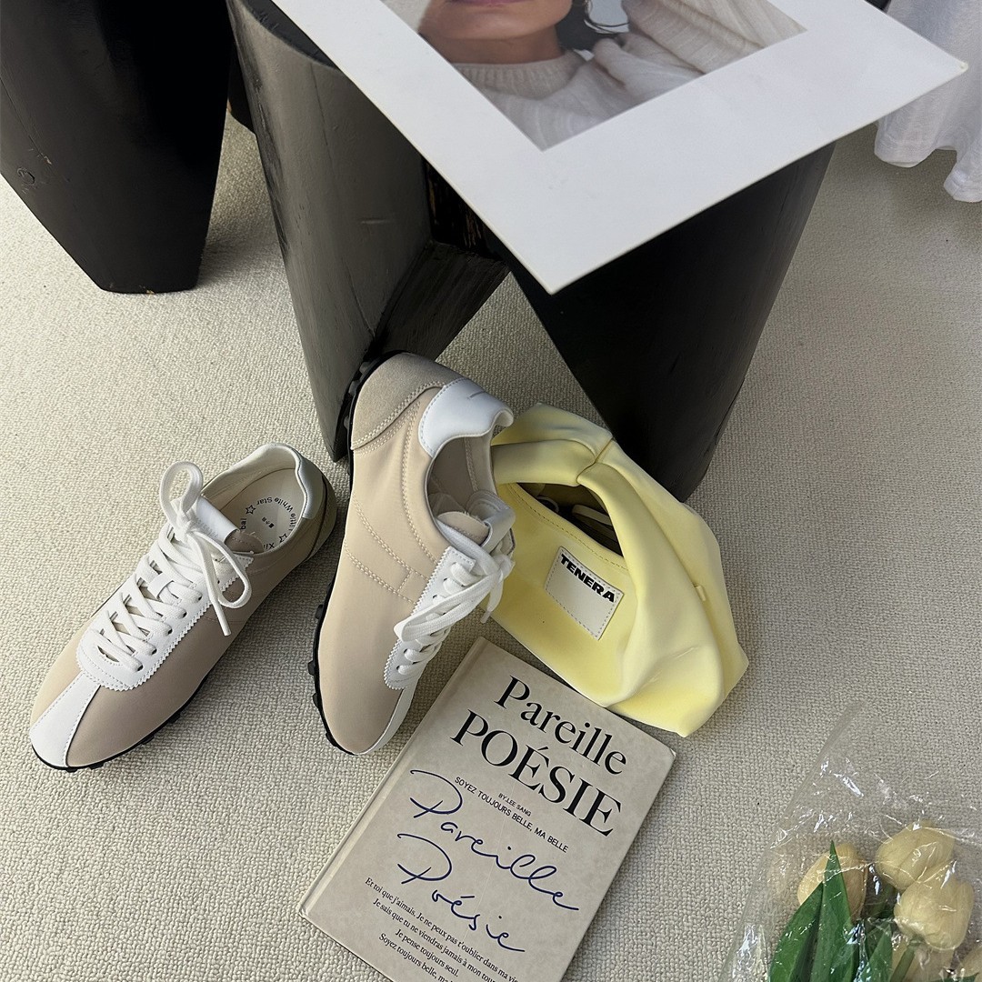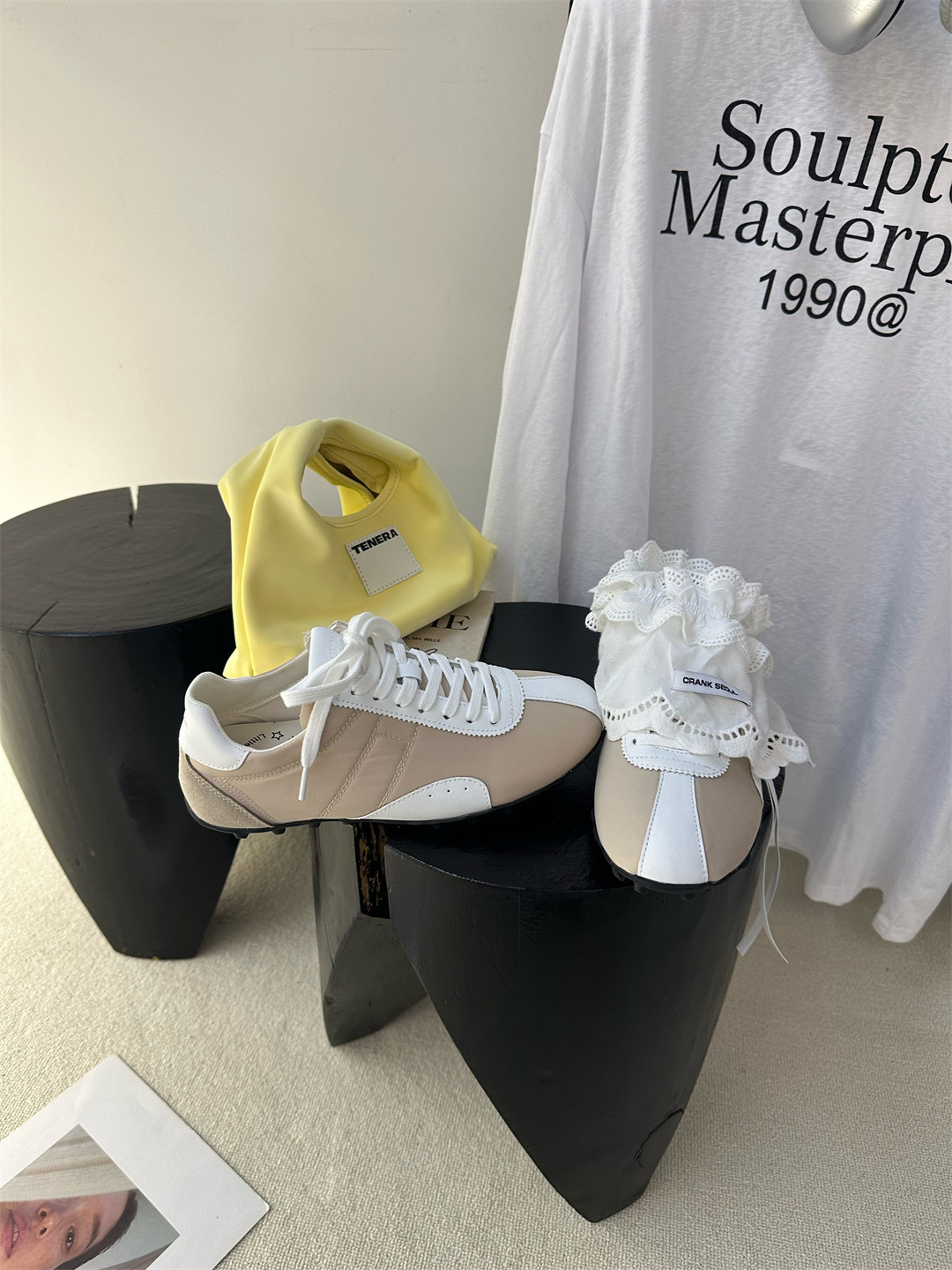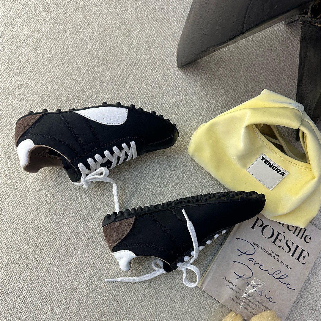Baixiangni 2025 레트로 캐주얼 레이싱 신발 여성 레이스 업 컬러 매칭 소 가죽 포레스트 검프 신발 가볍고 통기성이 뛰어난 육군 훈련 신발스토어 가기