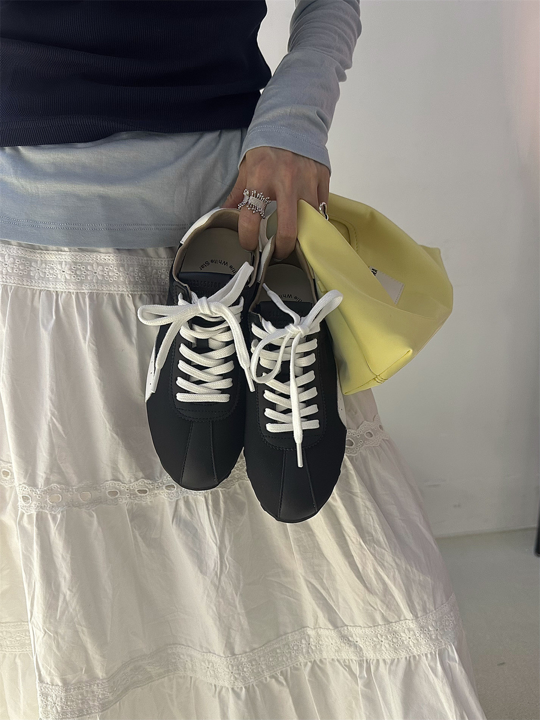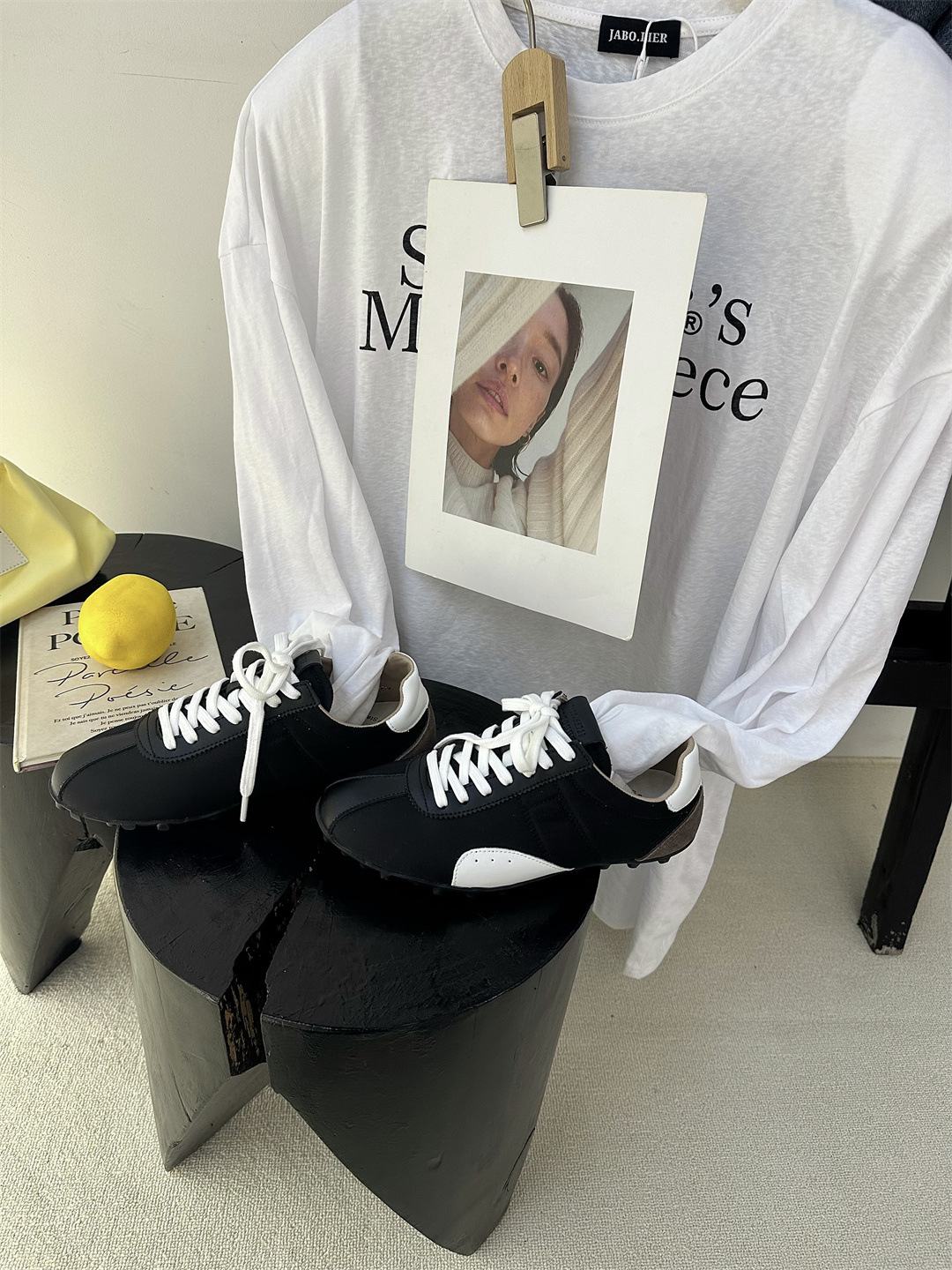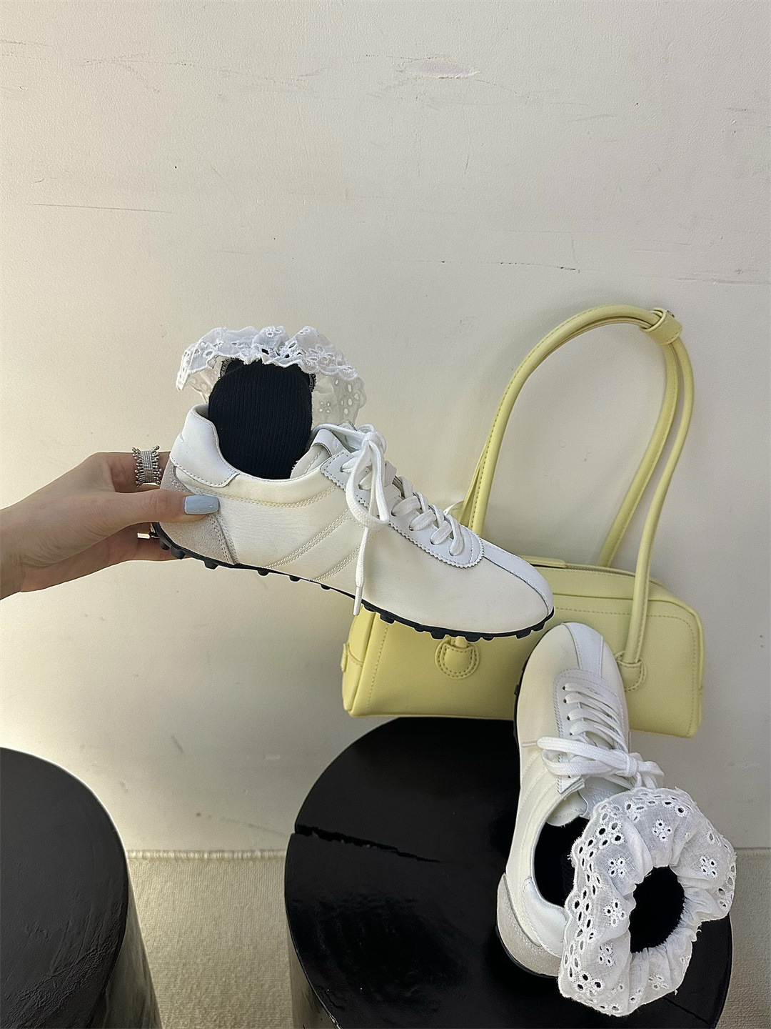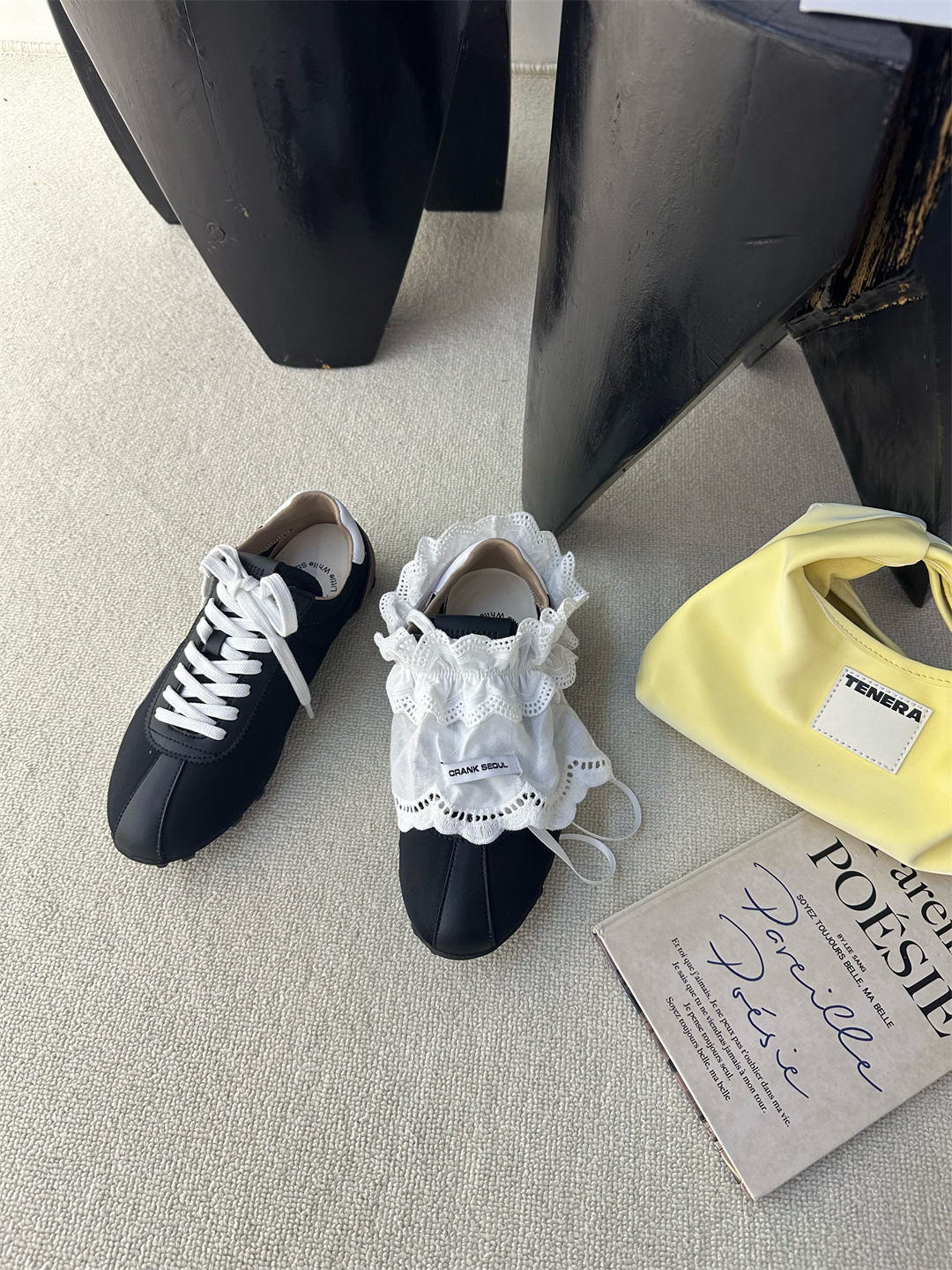 Baixiangni 2025 레트로 캐주얼 레이싱 신발 여성 레이스 업 컬러 매칭 소 가죽 포레스트 검프 신발 가볍고 통기성이 뛰어난 육군 훈련 신발스토어 가기