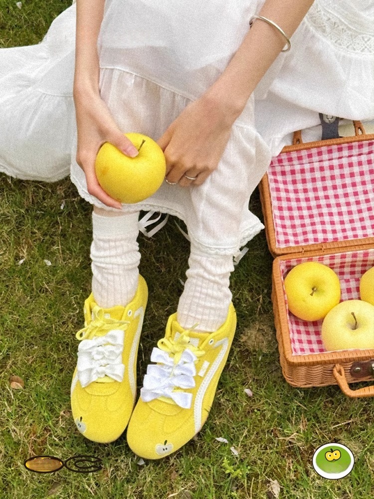 포레스트 검프 트레이닝 신발 여성 2025 년 새 여름 라운드 토 옐로우 애플 레이싱 슈즈 올 매치 플랫 캐주얼 운동화