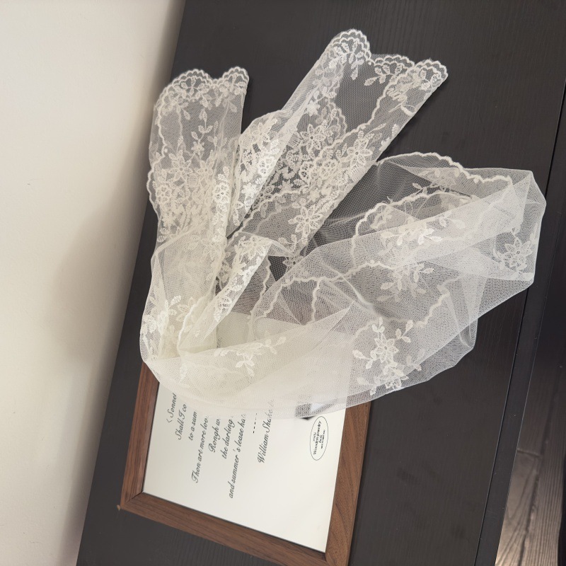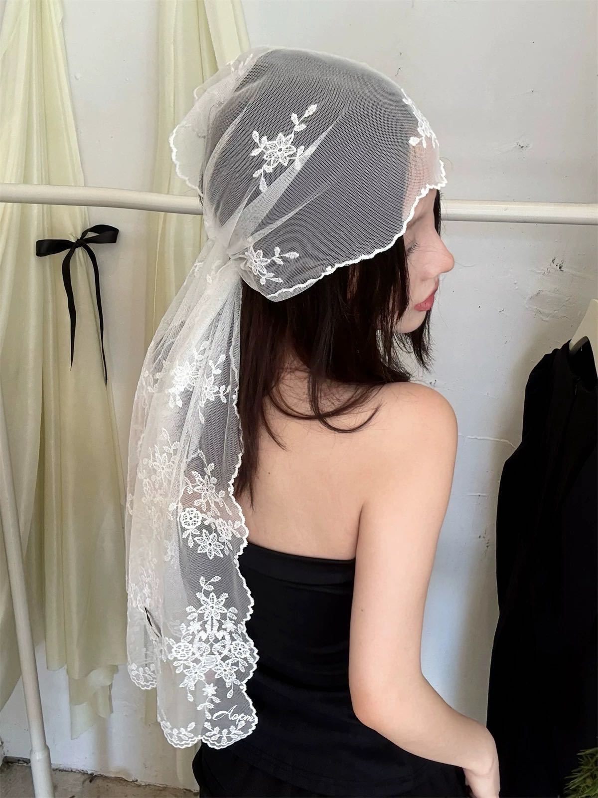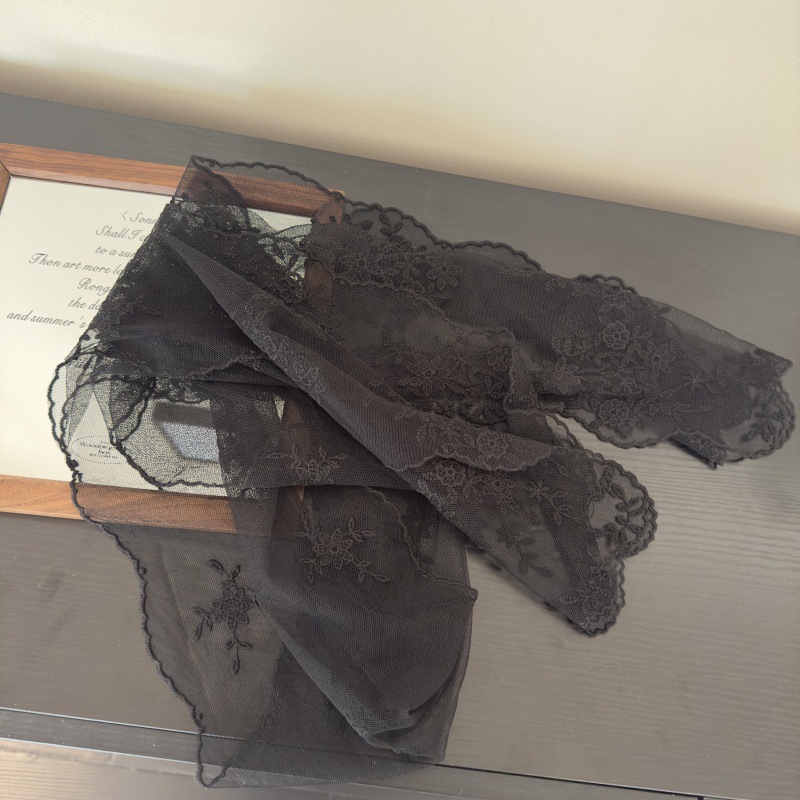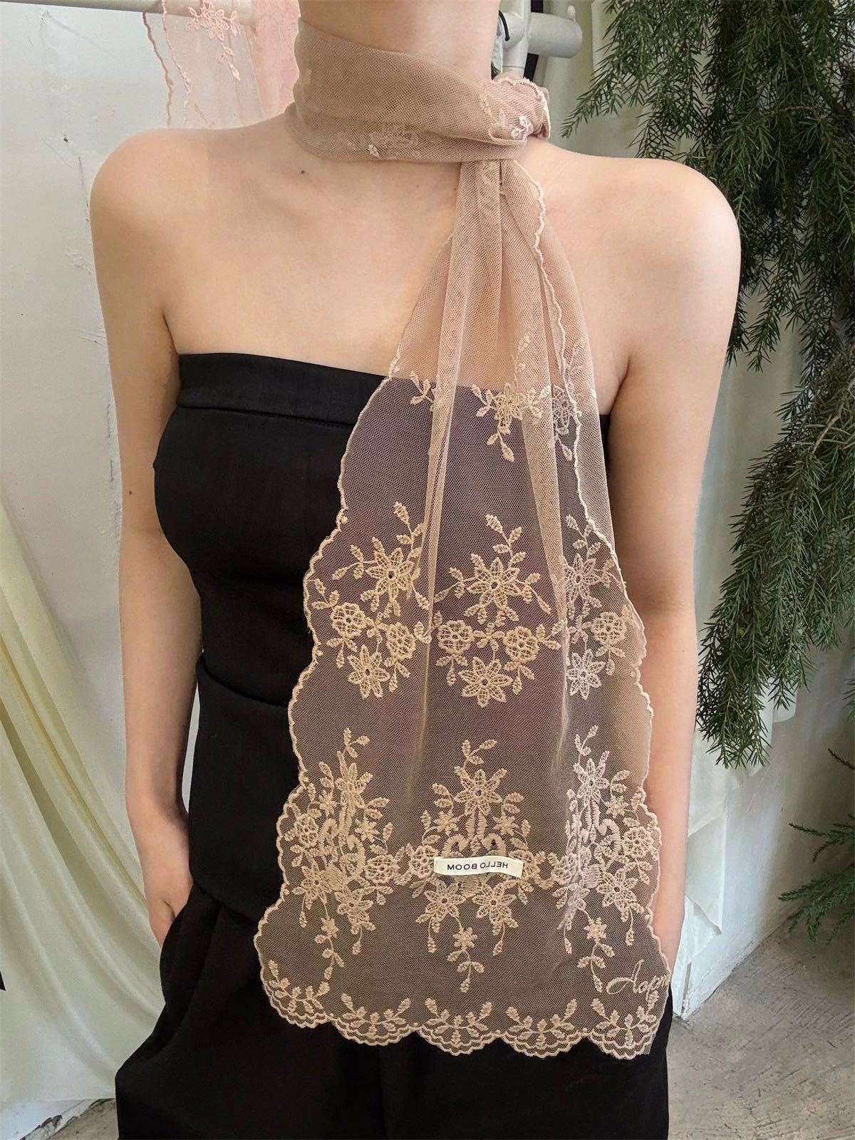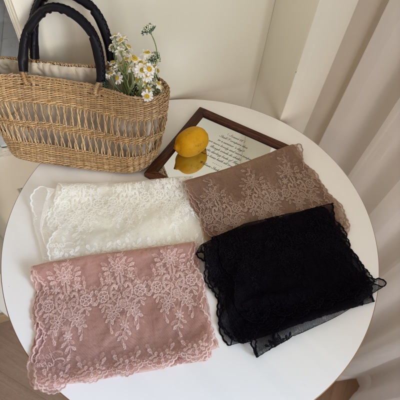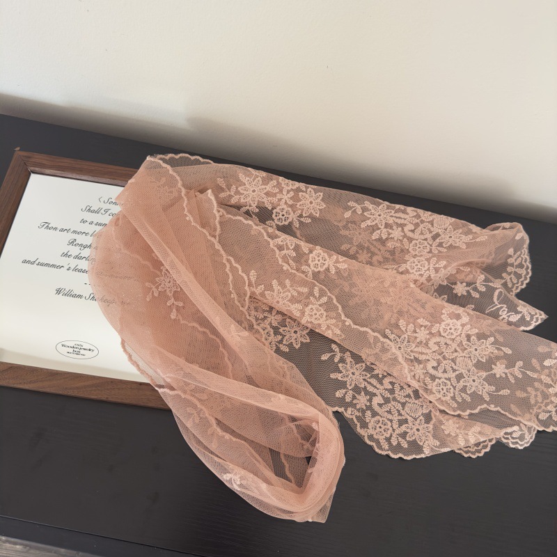 한국 스타일 같은 스타일 레이스 Rhomboid 실크 스카프 프랑스 스타일 슈퍼 페어리 자수 헤어 밴드 테이프 레트로 넥 스카프 여성의 봄 여름 작은 긴 스카프
