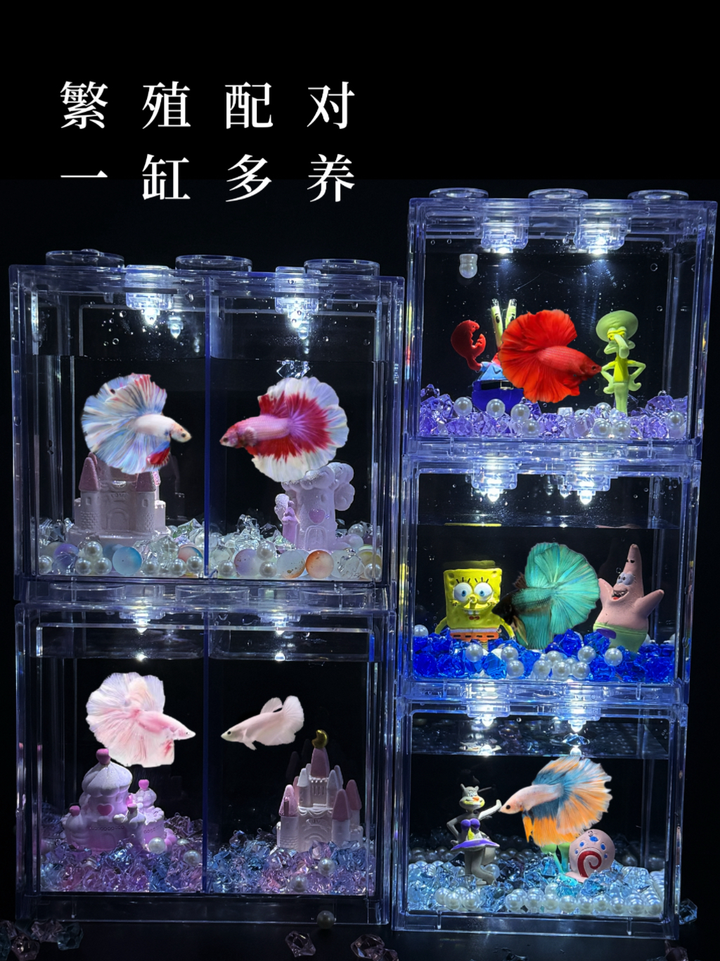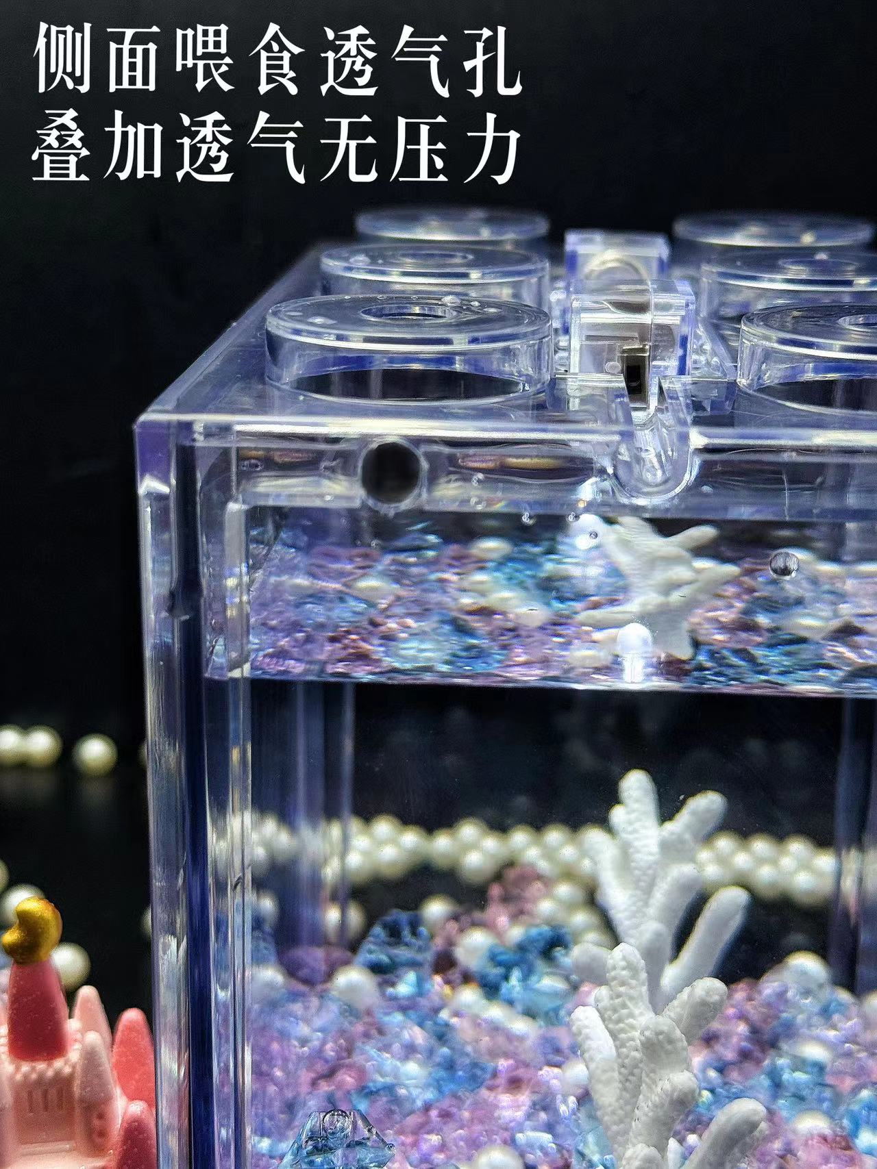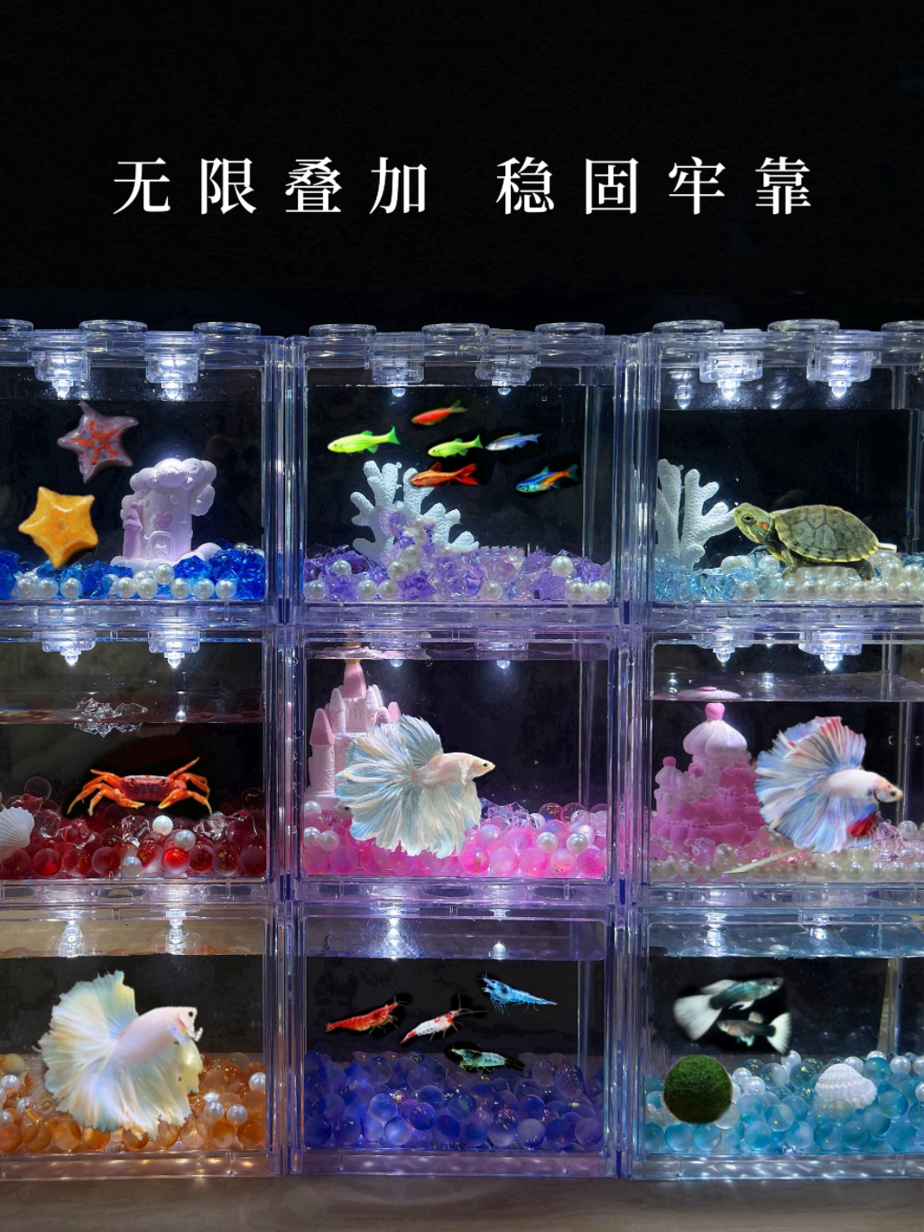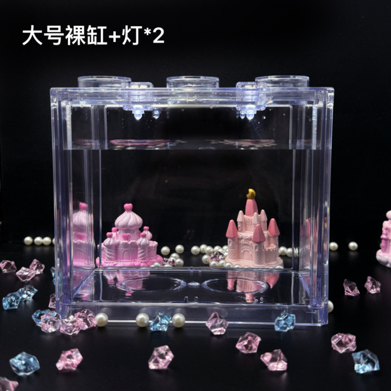 베타피쉬 특수 수조 거실 소형 2024 새로운 조경 장식품 아크릴 초백색 테이블 빌딩 블록 거북이 수조스토어 가기