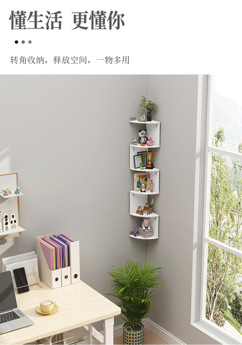 거실 벽걸이 형 다층 삼각형 스토리지 랙 가정용 펀치없는 코너 스토리지 랙 북 장식품 스토리지 랙