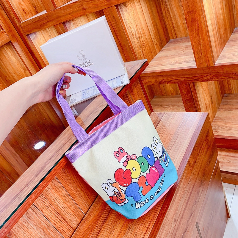 봄 나들이 핸드백 귀여운 대용량 여성 작업 통근 점심 가방 작은 가방 피크닉 캔버스 버킷 가방스토어 가기