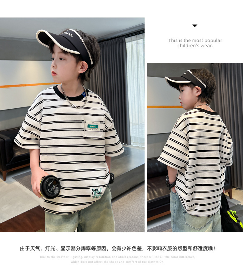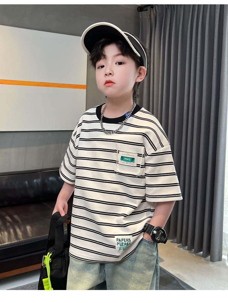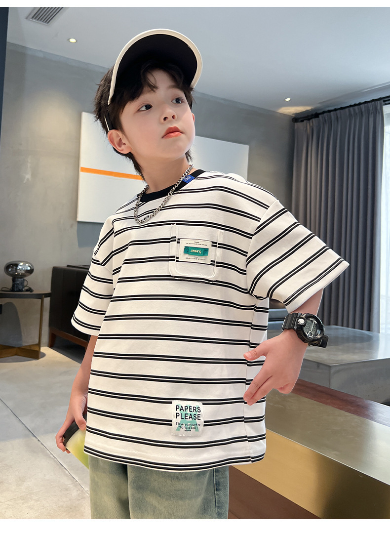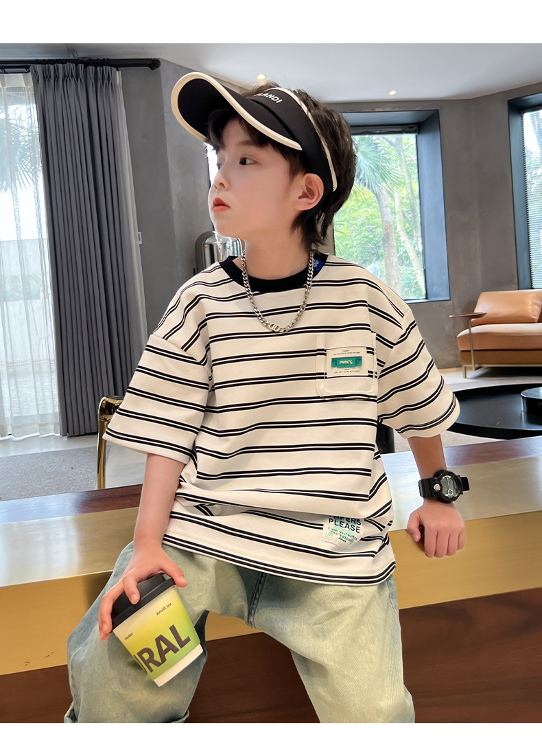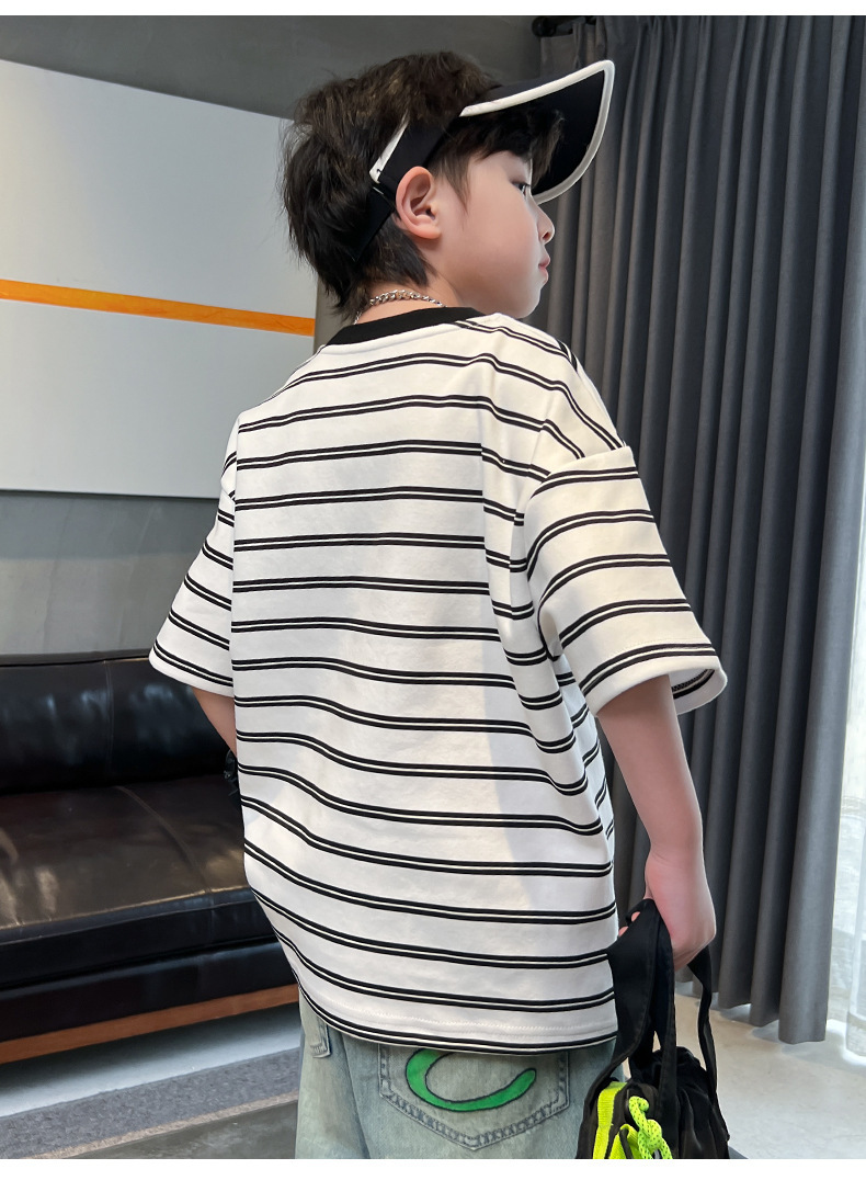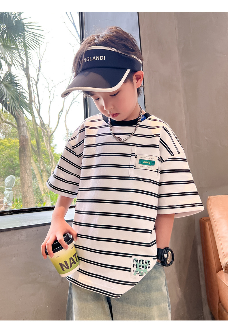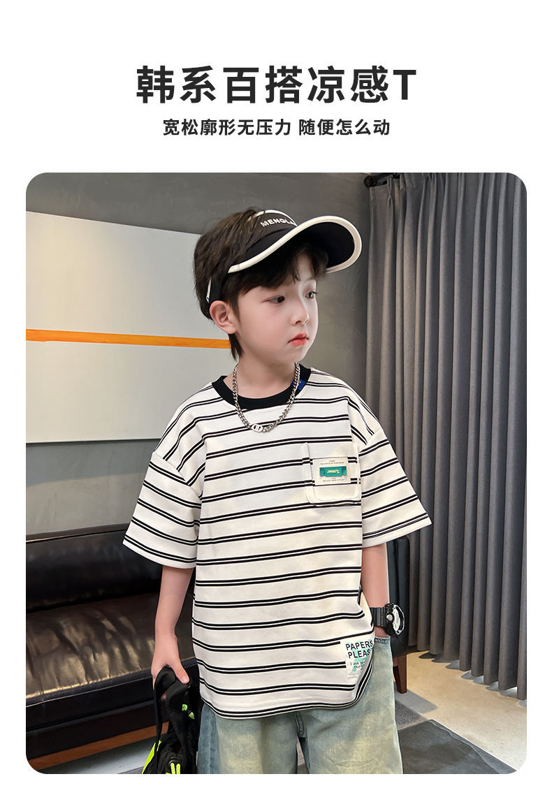 남학생 여름 줄무늬 반팔 티셔츠 2025 새 어린이 여름 반소매 중첩 어린이 여름 면화 탑 트렌디 티셔츠스토어 가기