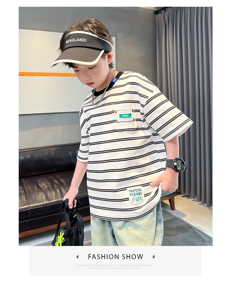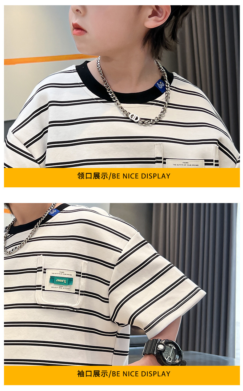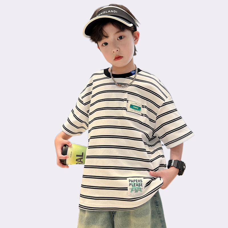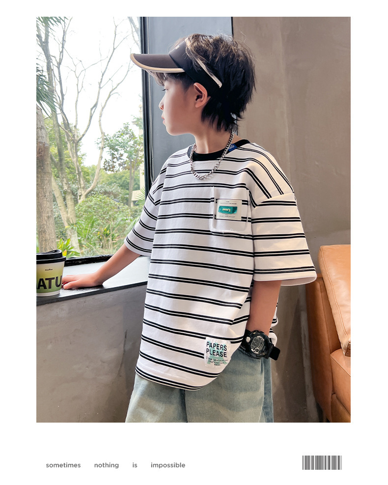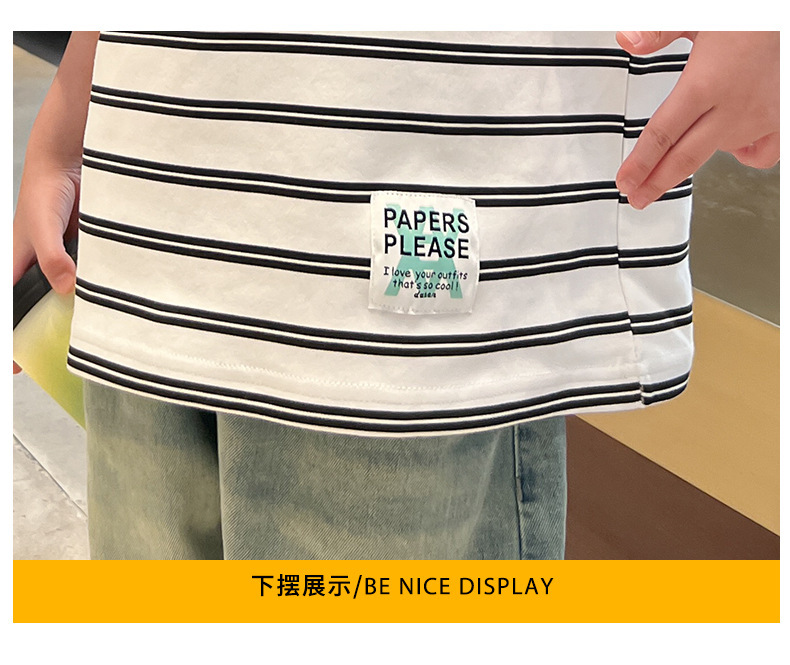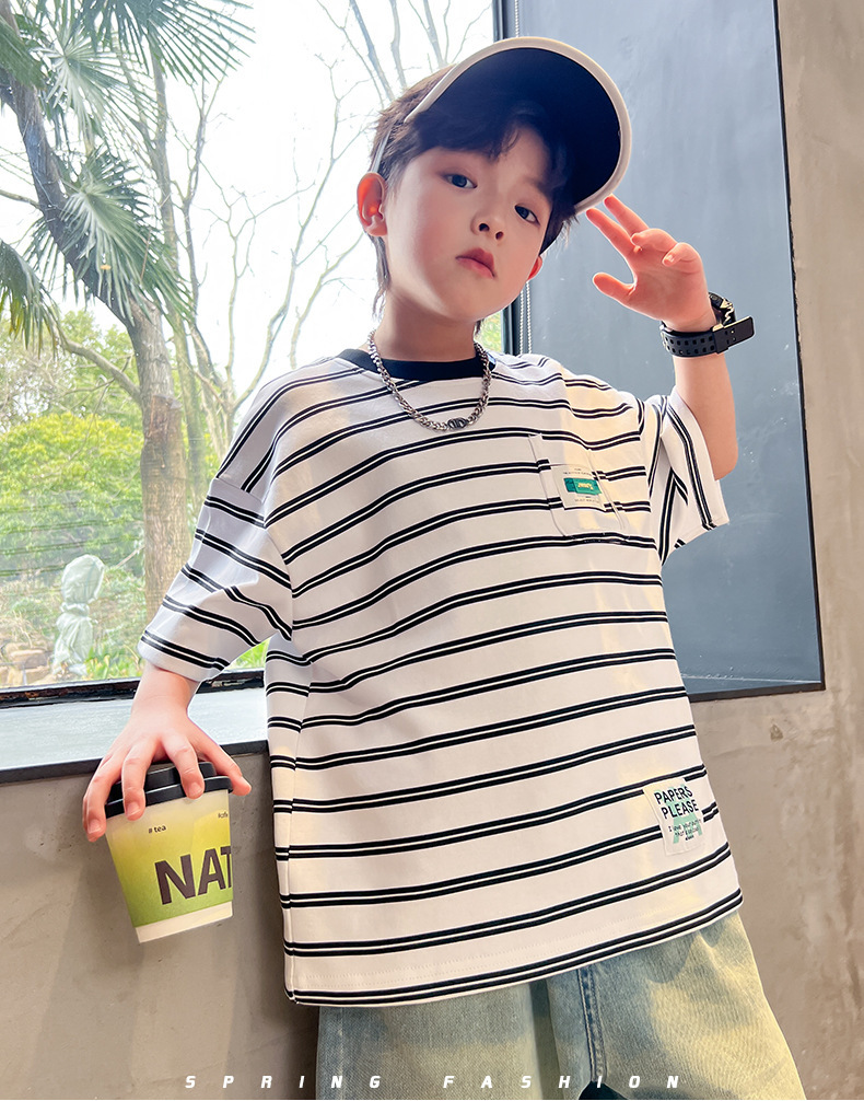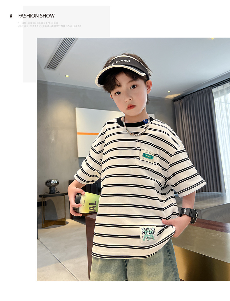 남학생 여름 줄무늬 반팔 티셔츠 2025 새 어린이 여름 반소매 중첩 어린이 여름 면화 탑 트렌디 티셔츠스토어 가기