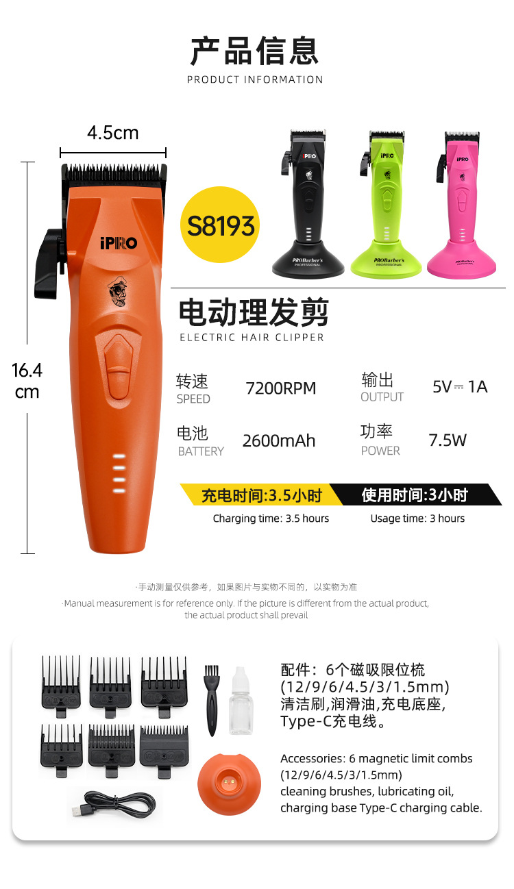 국경을 넘는 신형 이발기, 고속 오일헤드 전기 이발기, 가정용 충전식 브러시리스 이발기, 미용실 전용 전기 이발기