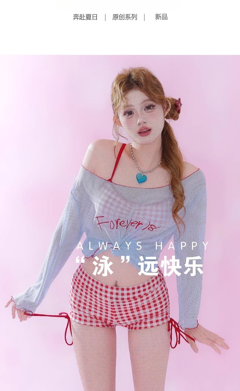 블라우스 긴팔 쪼개진 수영복 여성용 3 피스 세트 새로운 순수 바람 약간의 뚱뚱한 보수적 슬림 살 피복 커버 온천 수영복