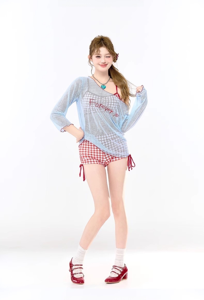 블라우스 긴팔 쪼개진 수영복 여성용 3 피스 세트 새로운 순수 바람 약간의 뚱뚱한 보수적 슬림 살 피복 커버 온천 수영복스토어 가기