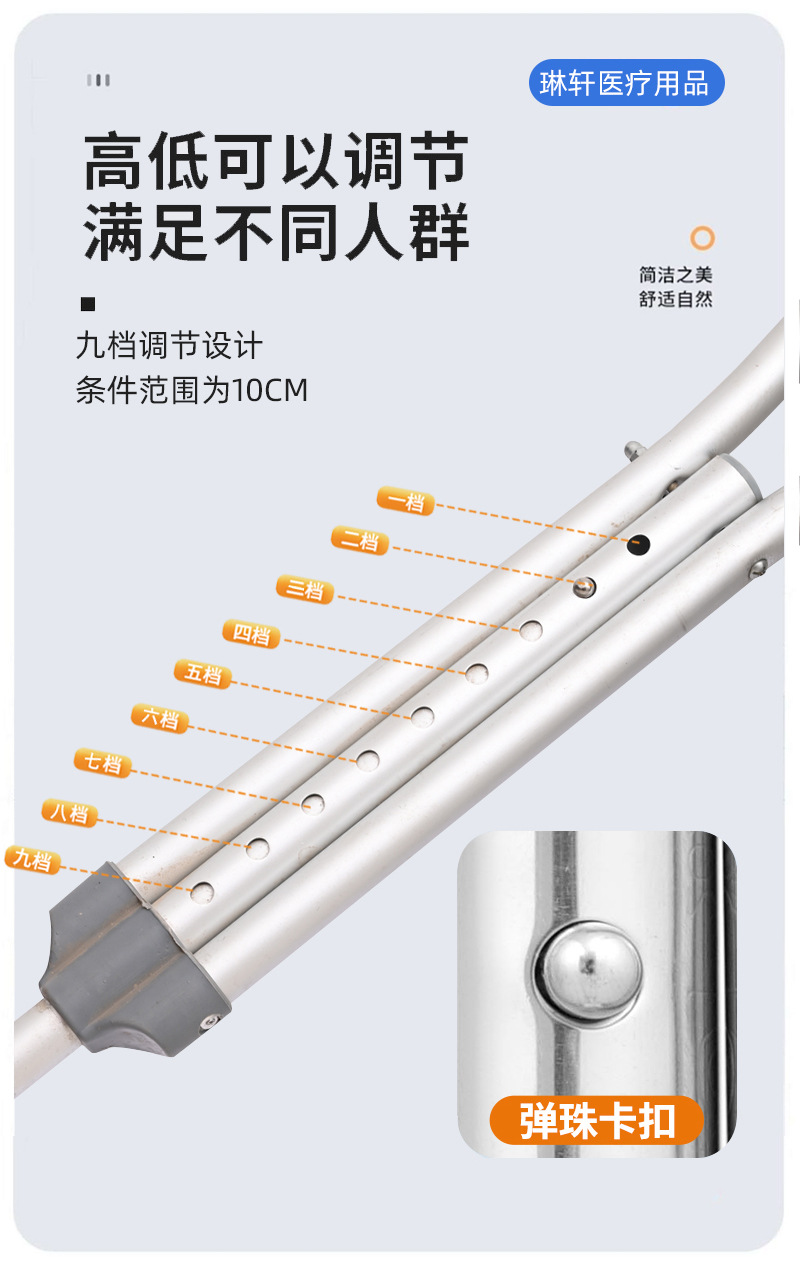 의료용 지팡이, 조절 가능한 텔레스코픽 이중 지팡이, 다단계 장애인 재활용, 두꺼운 알루미늄 합금 겨드랑이 지팡이, 등산용 지팡이