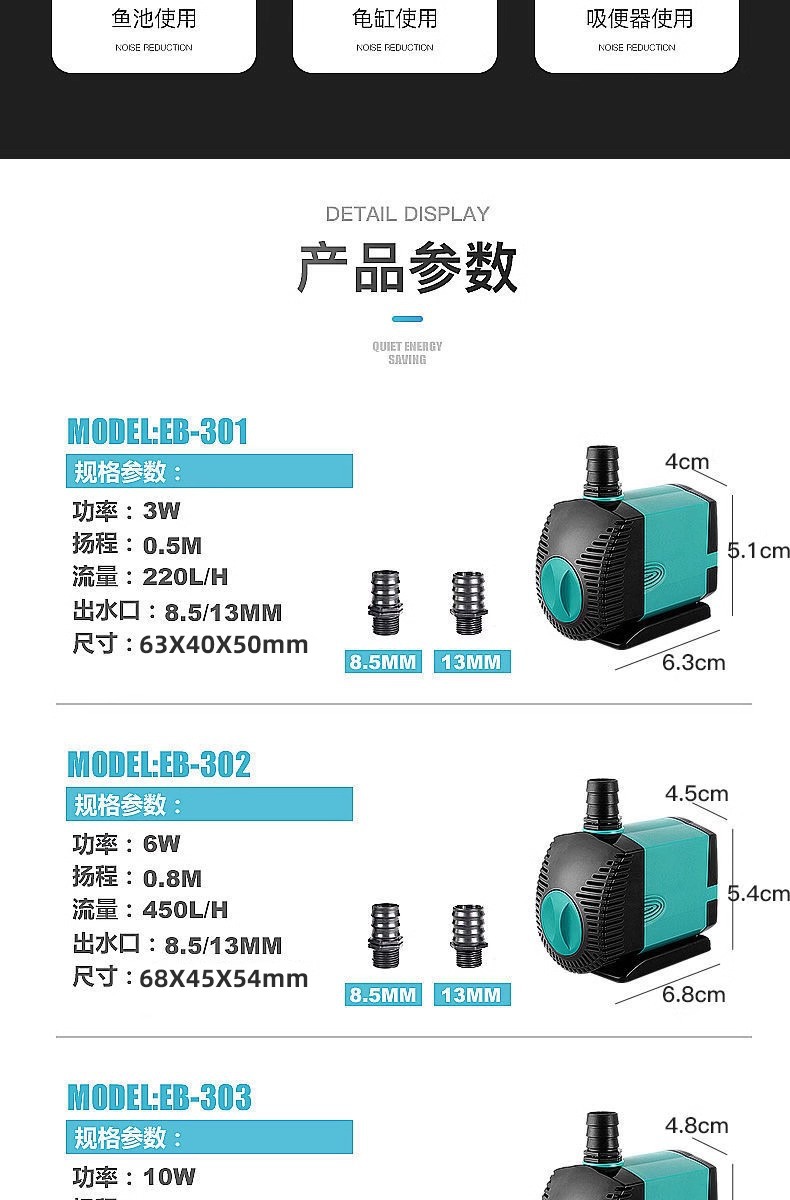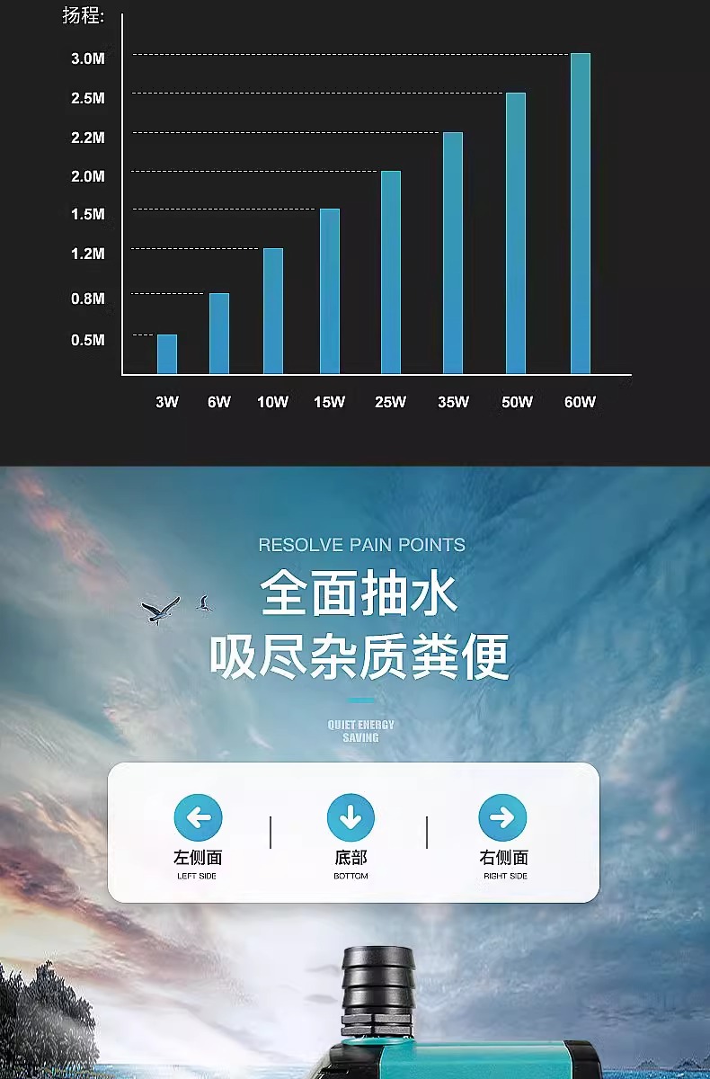 수조 여과 순환 펌프, 초저소음 물 교환 펌프, 석가대 흐르는 물 분수, 물고기 분뇨 흡입, 수중 바닥 흡입 펌프