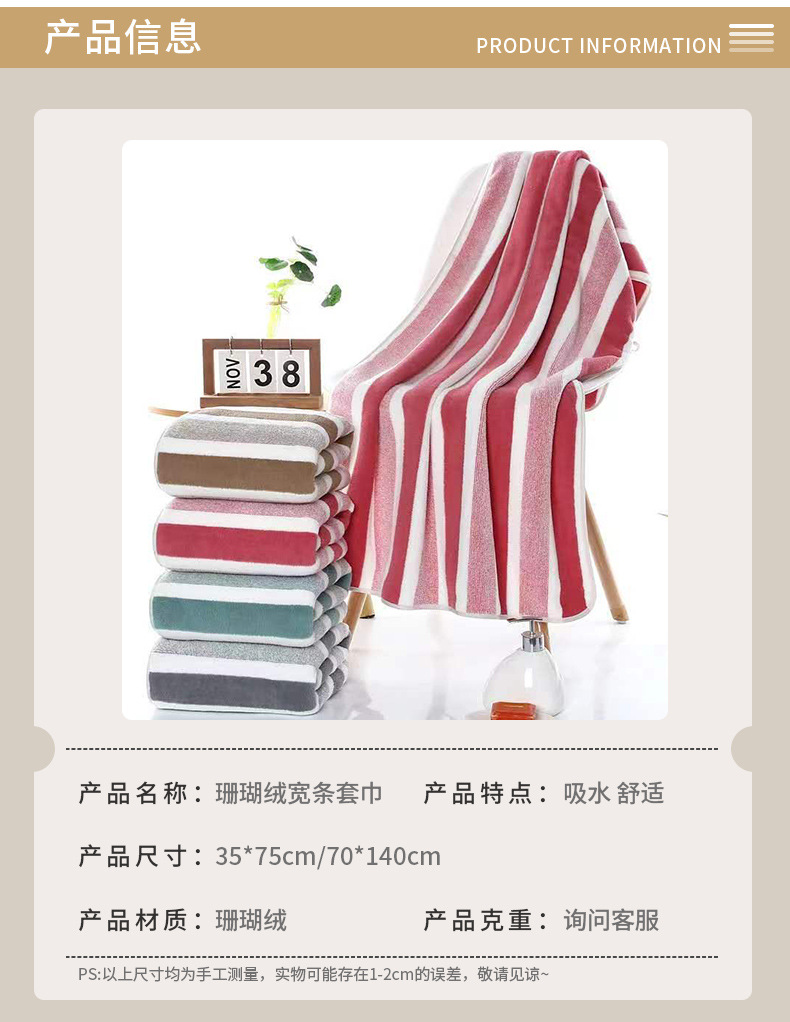 공장 도매 산호 양털 넓은 가장자리 큰 수건 목욕 타월 세트 부드럽고 섬세한 목욕 케어 홈 타월