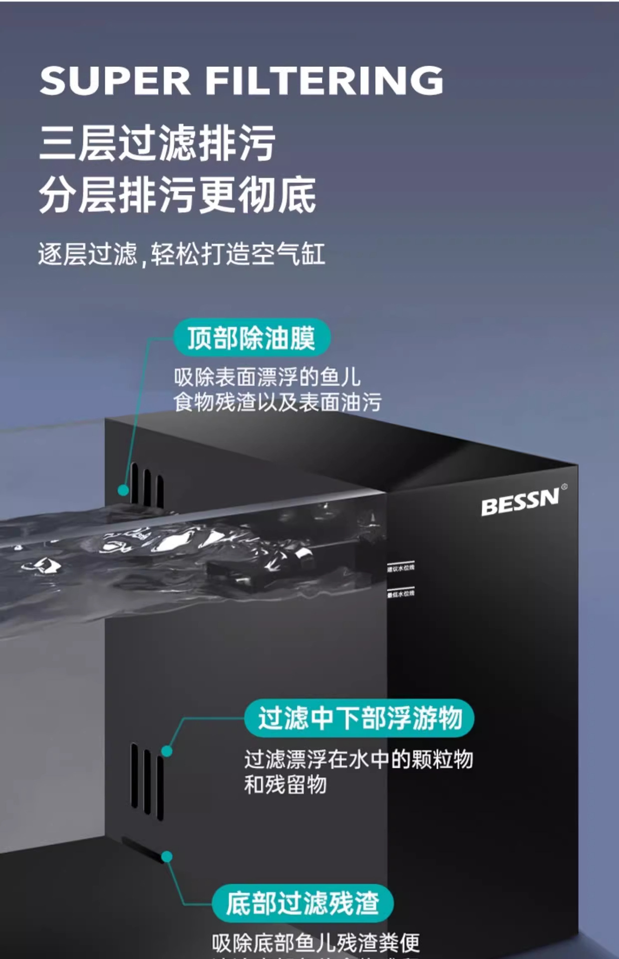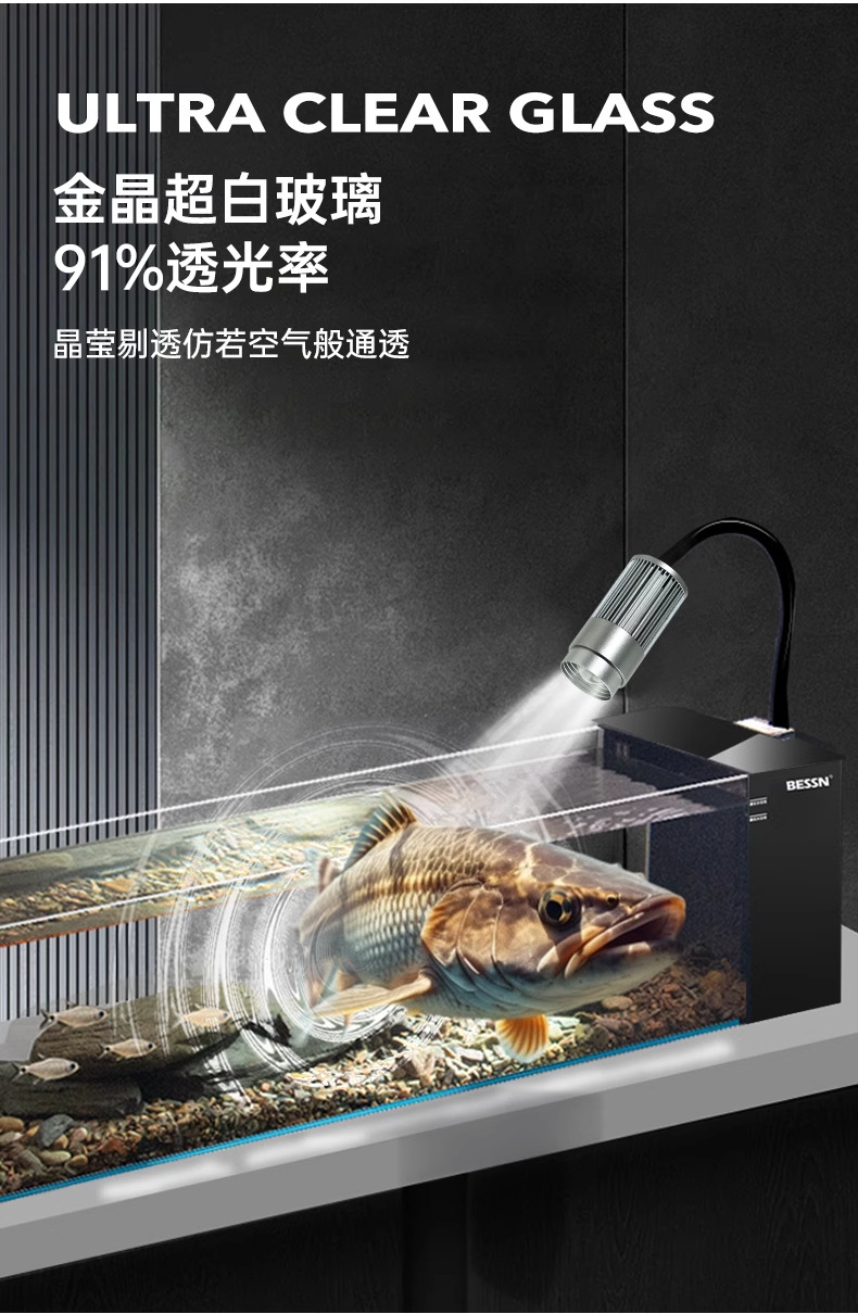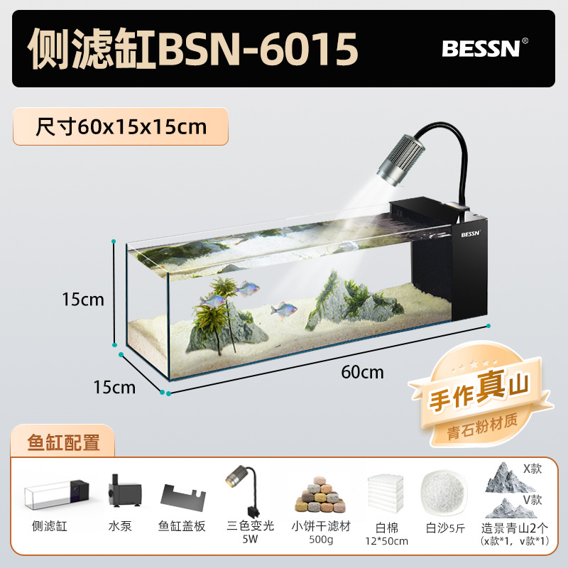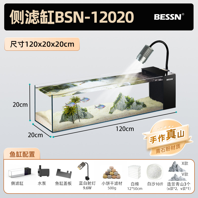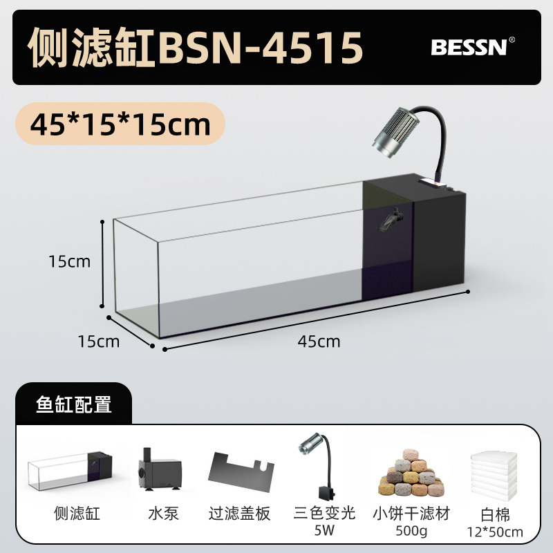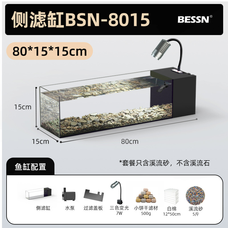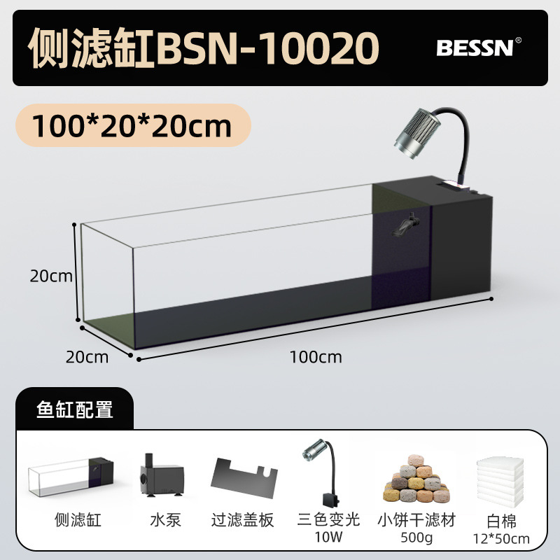 BESSN 데스크탑 스트림 탱크 물고기 탱크 풍경 슈퍼 화이트 탱크 거실 골드 크리스탈 유리 탱크 사이드 필터 남미 긴 물고기 탱크