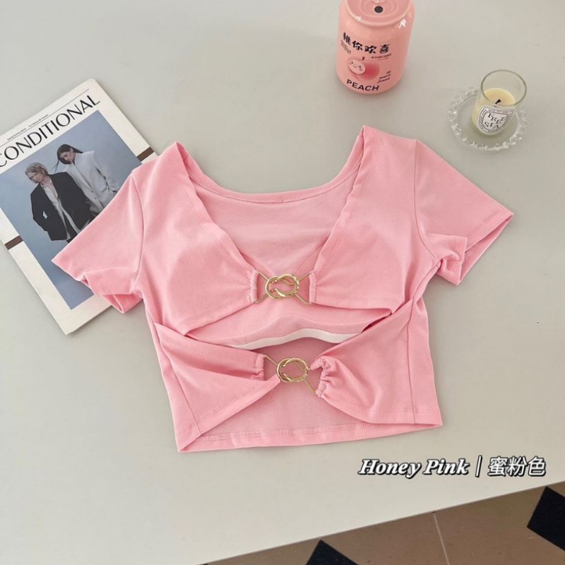 순수한 욕망 섹시 할로우 백리스 반팔 아름다운 백 조끼 여성 봄 여름 디자인 핫 소녀 슬림 피트 짧은 탑스토어 가기