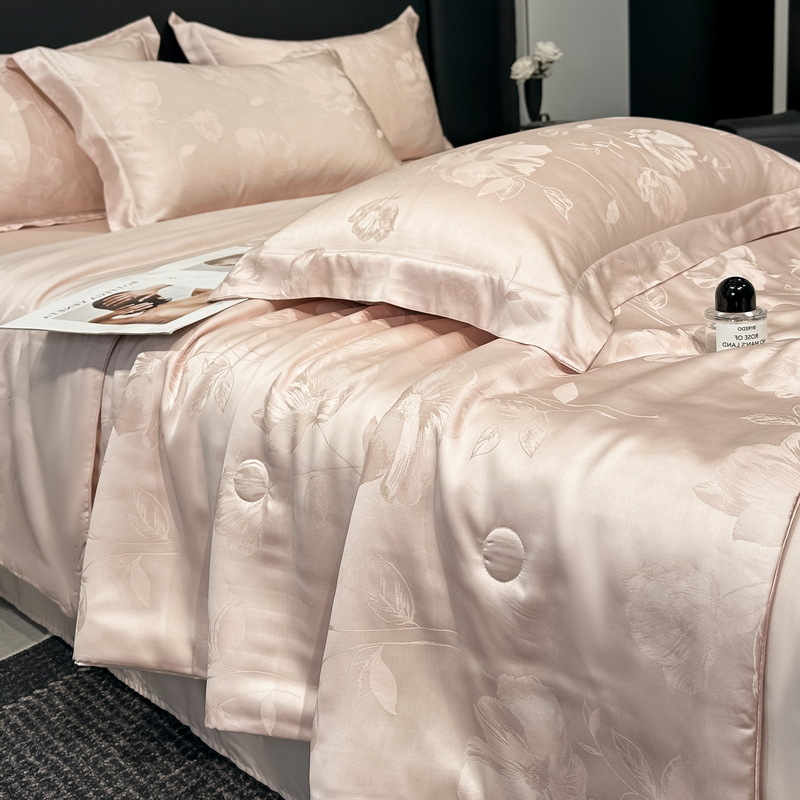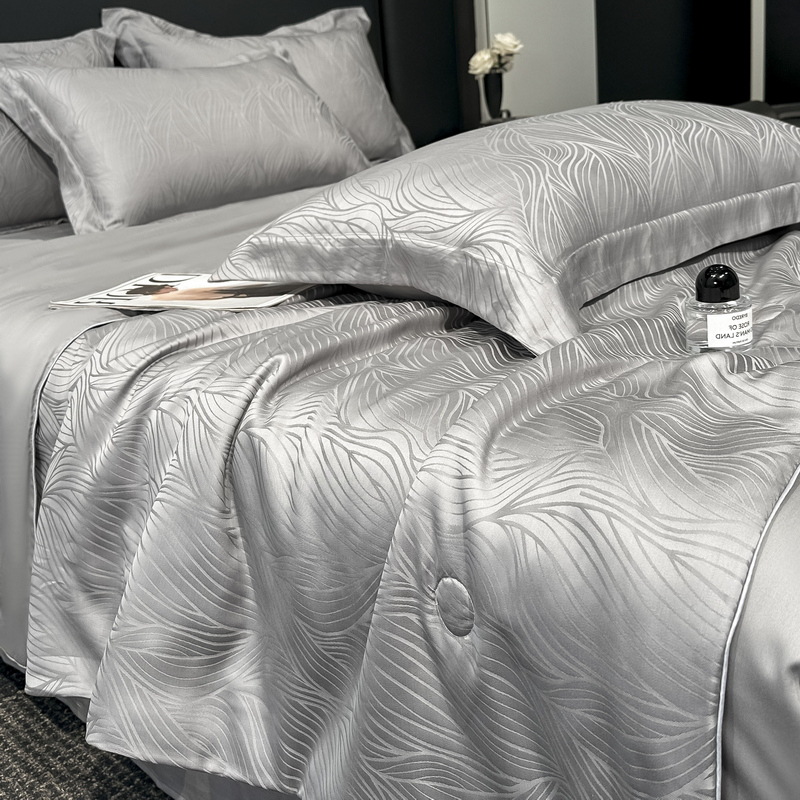 여름 실키 쿨 아이스 실크 얇은 퀼트 Lyocell 섬유 자카드 여름 쿨 퀼트 머신 세탁기 에어컨 퀼트 4 피스 세트