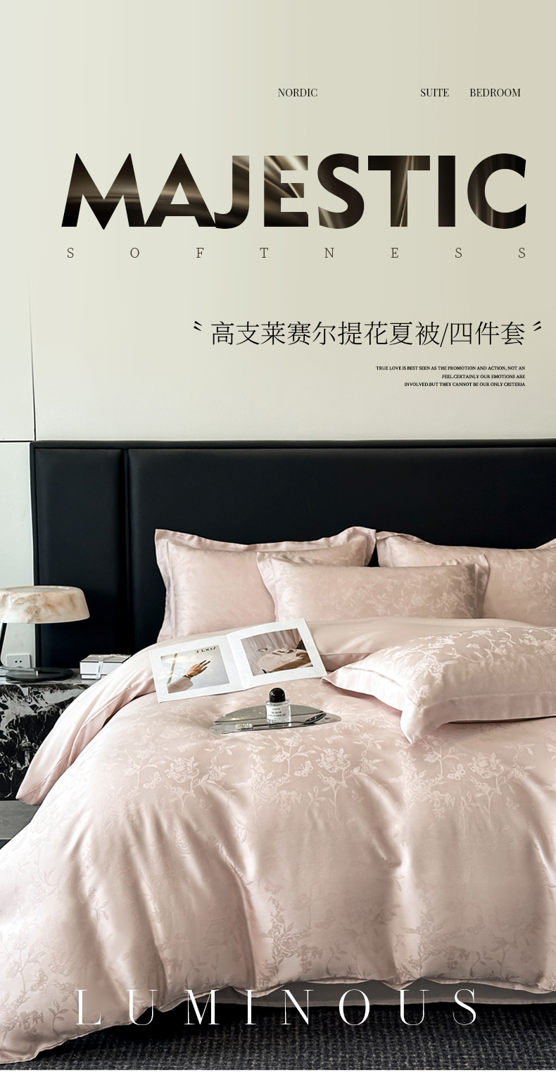 여름 실키 쿨 아이스 실크 얇은 퀼트 Lyocell 섬유 자카드 여름 쿨 퀼트 머신 세탁기 에어컨 퀼트 4 피스 세트스토어 가기