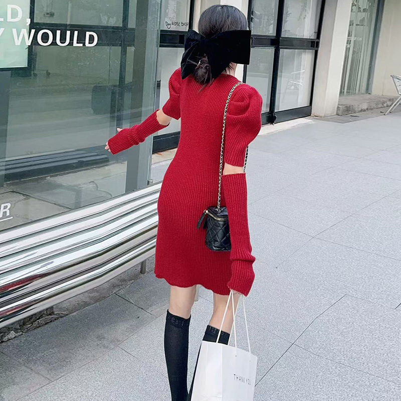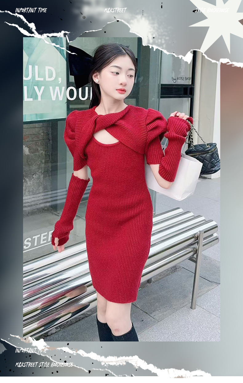 빨간 가을과 겨울 크리스마스 소녀의 스웨터 스커트 서양식 어린이 여성의 두꺼운 니트 원피스 원피스 아기 울스토어 가기