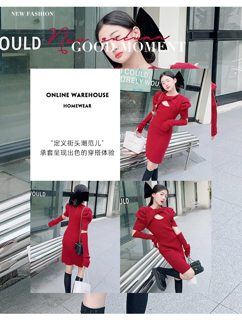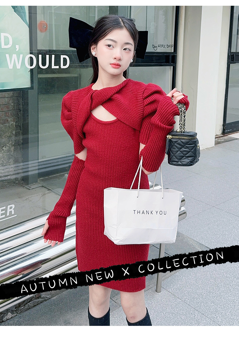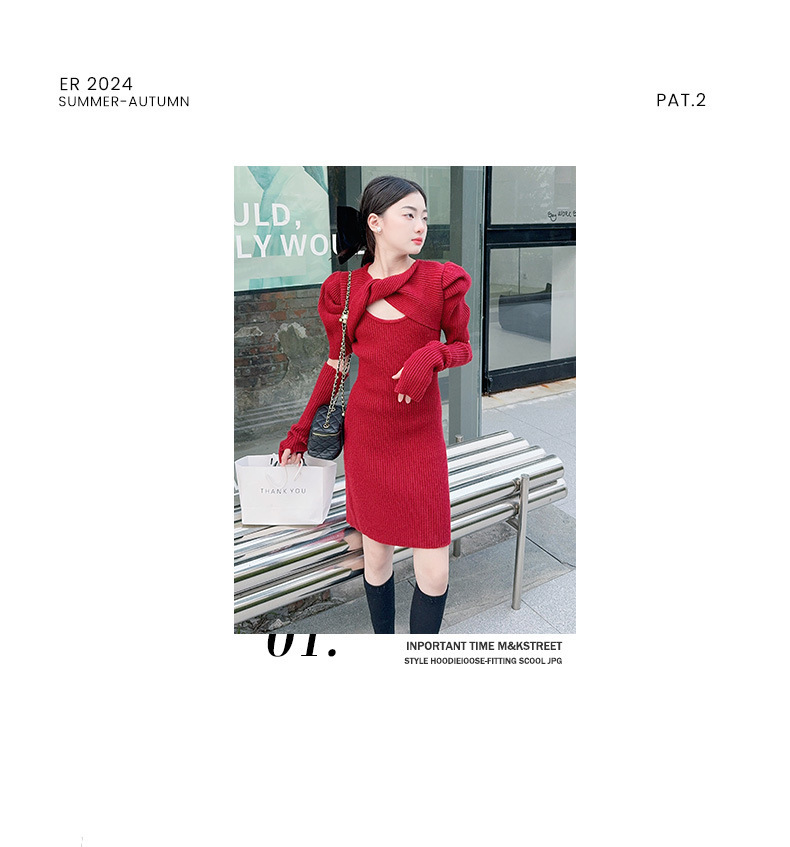 • 레드 슬리브 투피스 세트