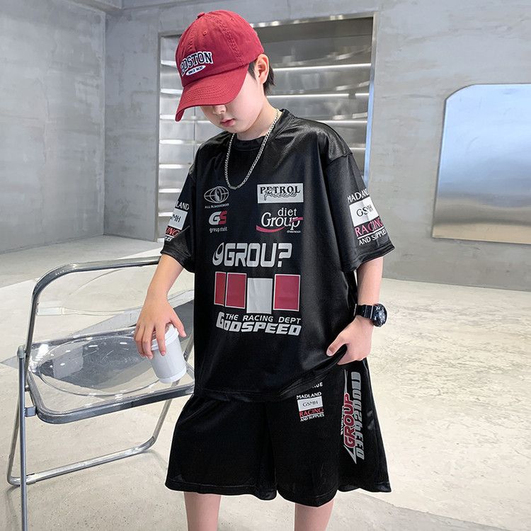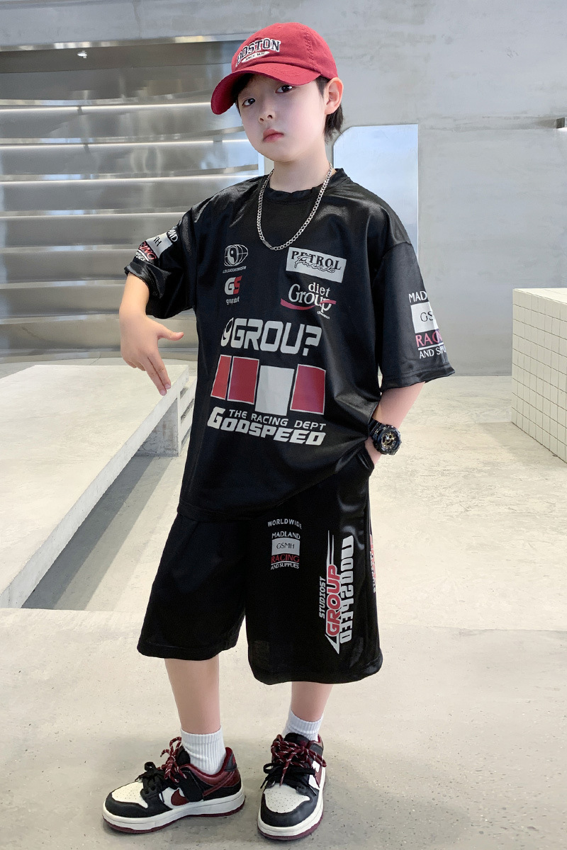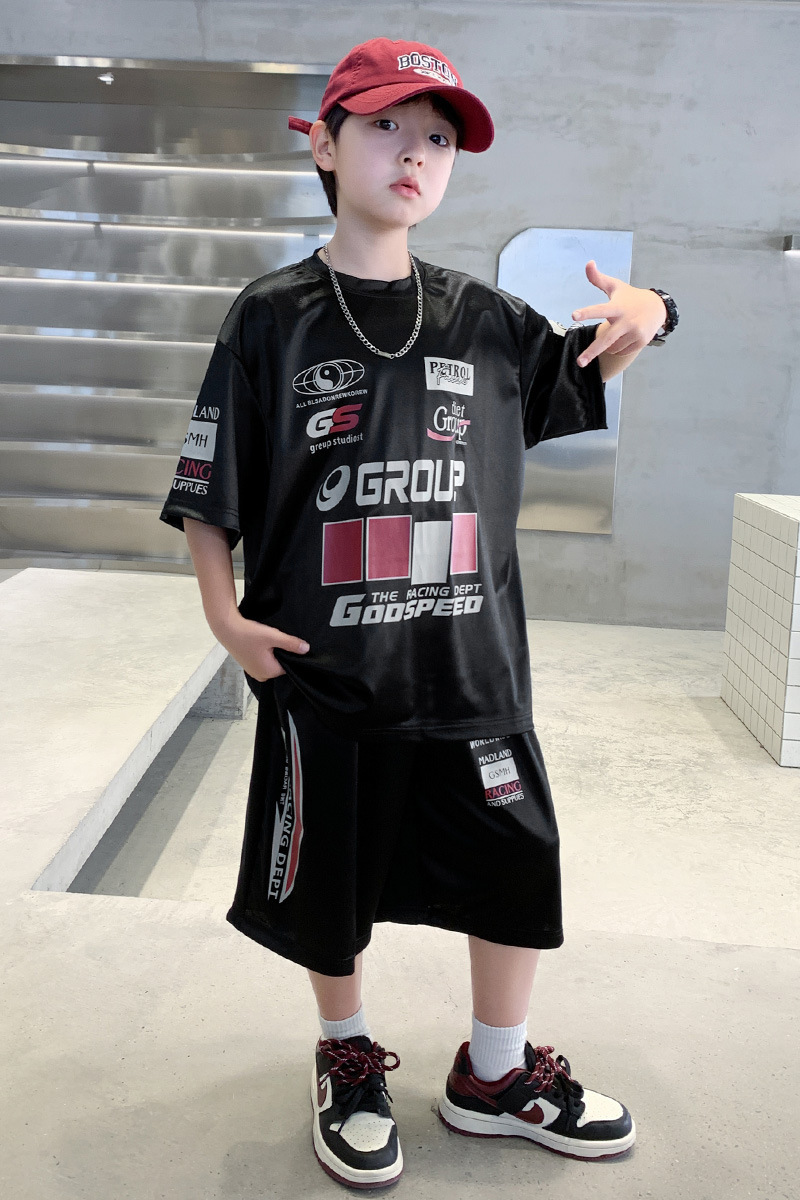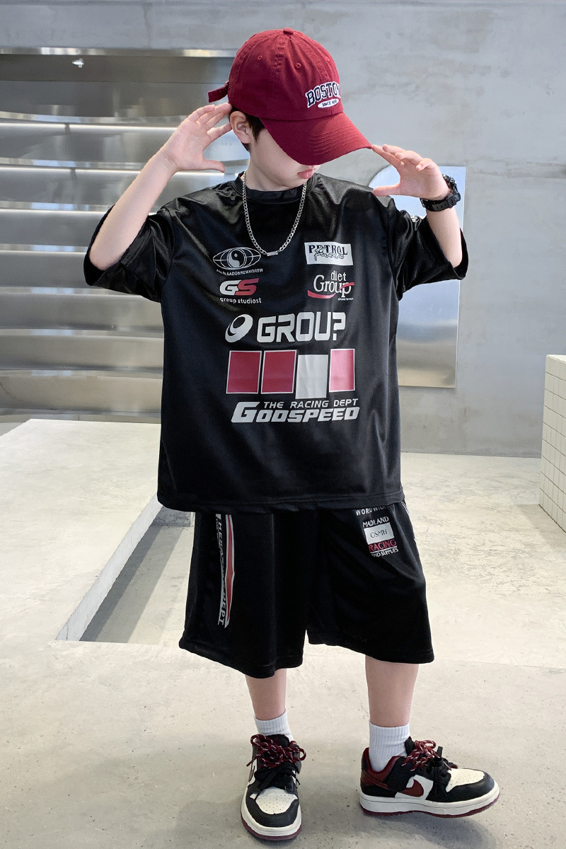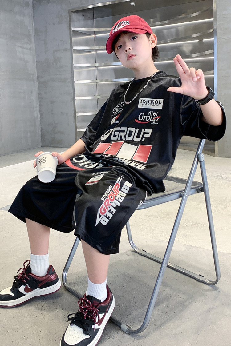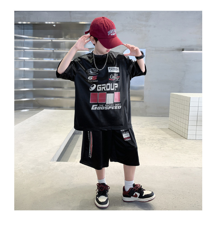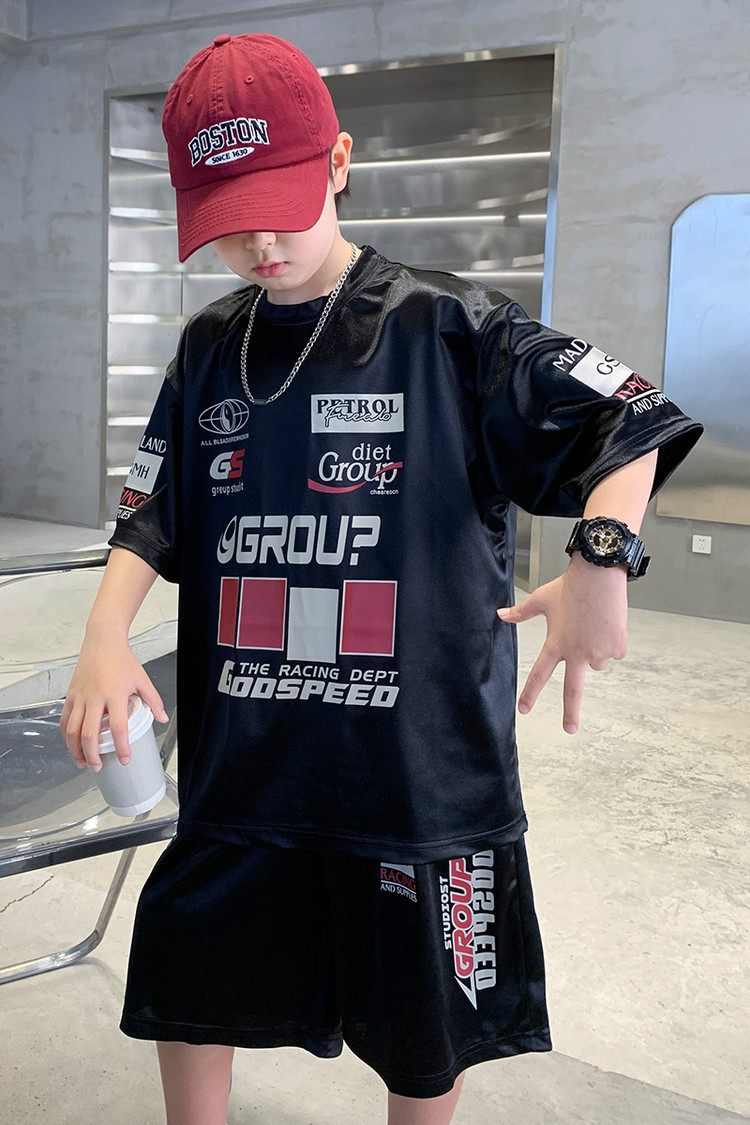소년 반팔 양복 여름 어린이 유행 운동복 소년 잘 생긴 스트리트 댄스 오토바이 스타일 투피스 농구 유니폼