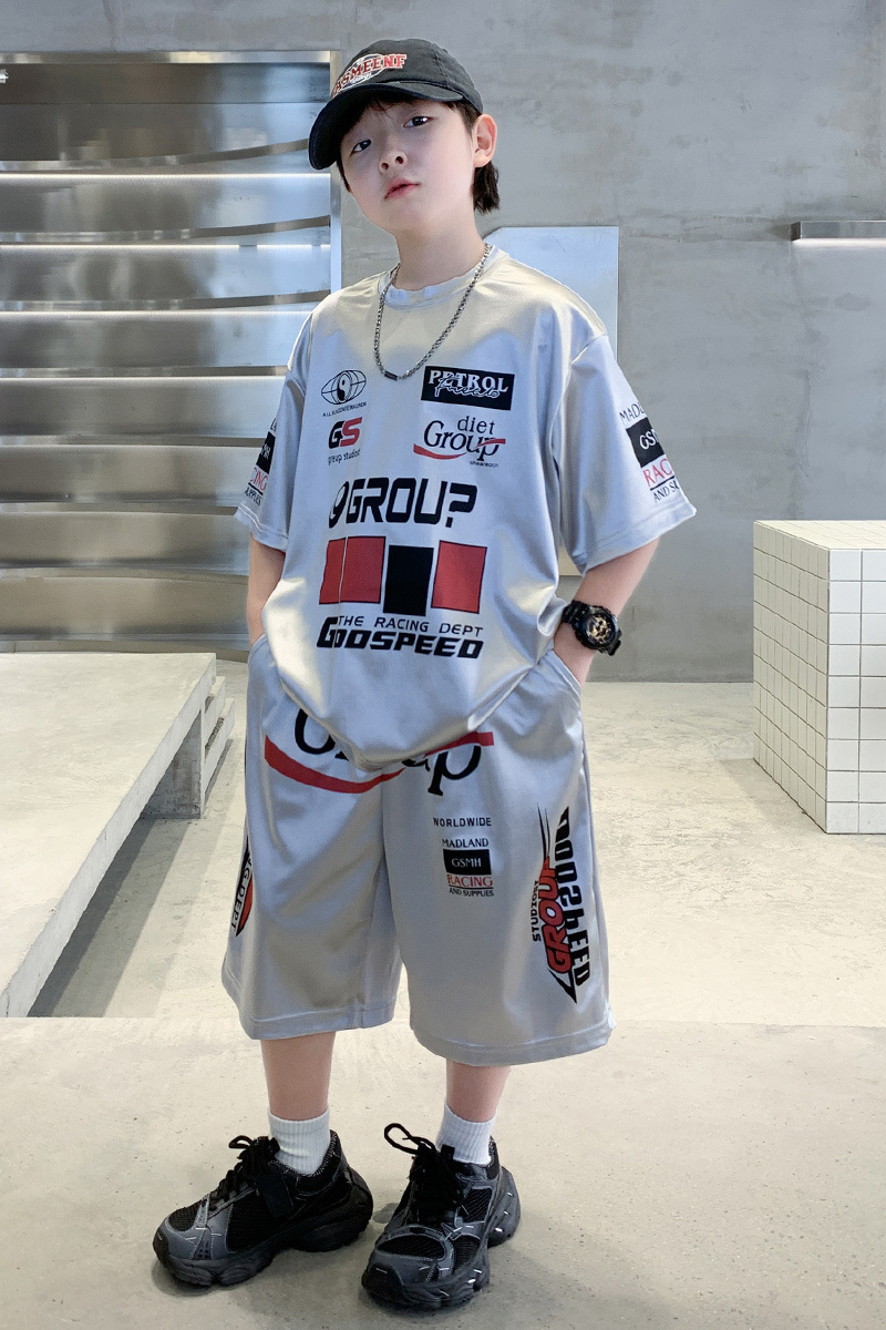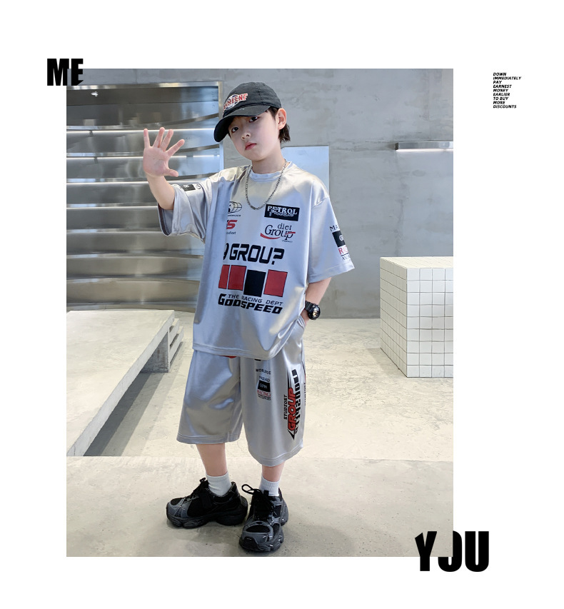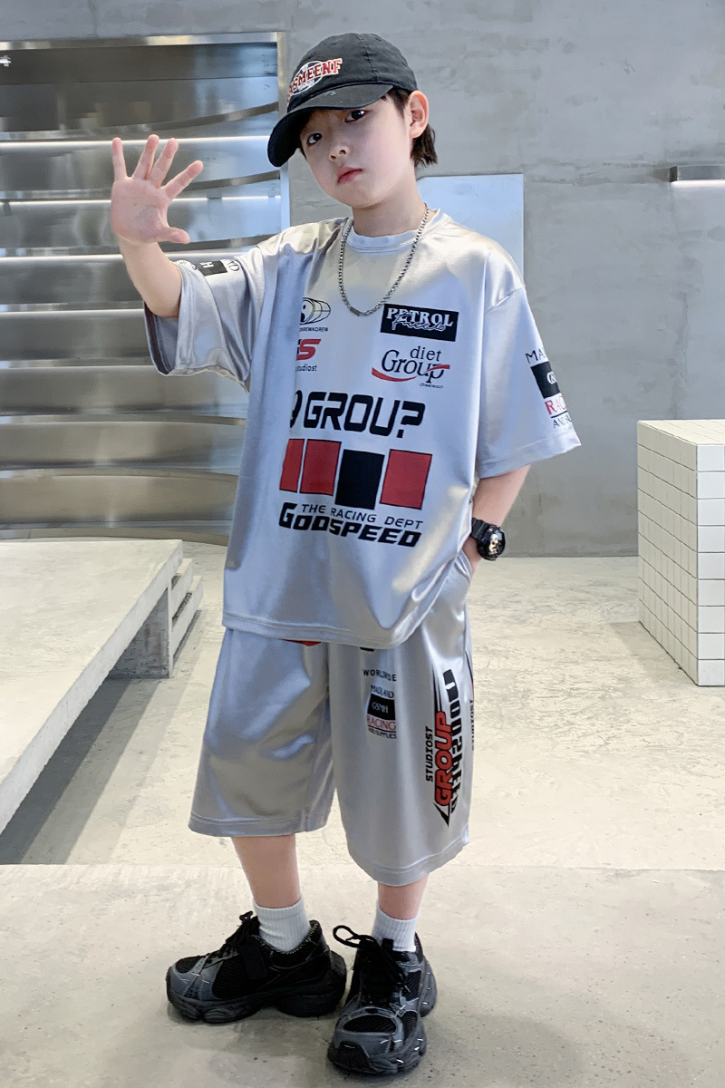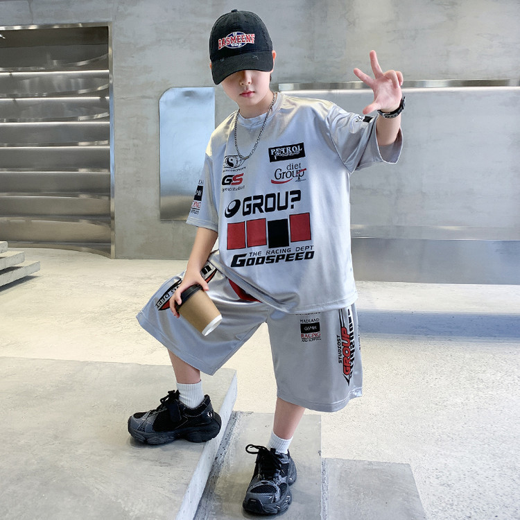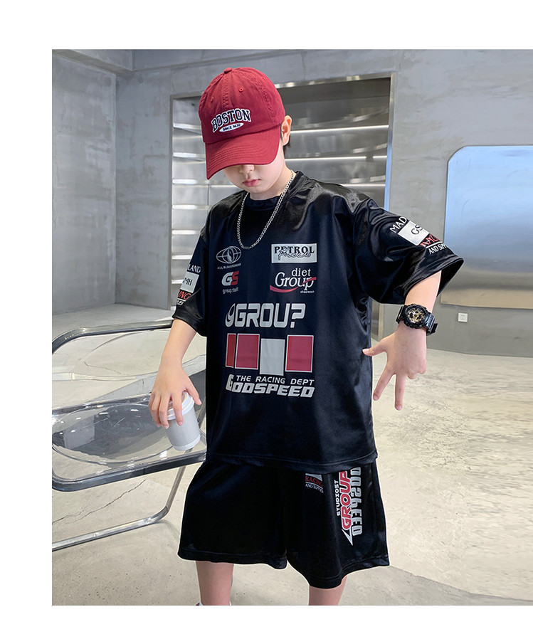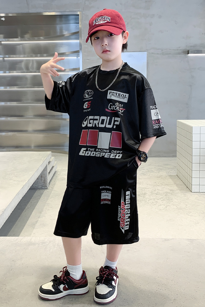 소년 반팔 양복 여름 어린이 유행 운동복 소년 잘 생긴 스트리트 댄스 오토바이 스타일 투피스 농구 유니폼