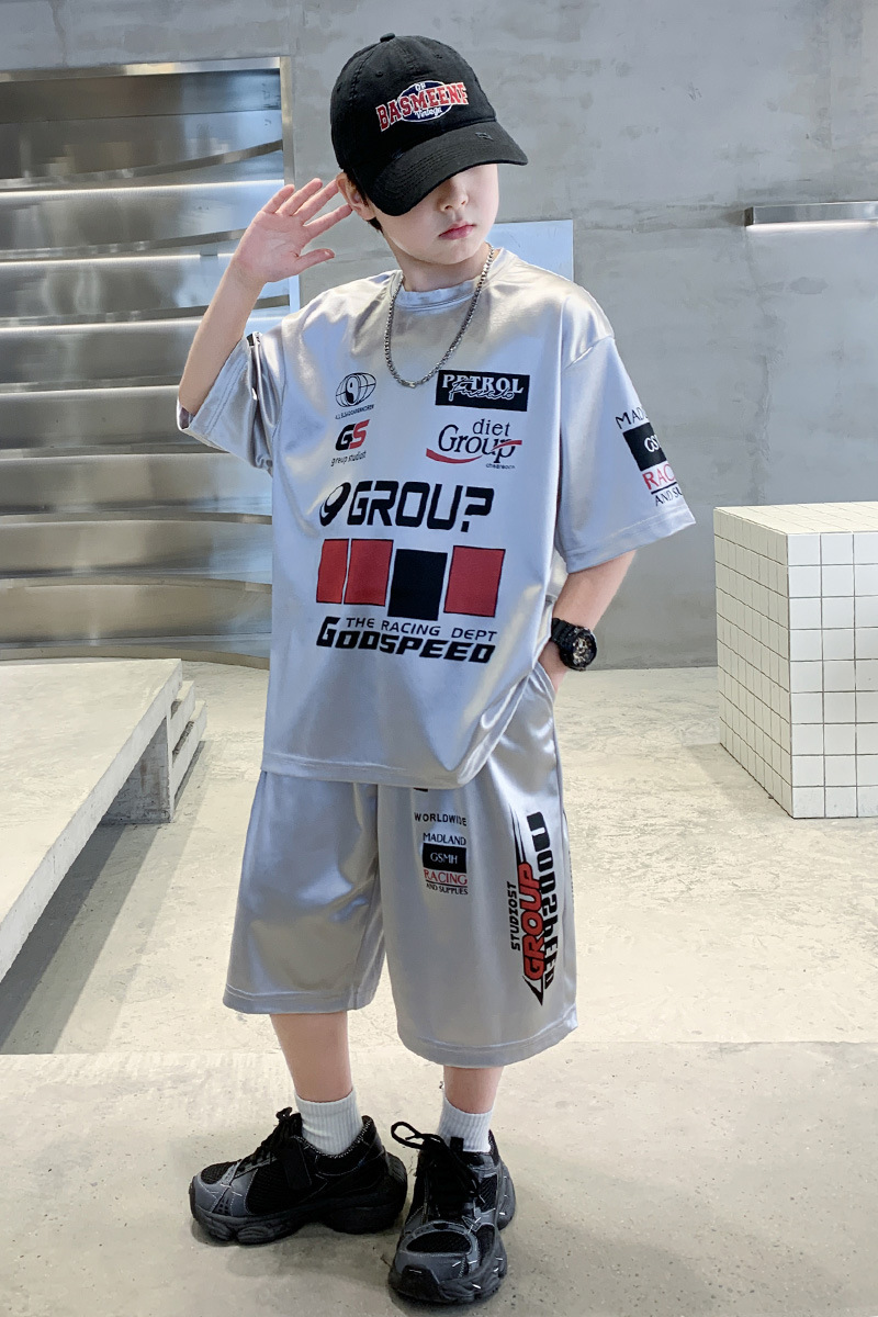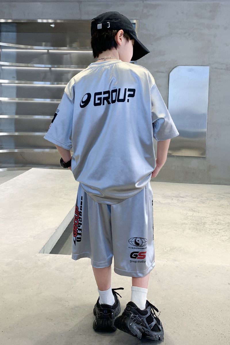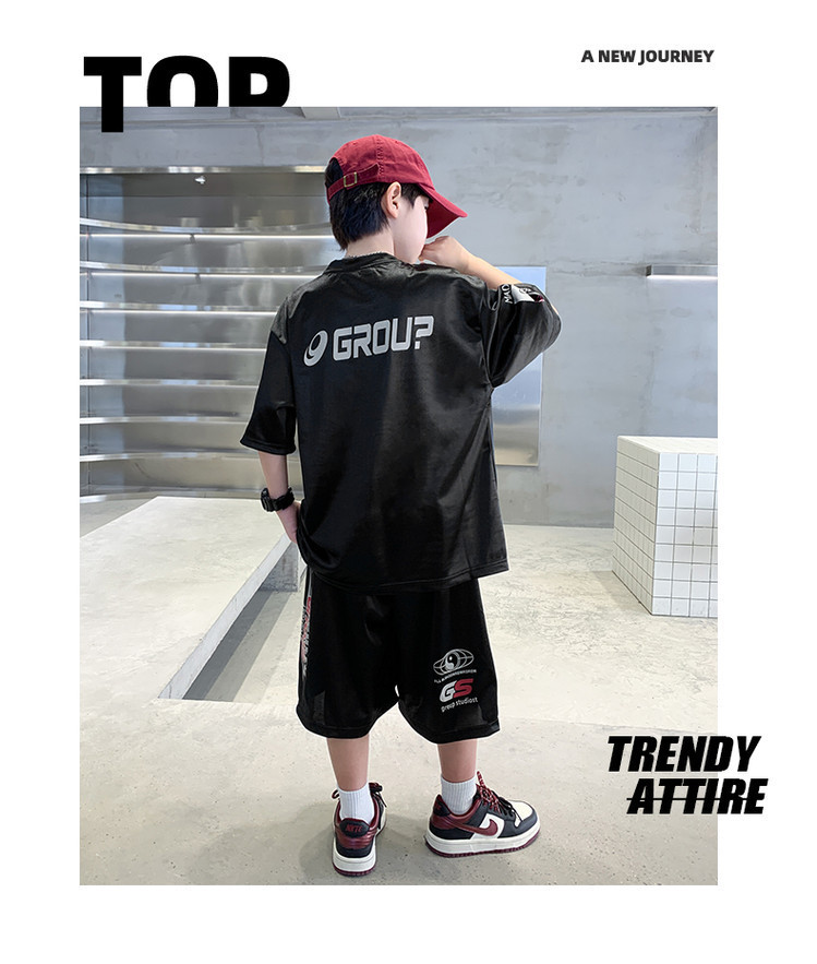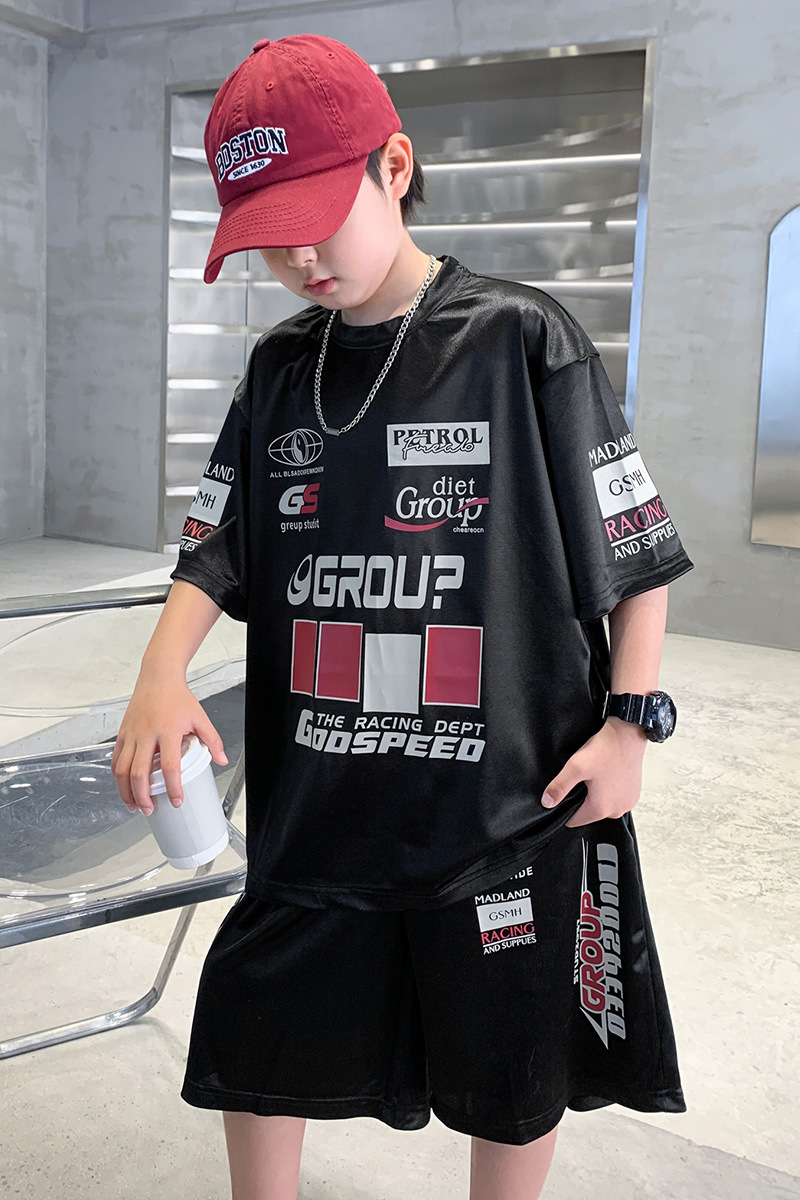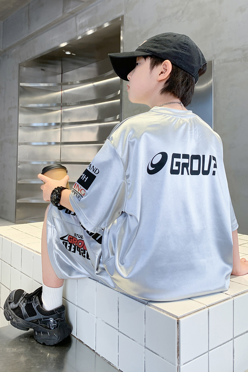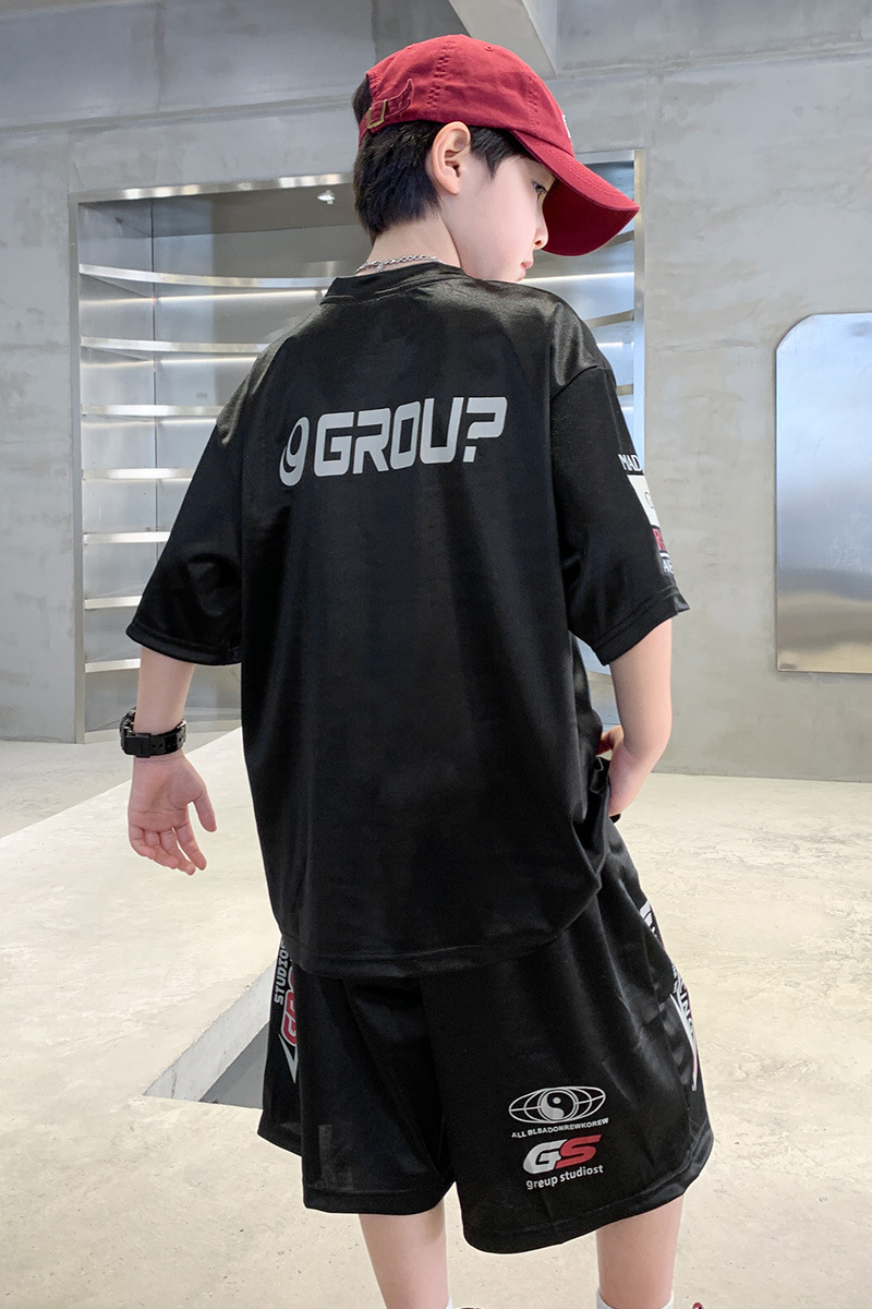 소년 반팔 양복 여름 어린이 유행 운동복 소년 잘 생긴 스트리트 댄스 오토바이 스타일 투피스 농구 유니폼