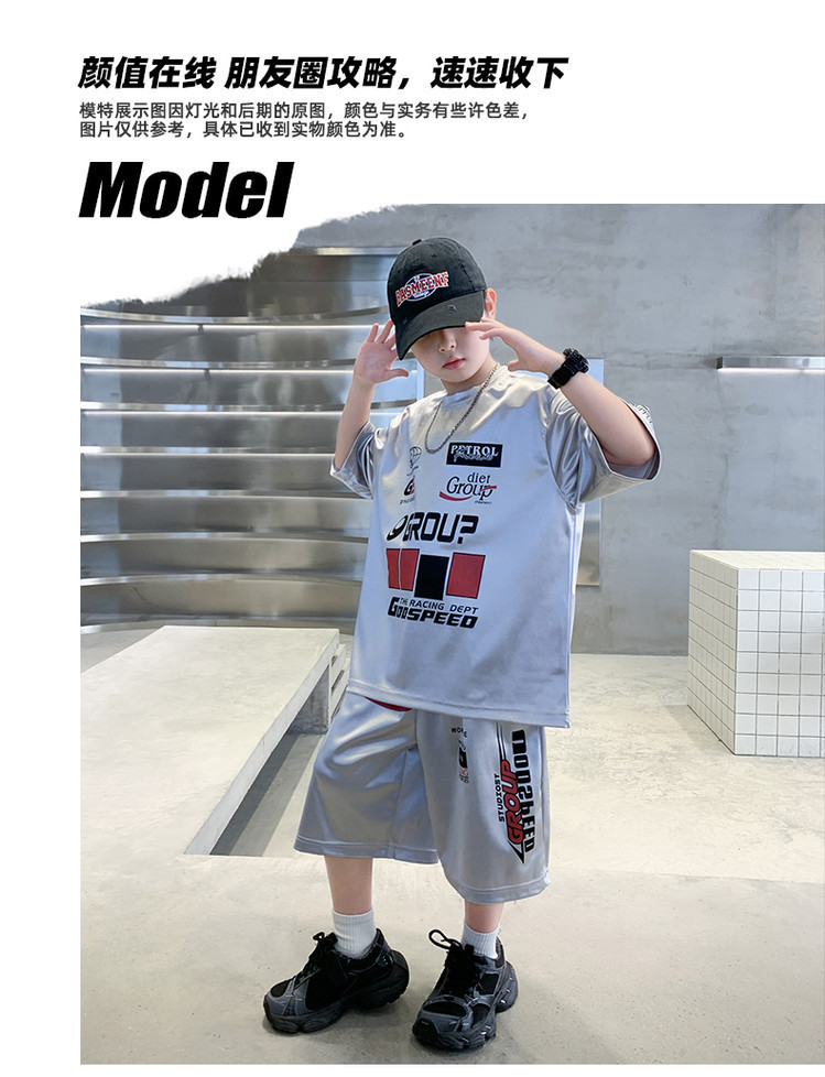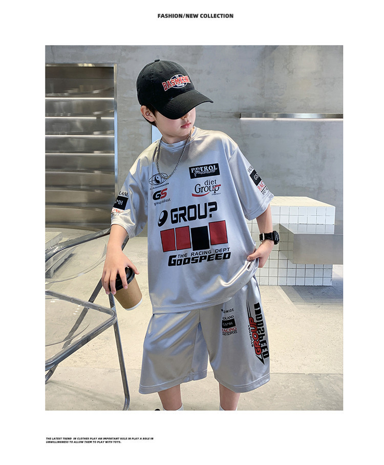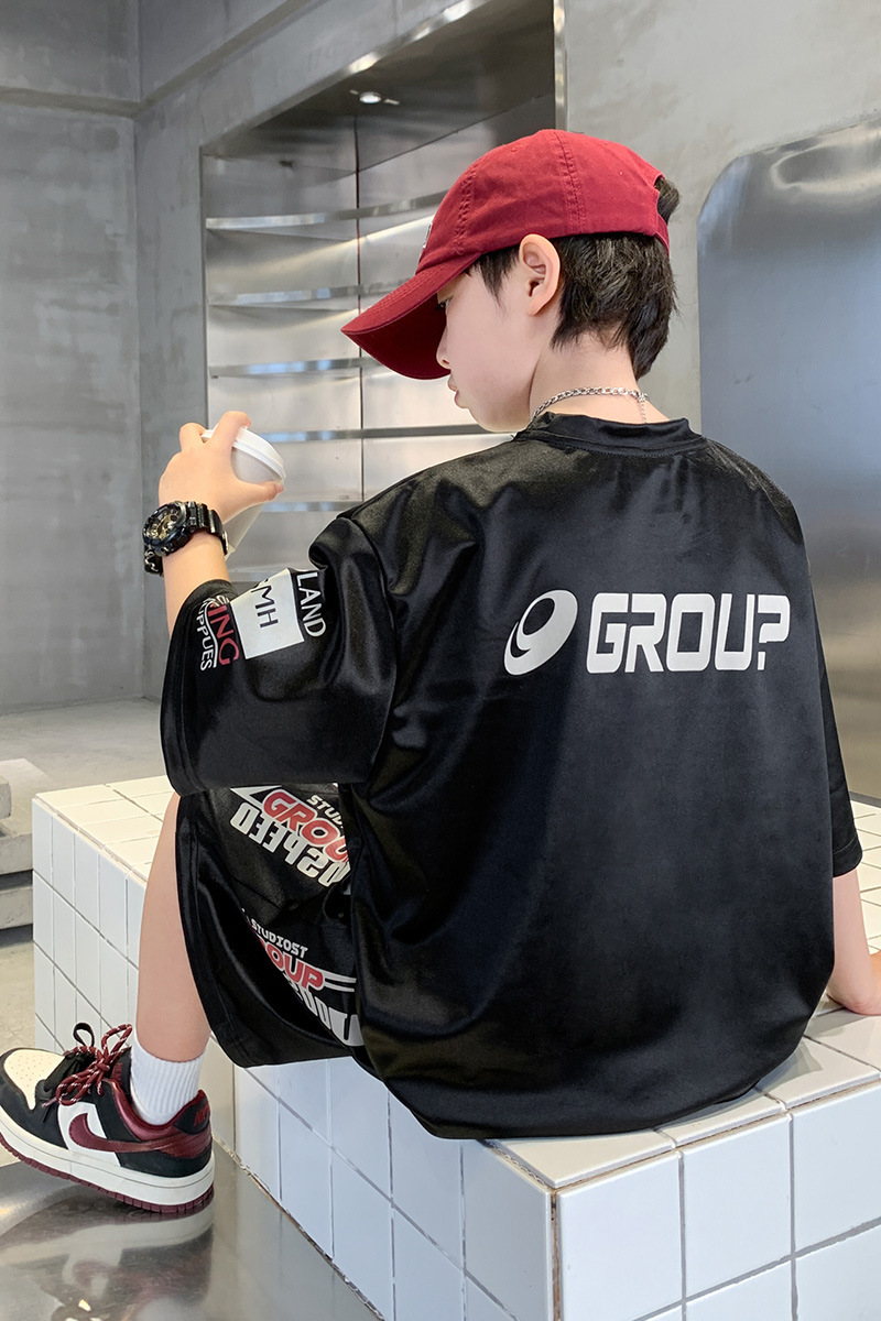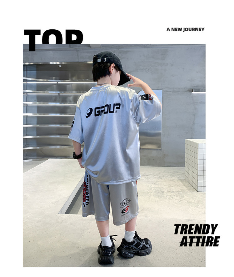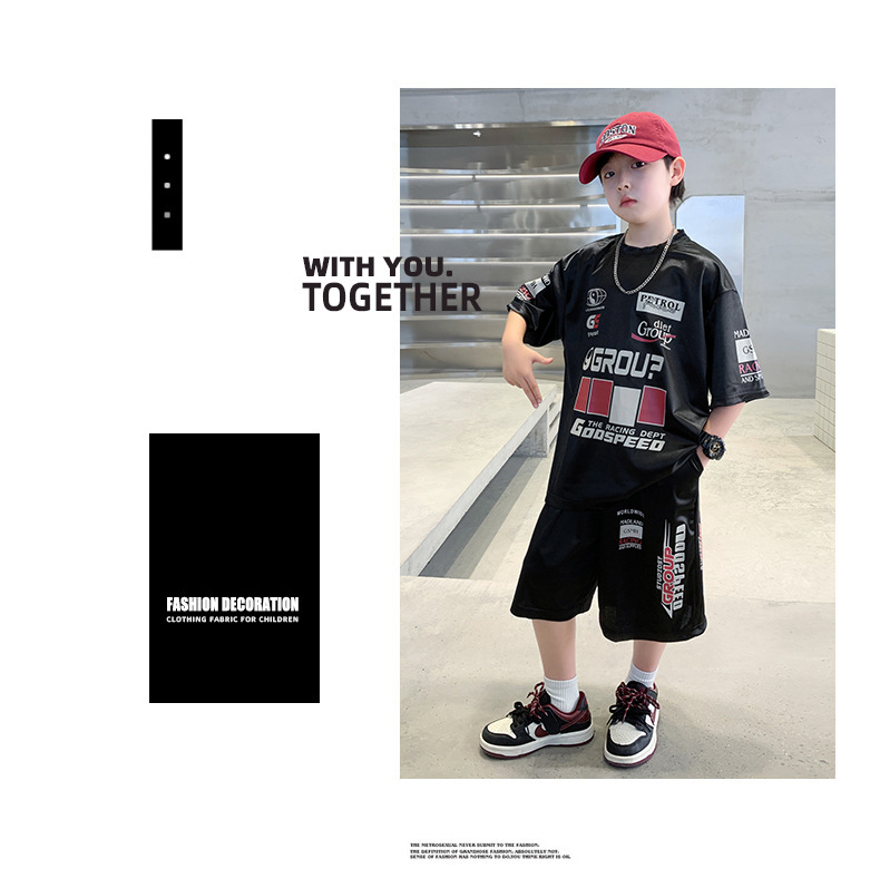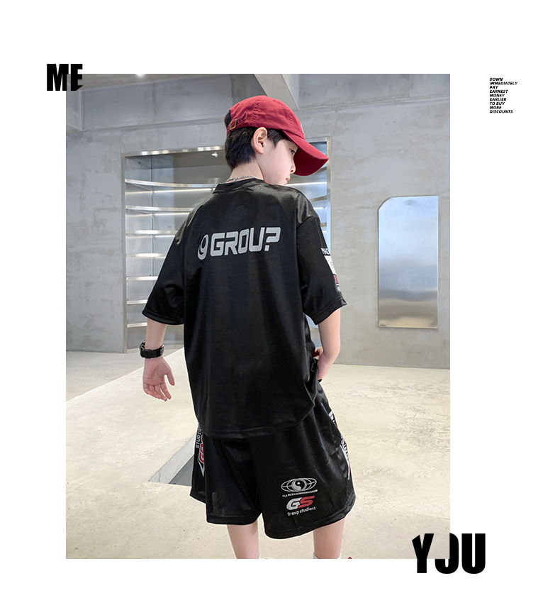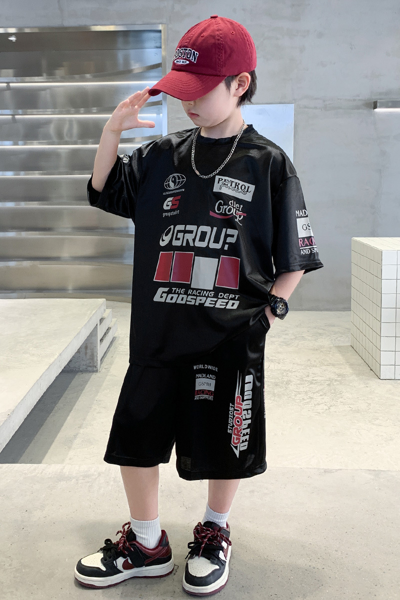 소년 반팔 양복 여름 어린이 유행 운동복 소년 잘 생긴 스트리트 댄스 오토바이 스타일 투피스 농구 유니폼