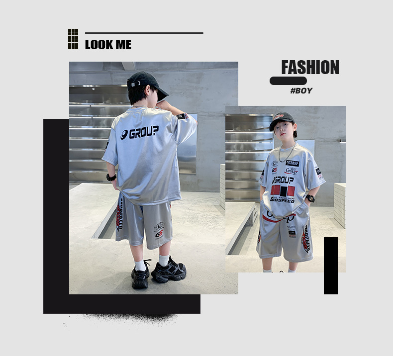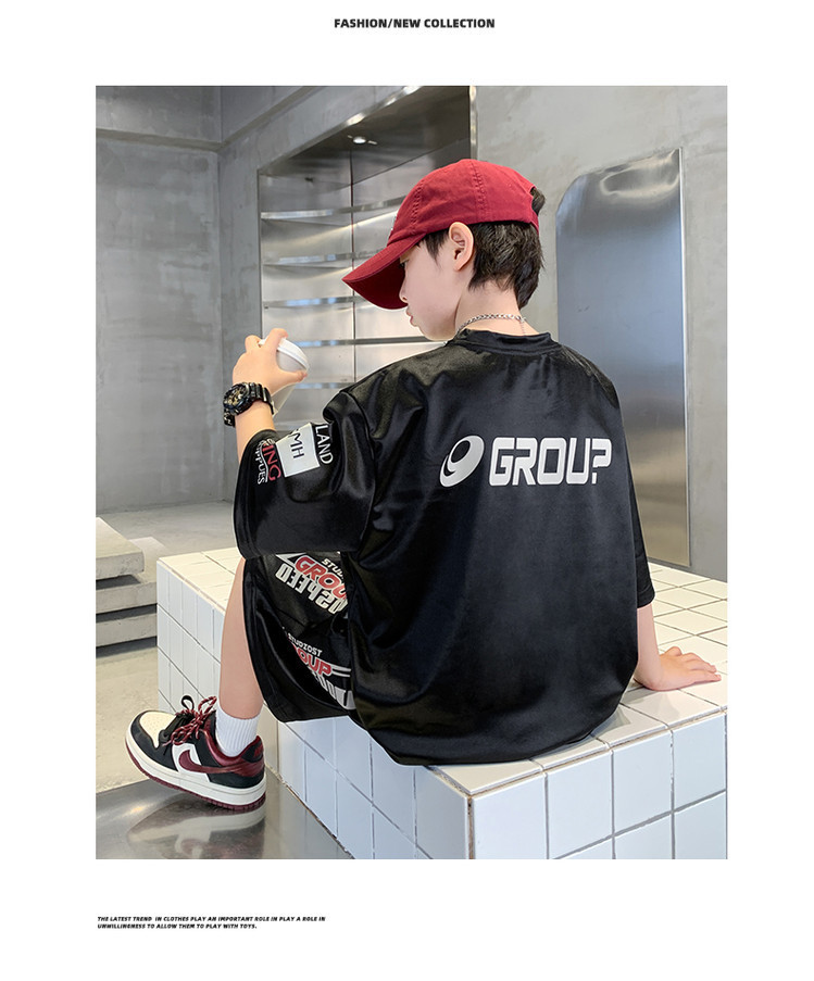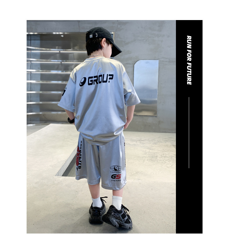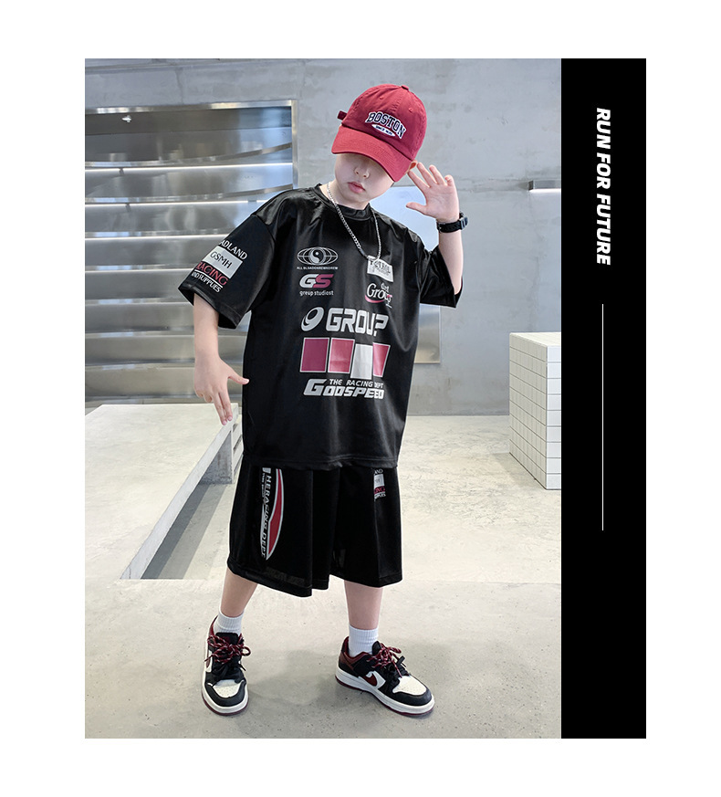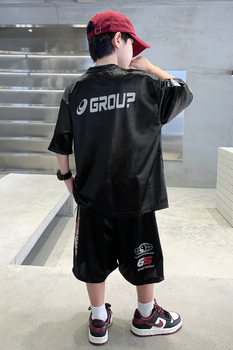 소년 반팔 양복 여름 어린이 유행 운동복 소년 잘 생긴 스트리트 댄스 오토바이 스타일 투피스 농구 유니폼스토어 가기