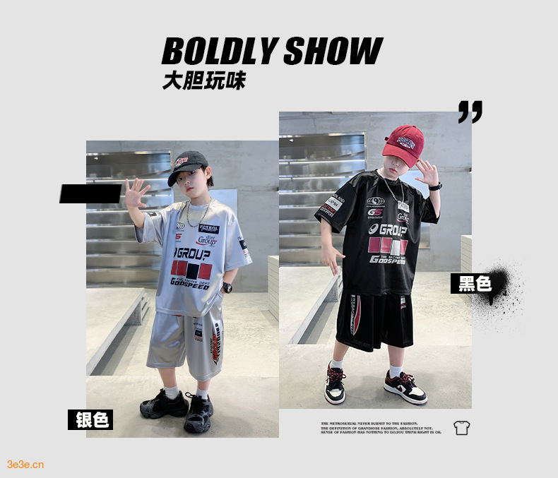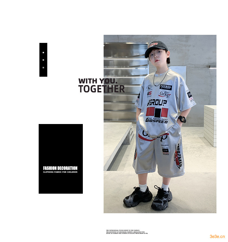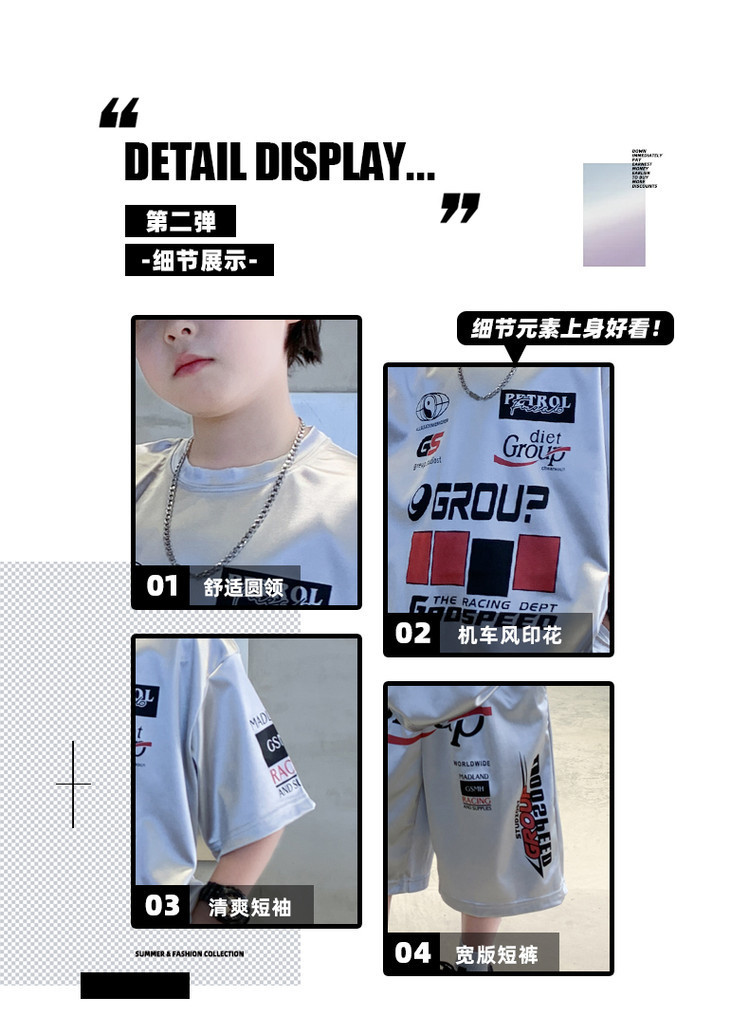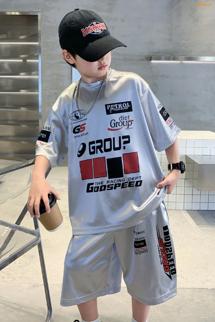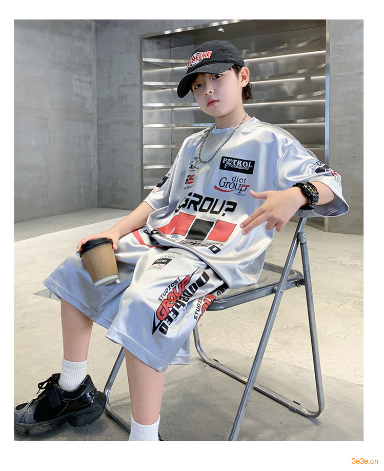소년 반팔 양복 여름 어린이 유행 운동복 소년 잘 생긴 스트리트 댄스 오토바이 스타일 투피스 농구 유니폼스토어 가기
