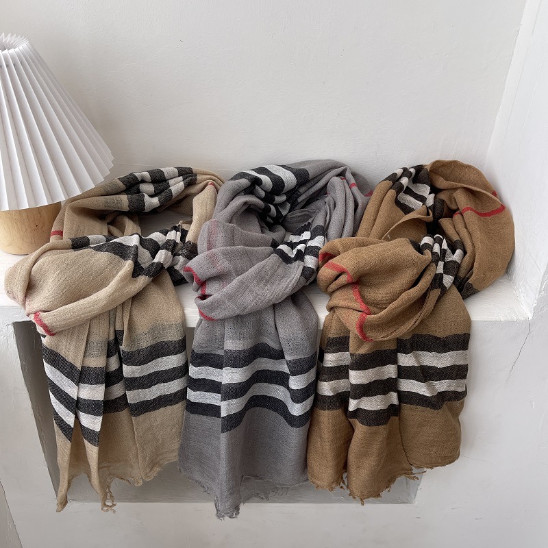 2025 새로운 양모 스카프 여성 봄, 가을 영국 다목적 격자 무늬 실크 스카프 얇은 긴 스카프 따뜻한 대형 목도리스토어 가기