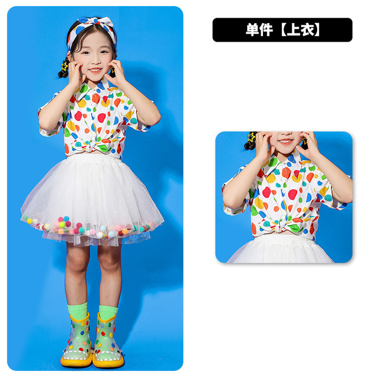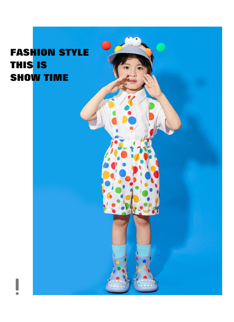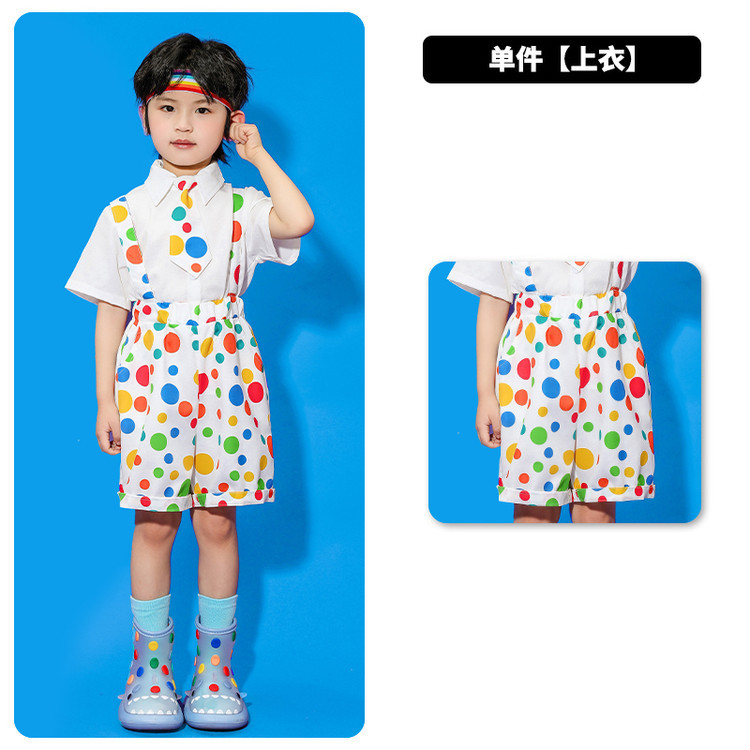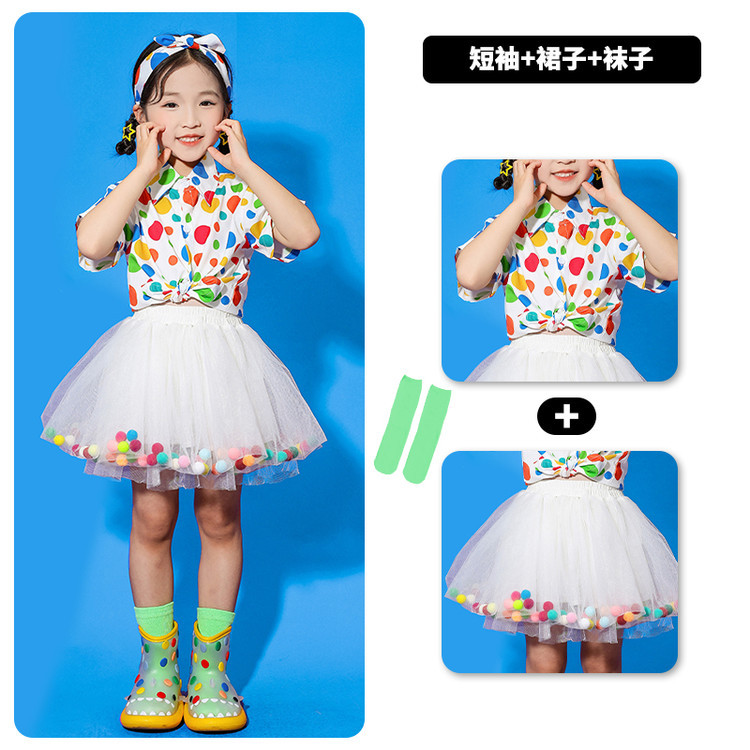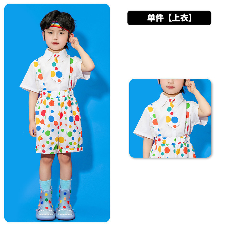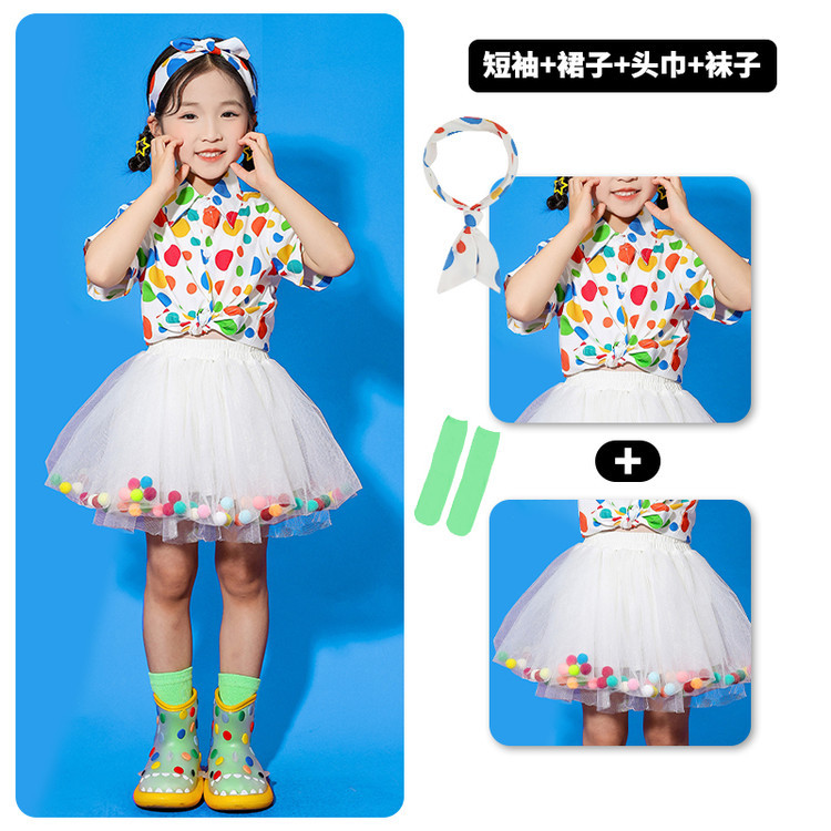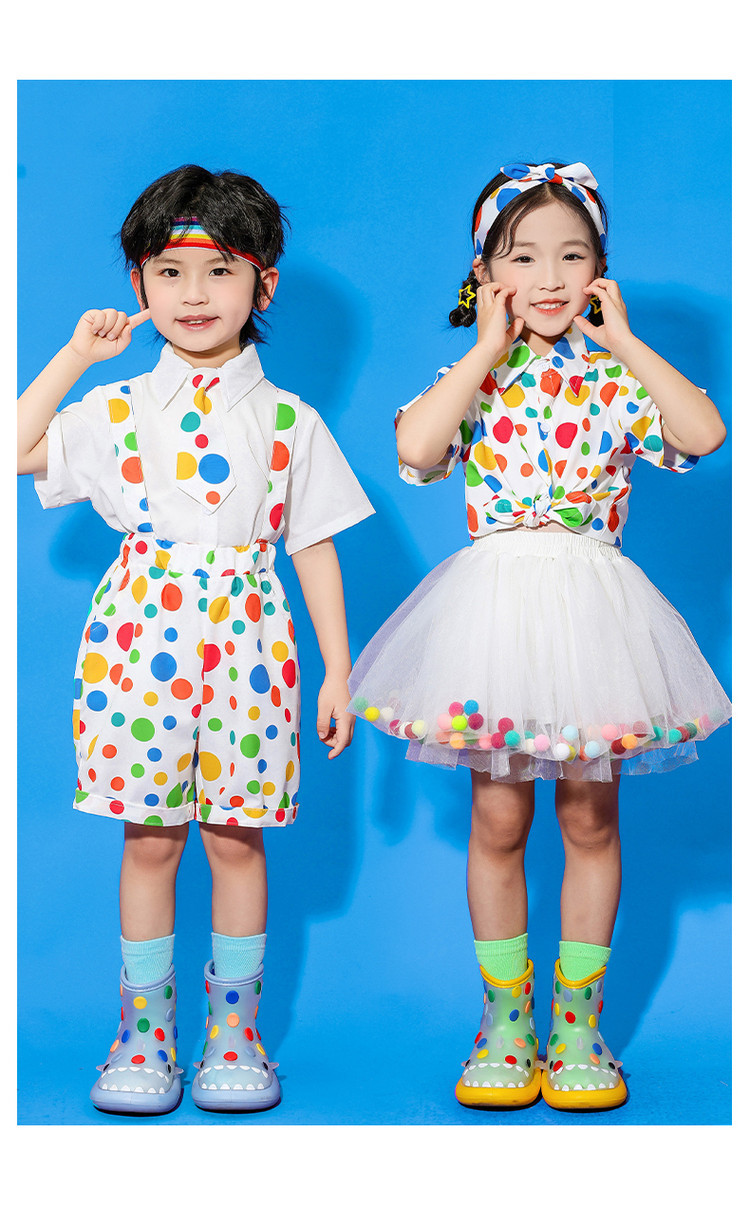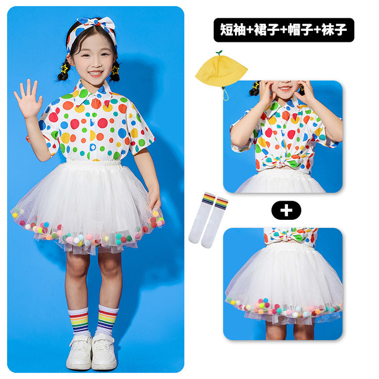 어린이 날 공연 의류 유치원 소년과 소녀 여름 도파민 컬러 웨이브 도트 셔츠 스커트 투피스 세트
