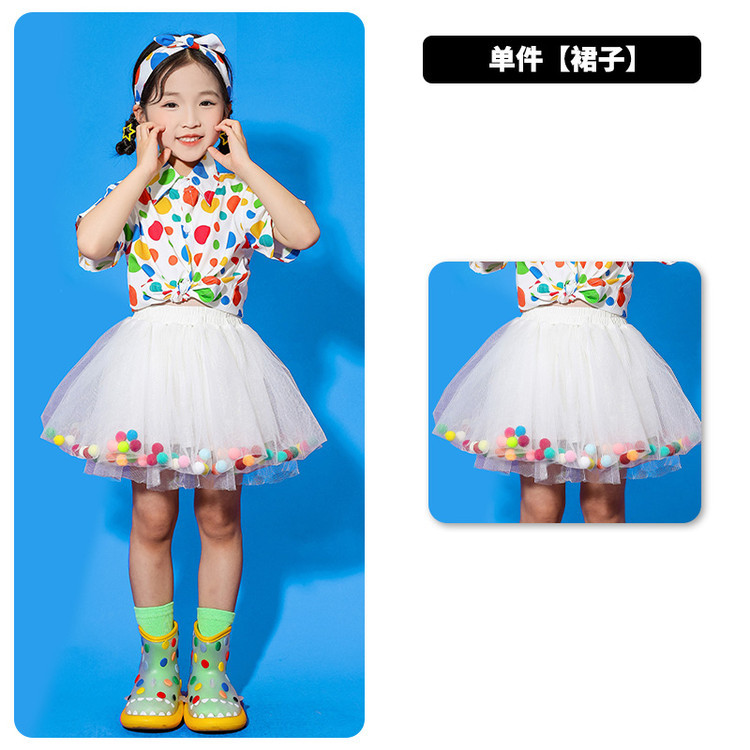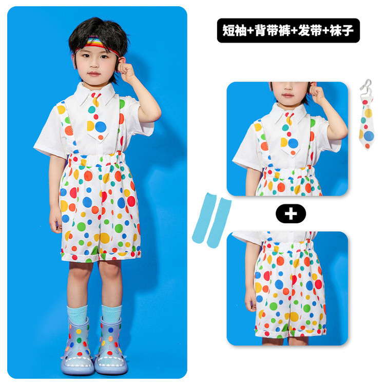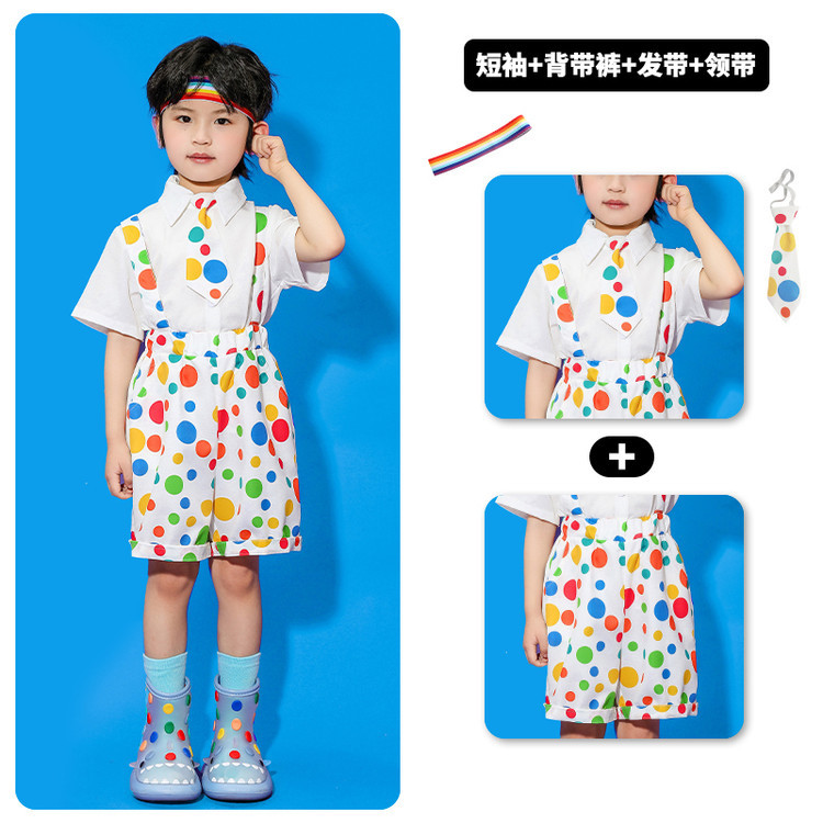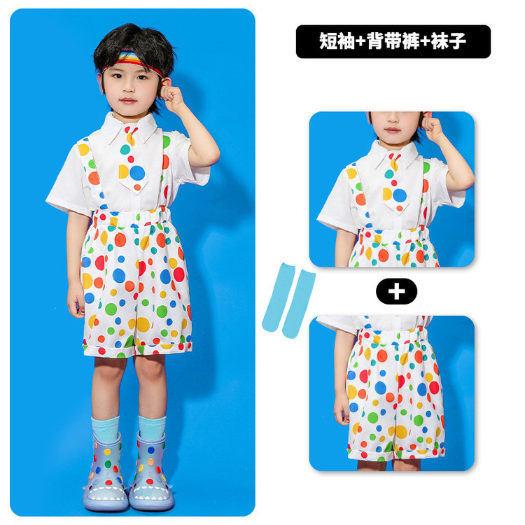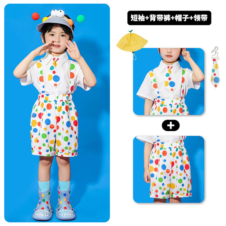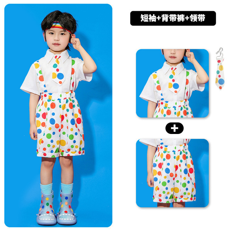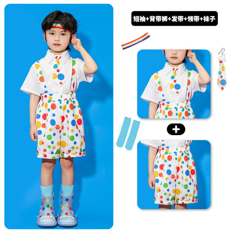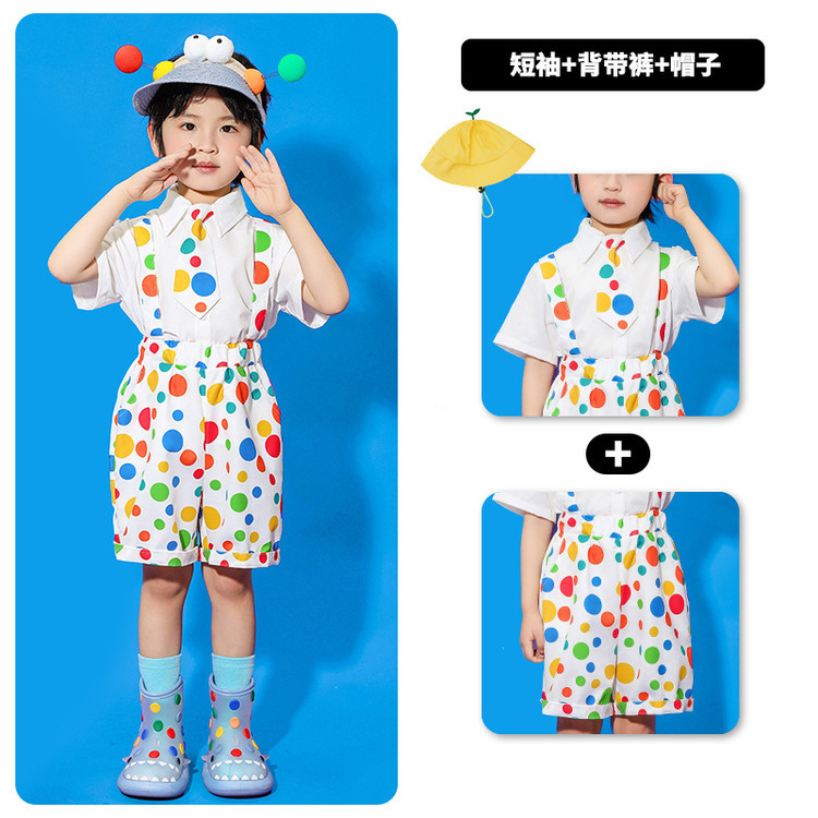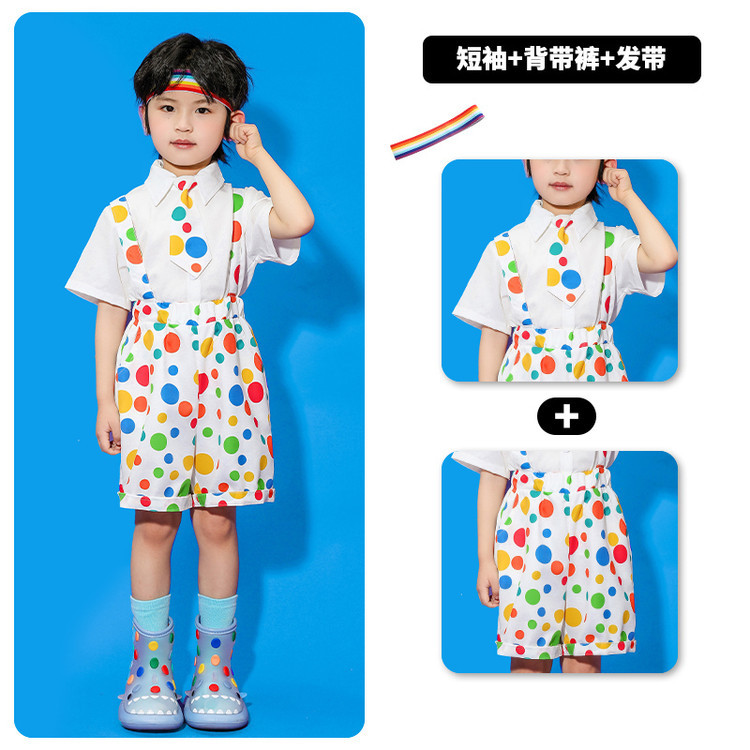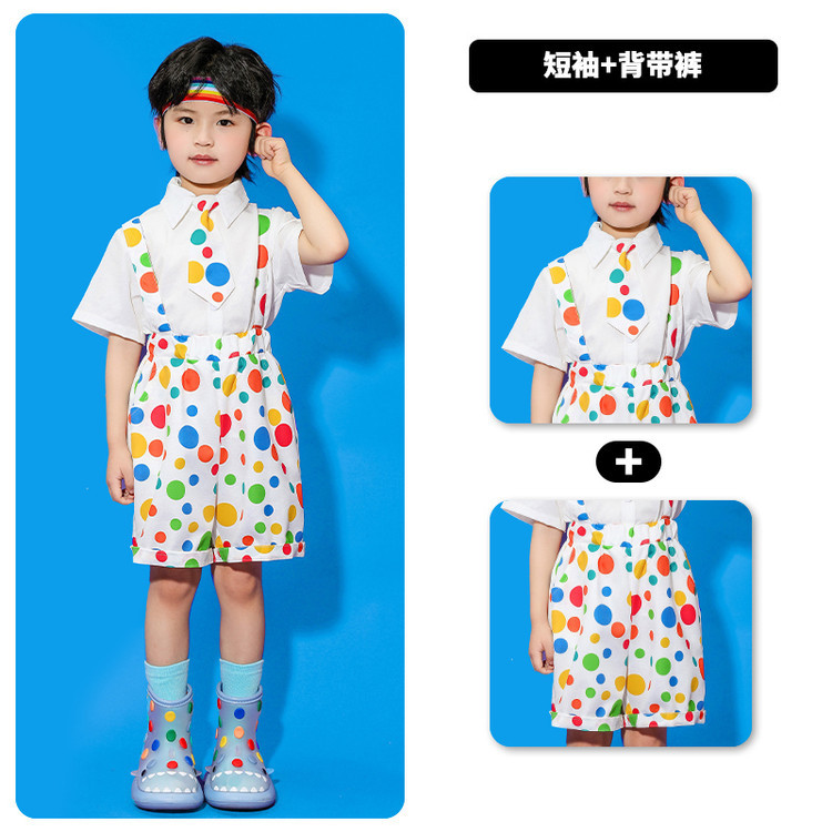 어린이 날 공연 의류 유치원 소년과 소녀 여름 도파민 컬러 웨이브 도트 셔츠 스커트 투피스 세트