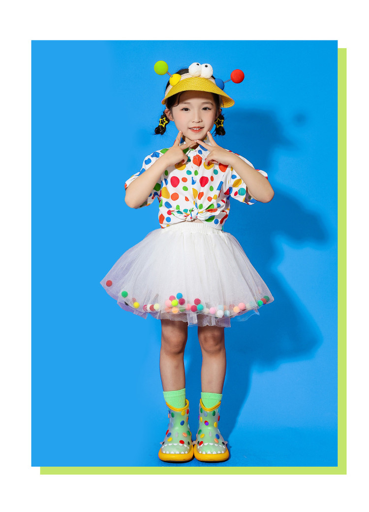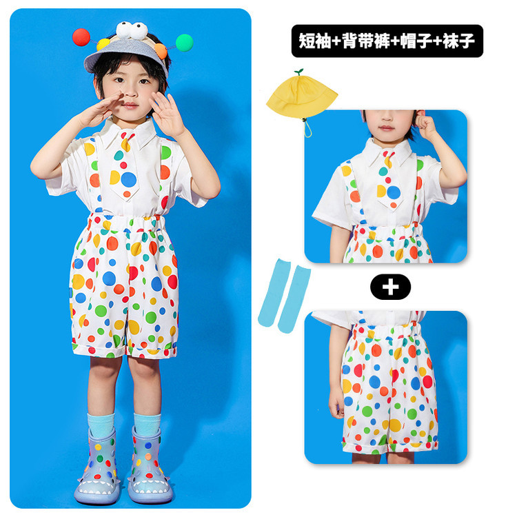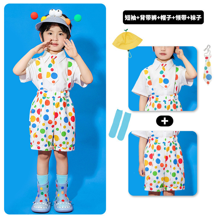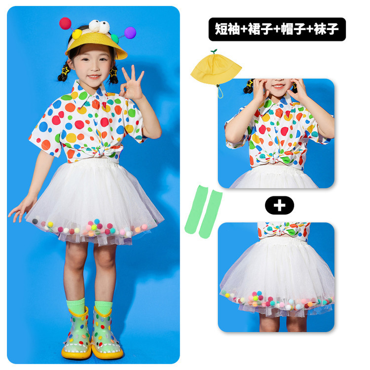 어린이 날 공연 의류 유치원 소년과 소녀 여름 도파민 컬러 웨이브 도트 셔츠 스커트 투피스 세트스토어 가기