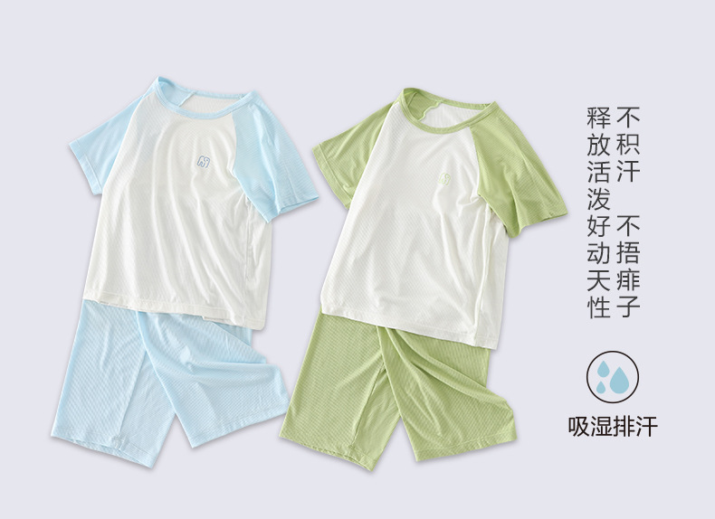 새 어린이 잠옷 세트 여아 여름 얇은 면 모 큰 어린이와 소년을위한 반팔 에어컨 옷
