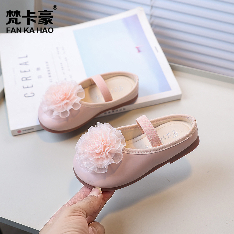 Van Cahao Girls Baotou 하프 레그 슬리퍼 2025 여름 새로운 어린이 패션 꽃 공주 신발 걸스 샌들과 슬리퍼