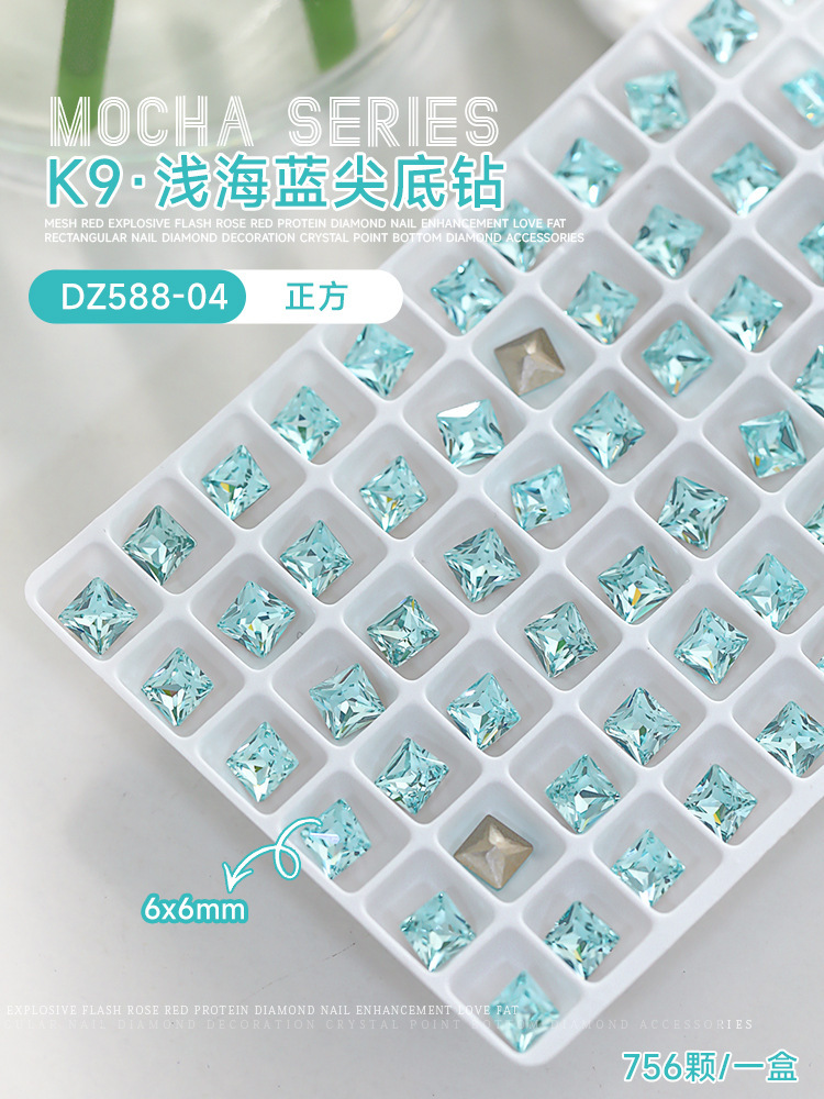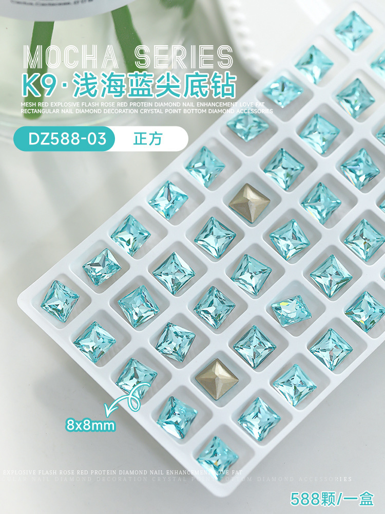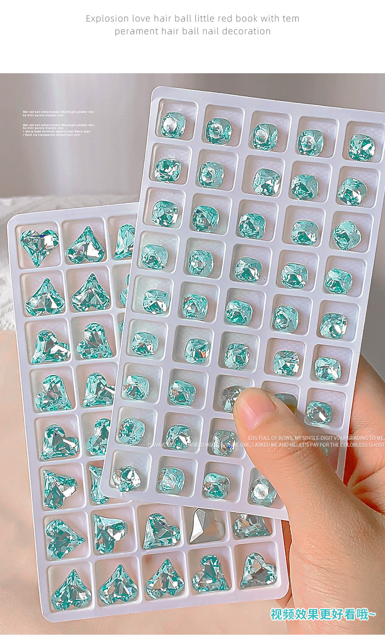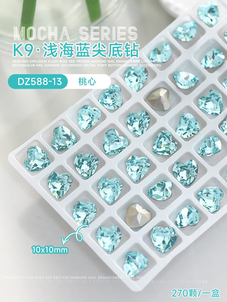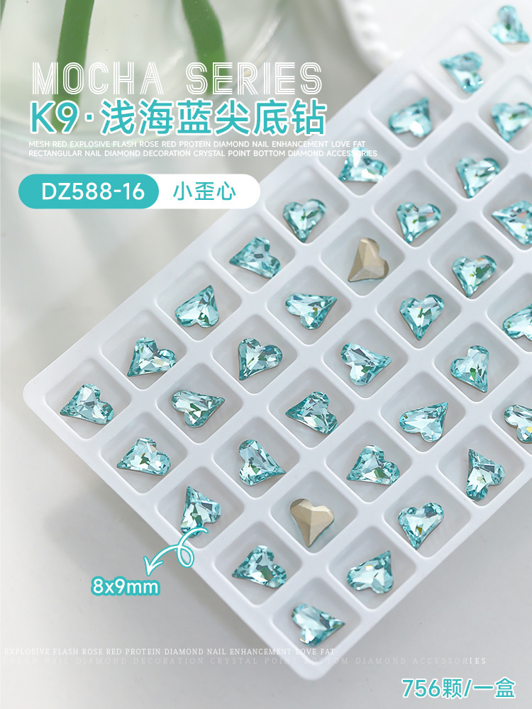 사이버 축하 네일 아트 쥬얼리 레이크 블루 크리스탈 샤프 하단 특수 모양의 드릴 슈퍼 플래시 도끼 드릴 지방 광장 비뚤어진 하트 네일 액세서리 드릴스토어 가기